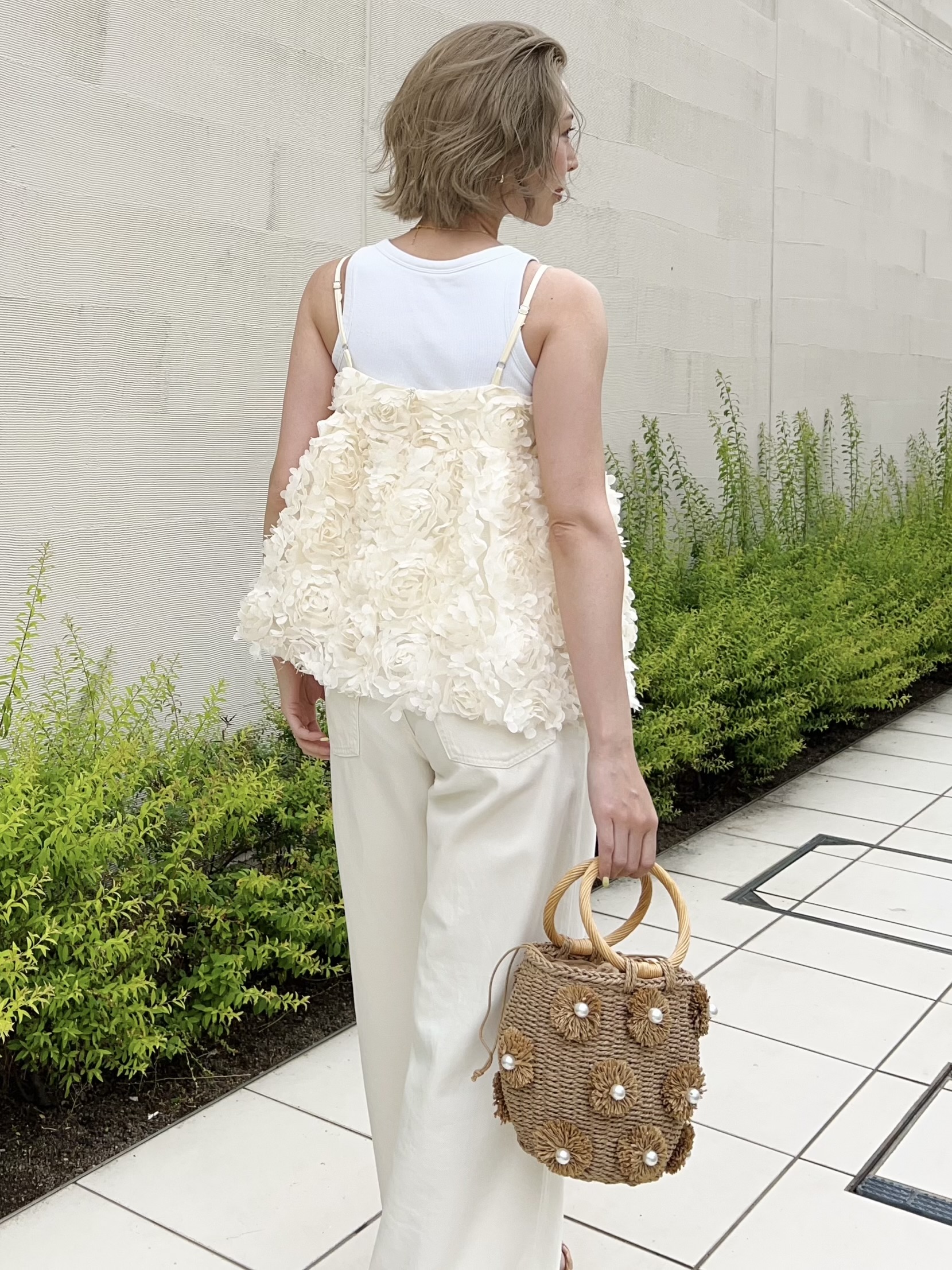 シンプルなスタイリングに大人可愛い雰囲気をプラスしてくれます。