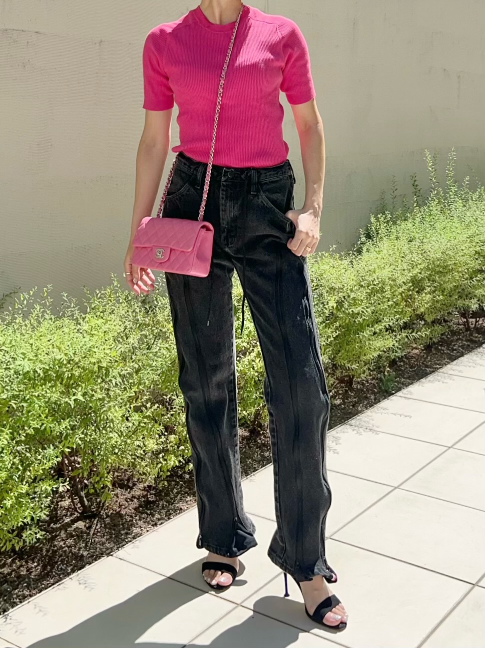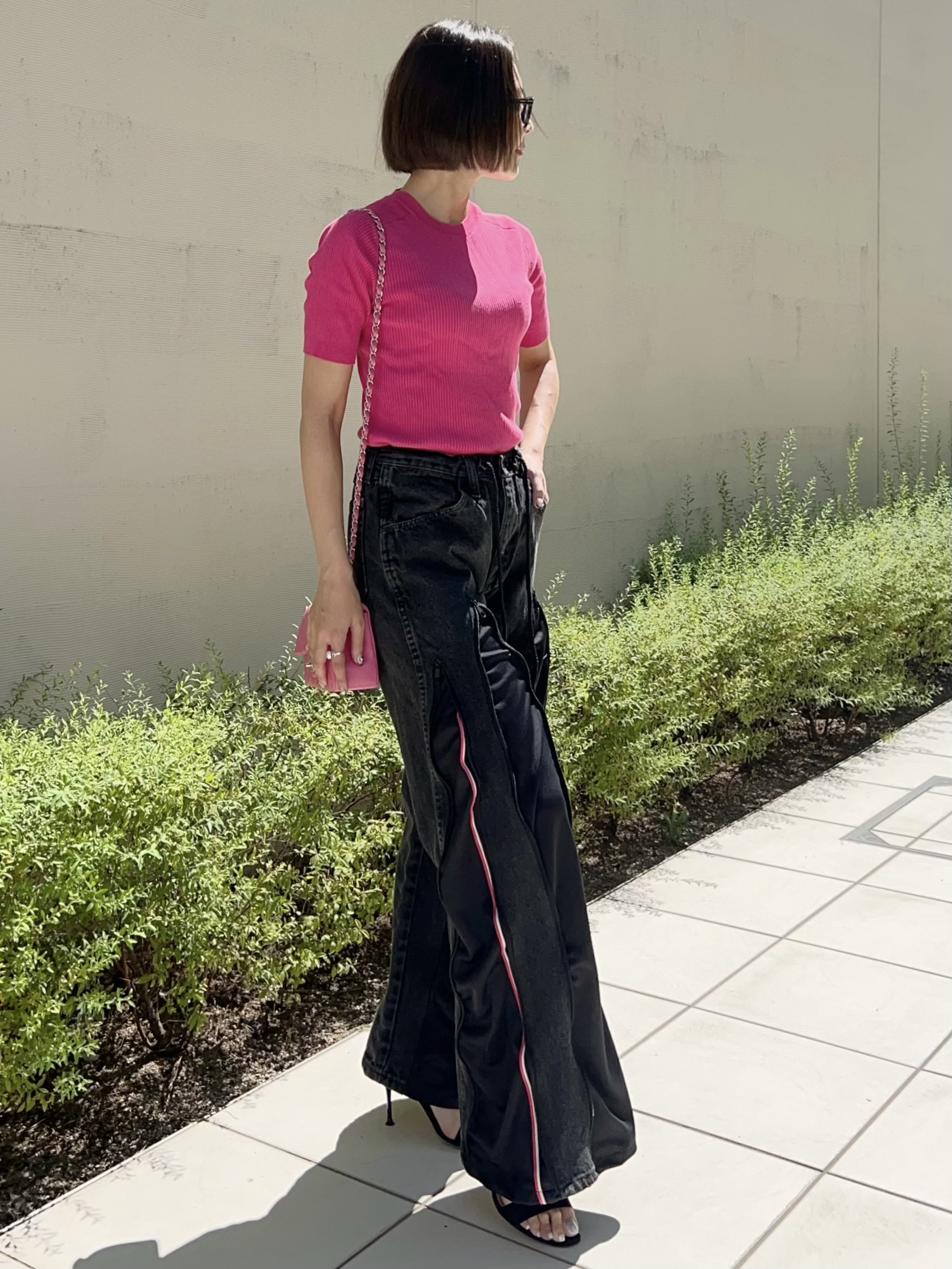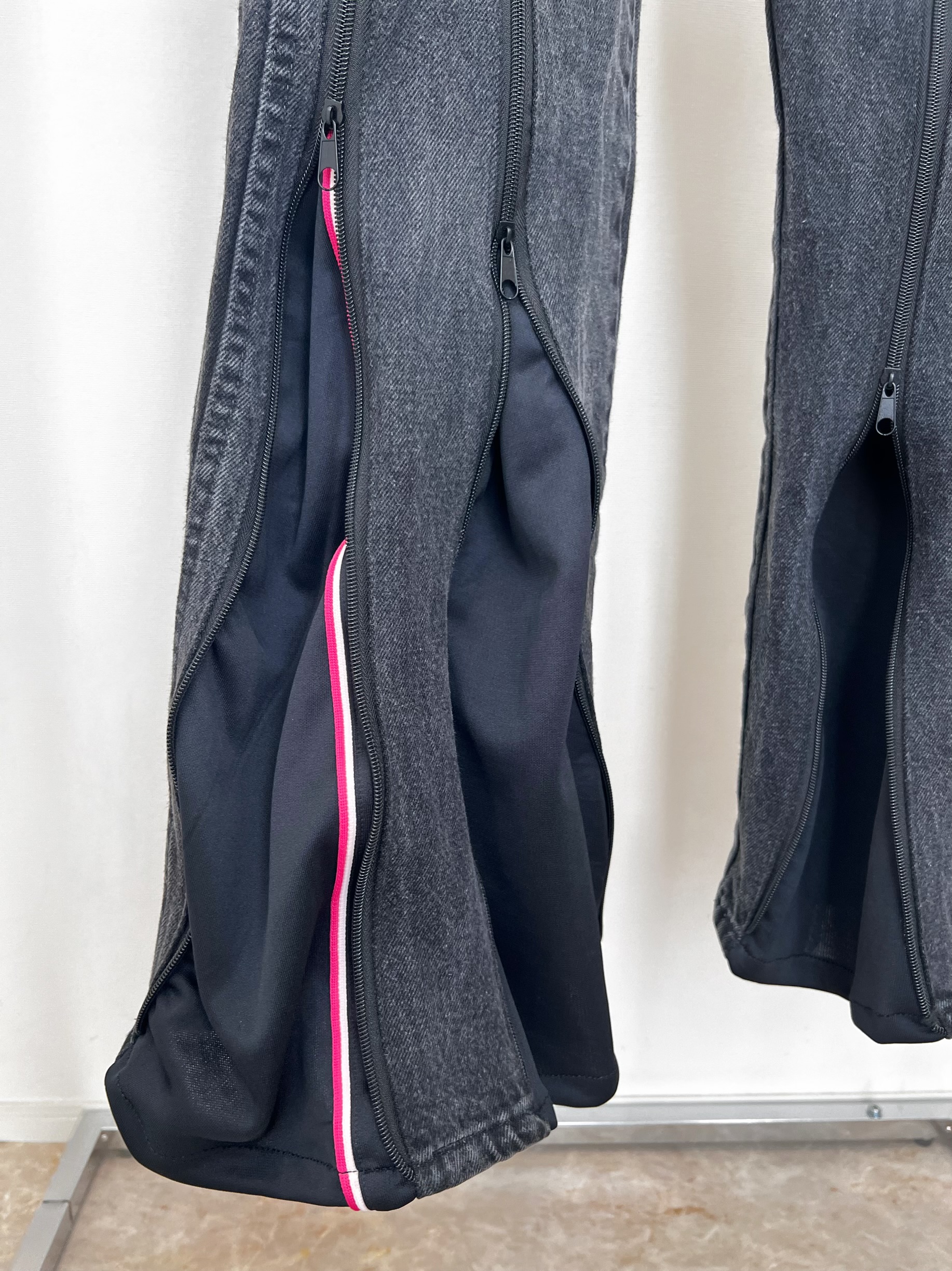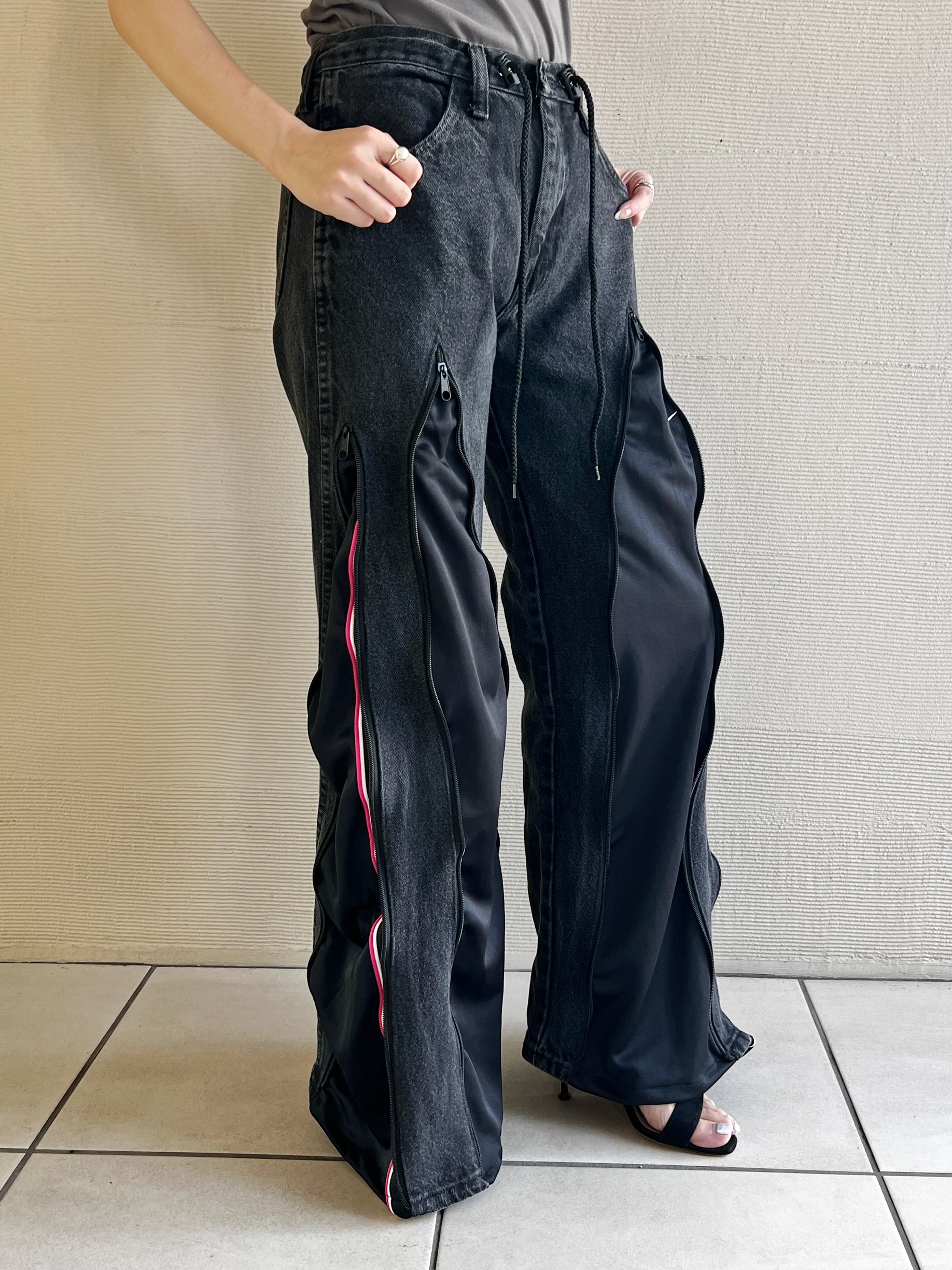 ファスナーの下げ具合でシルエットを変えて履いて頂けます。
