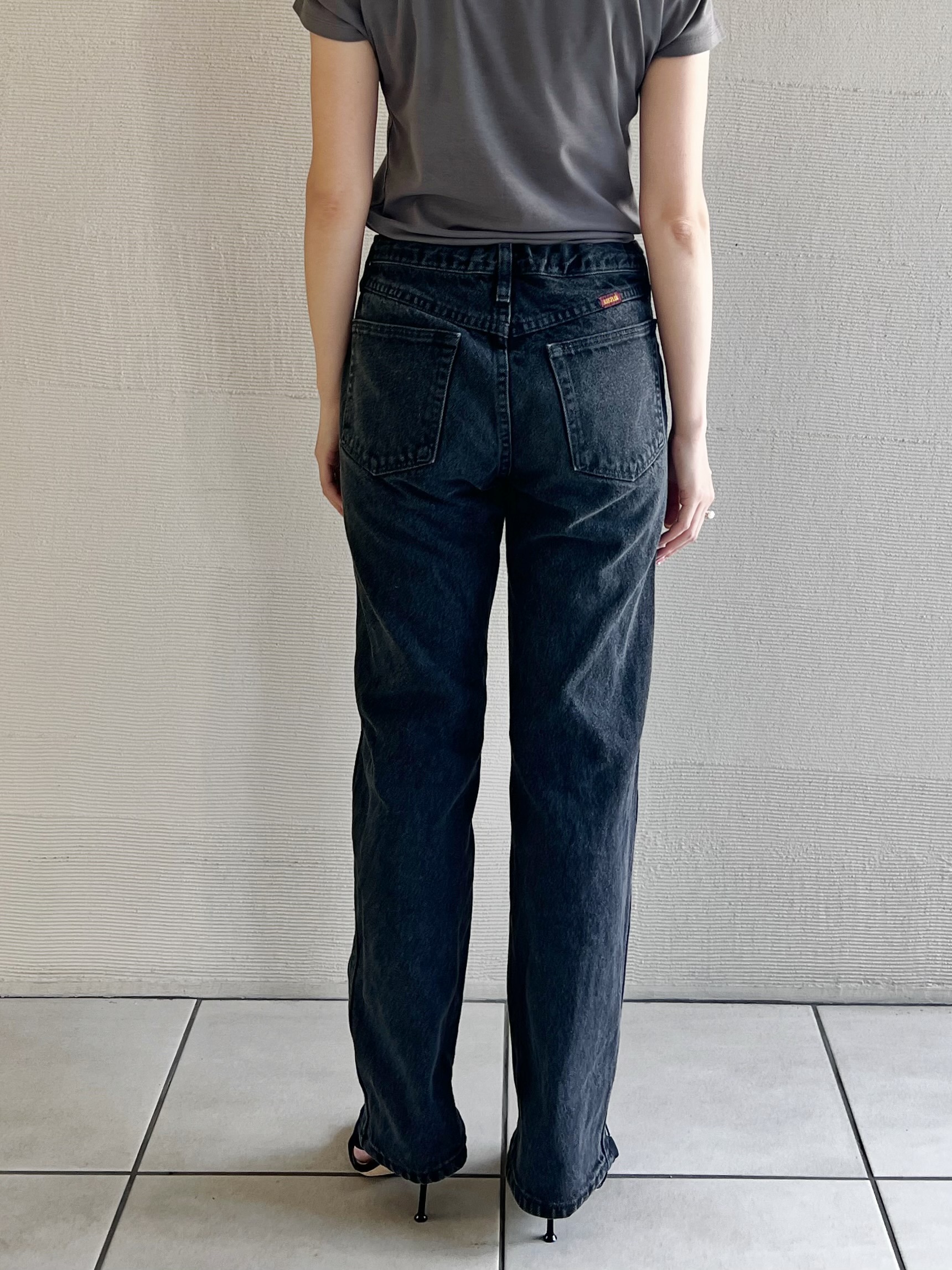 HOUSE OF VINTAGEが新たにスタート。ヴィンテージデニムなどを用いてリメイクした全て1点物のアイテムを展開。柄の出方やデニムの色落ちなど、同じものは一つとして無いあなただけの一着をお届けします。WranglerのサブレーベルRUSTLERのブラックデニムにNIKEのジャージを組合せたリメイクデニム。ファスナーを全て閉じると綺麗目に、全て開けると裾に向かって広がるフレアシルエットに。ドローコードでサイズ調節可能。ファスナーの下げ具合でシルエットを変えて履いて頂けます。※こちらの商品はヴィンテージのデニムや生地を使用しております。多少の汚れやほつれ等ダメージがある場合が御座います。ヴィンテージ特有の風合いをご理解、ご了承頂いた上でのご注文をお願い致します。ヴィンテージ商品の返品交換は対応致しかねます。神経質な方や商品の特性をご理解、ご了承頂けない方は手に取ってご購入頂けるショップでのご購入をお願い致します。STAFF:158cm【サイズ】(平置き採寸/ファスナーを閉じた状態で採寸)総丈100cm ウエスト37cm(ドローコードでサイズを小さくできます) ヒップ46cm 股下75cm 股上30cm ワタリ25cm 裾幅 19cm【素材】本体:コットン、ジャージ:ポリエステル■クロネコ代金後払いをご利用のお客様■商品到着後に請求書(払込用紙)が到着します。14日以内にお支払いをお願いします。全国の主要なコンビニで、請求書をレジに持っていくだけでお支払いが可能です。全国の郵便局でも同じ請求書でお支払いできます。※ご請求書が圧着ハガキタイプの場合、郵便局でのお支払いはできません。※弊社の銀行口座宛にお振込頂くものでは御座いません。ご注意下さい。
