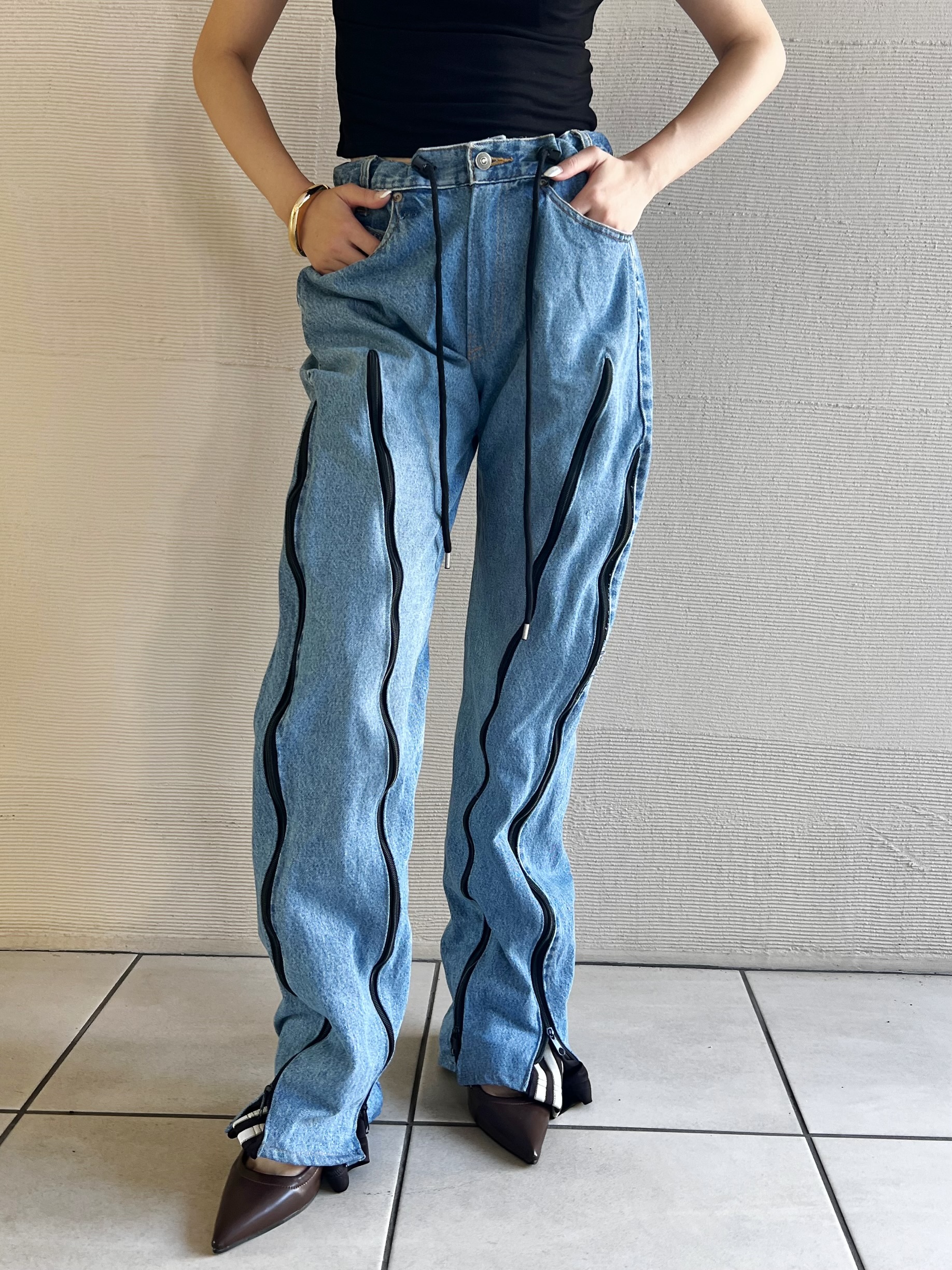 ファスナーの下げ具合でシルエットを変えて履いて頂けます。