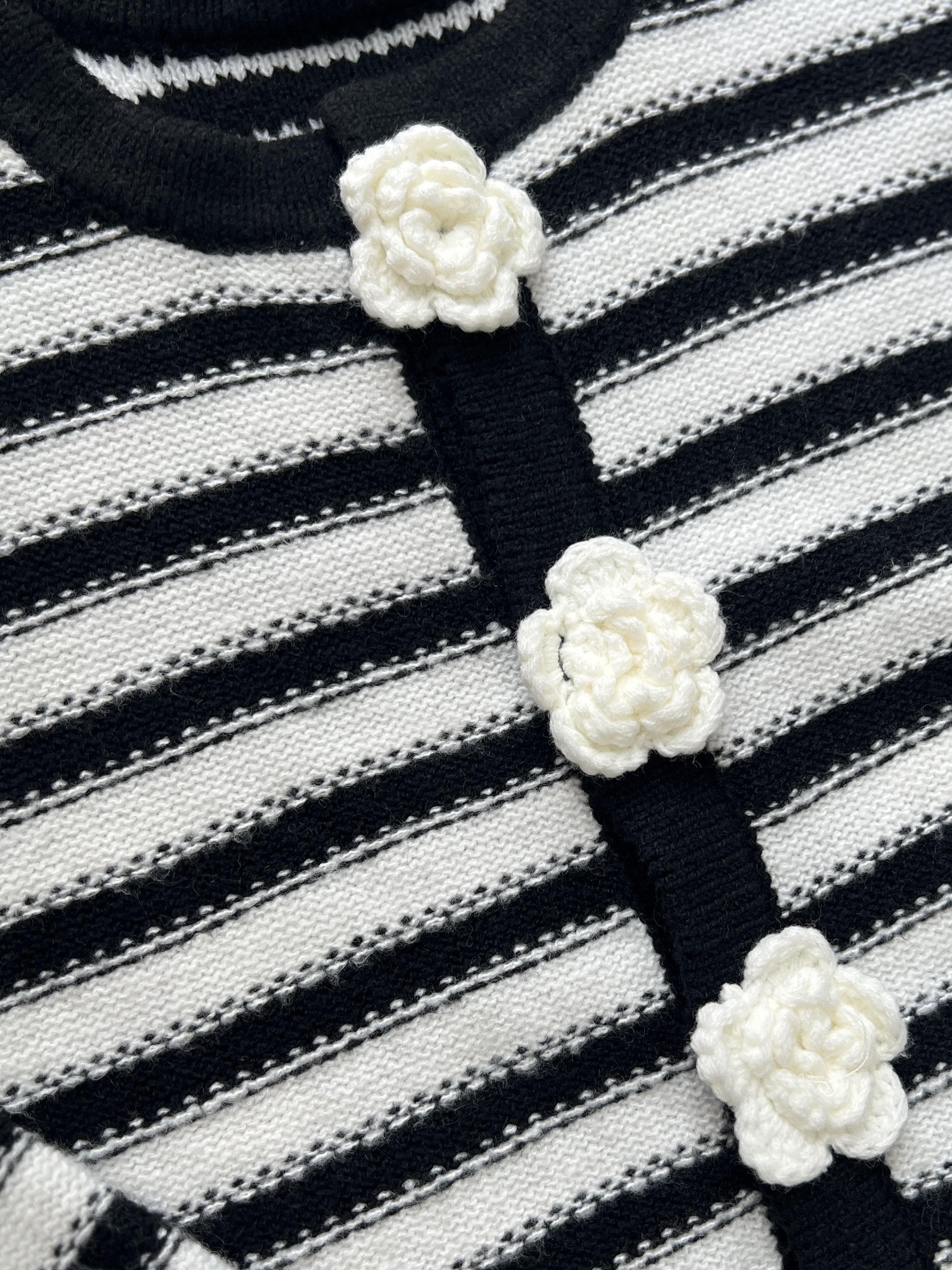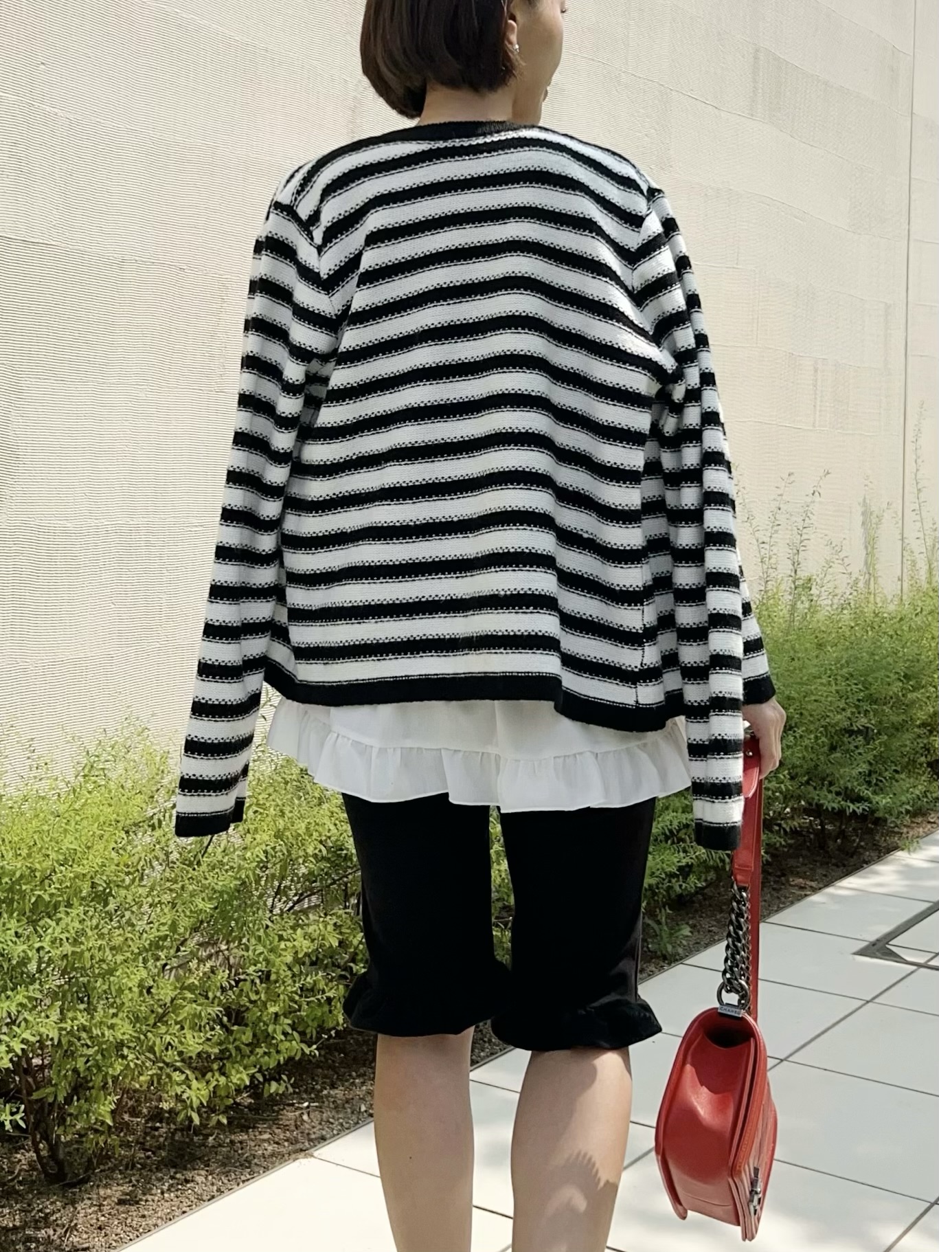 立体的なフラワーが目を引くボーダーカーディガン。カジュアルにはもちろん、フェミニンなスタイリングにもマッチ。ゆったりとしたサイズ感でコンサバ感を抑えた1枚です。フロントを開けても閉じても素敵に決まります。スタイリングしているスカートとパンツも発売中です♪▼【50%OFF】Volume flare skirt▼Frill biker shorts(BLK/WHT)STAFF:158cm【サイズ】(平置き採寸/約)着丈59cm 肩幅44cm 身幅55cm 袖丈65cm【素材】ポリエステル100% ■クロネコ代金後払いをご利用のお客様■商品到着後に請求書(払込用紙)が到着します。14日以内にお支払いをお願いします。全国の主要なコンビニで、請求書をレジに持っていくだけでお支払いが可能です。全国の郵便局でも同じ請求書でお支払いできます。※ご請求書が圧着ハガキタイプの場合、郵便局でのお支払いはできません。※弊社の銀行口座宛にお振込頂くものでは御座いません。ご注意下さい。