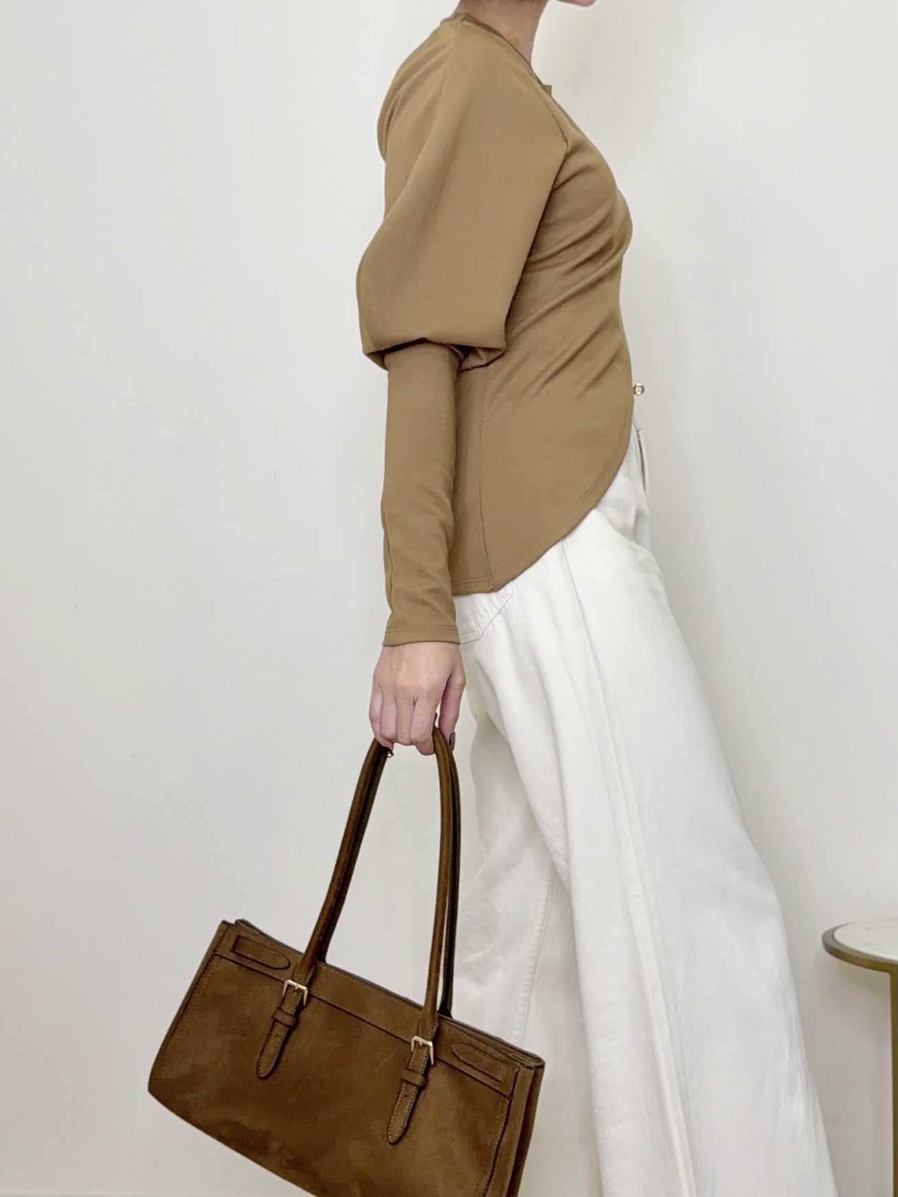 甘くならないモードなパフスリーブが大人可愛い1枚です。