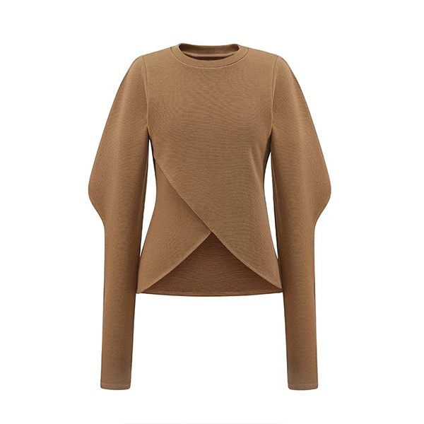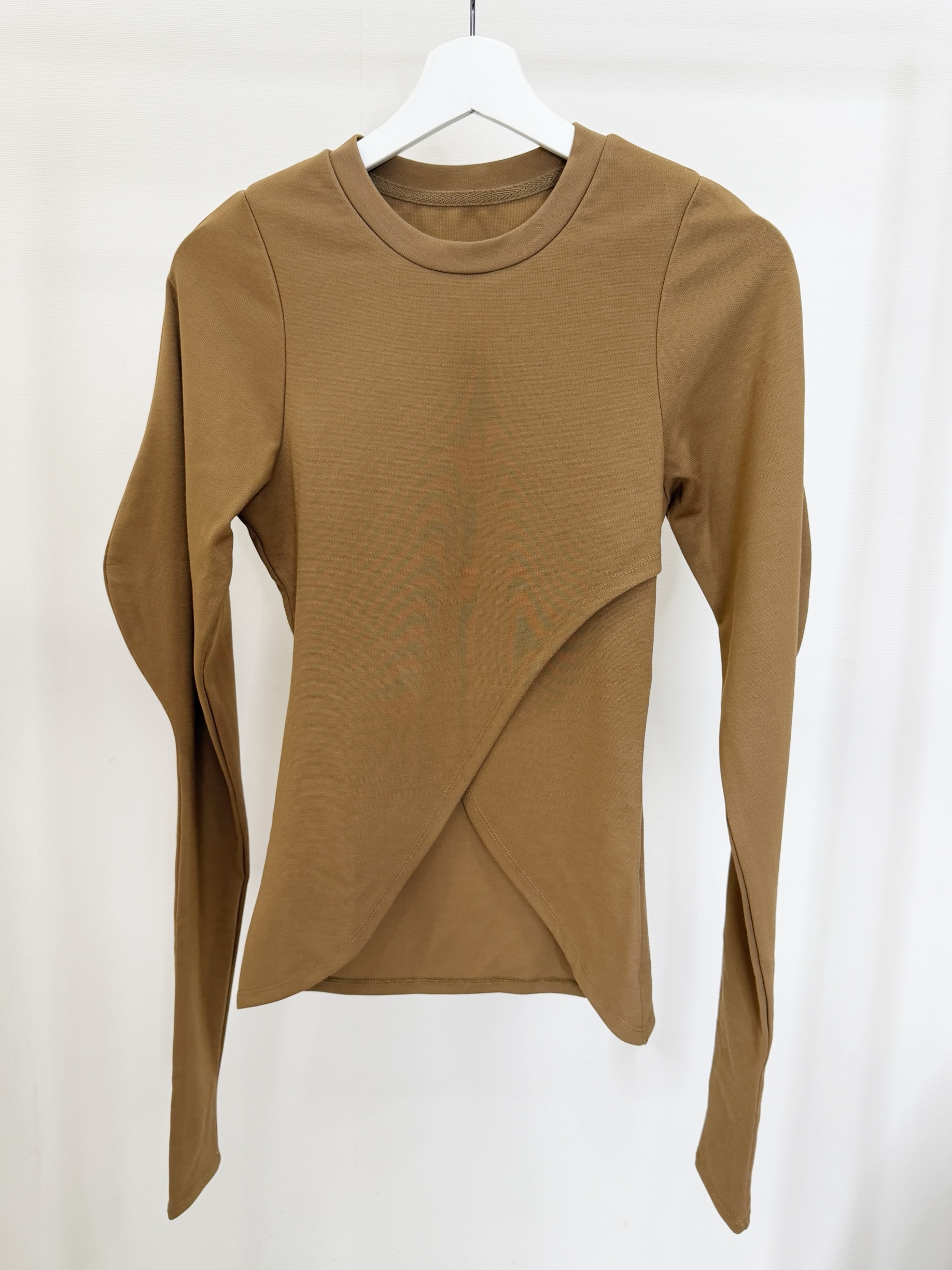 フロントのクロスデザインがポイント。ハイウエストのボトムスと好相性。