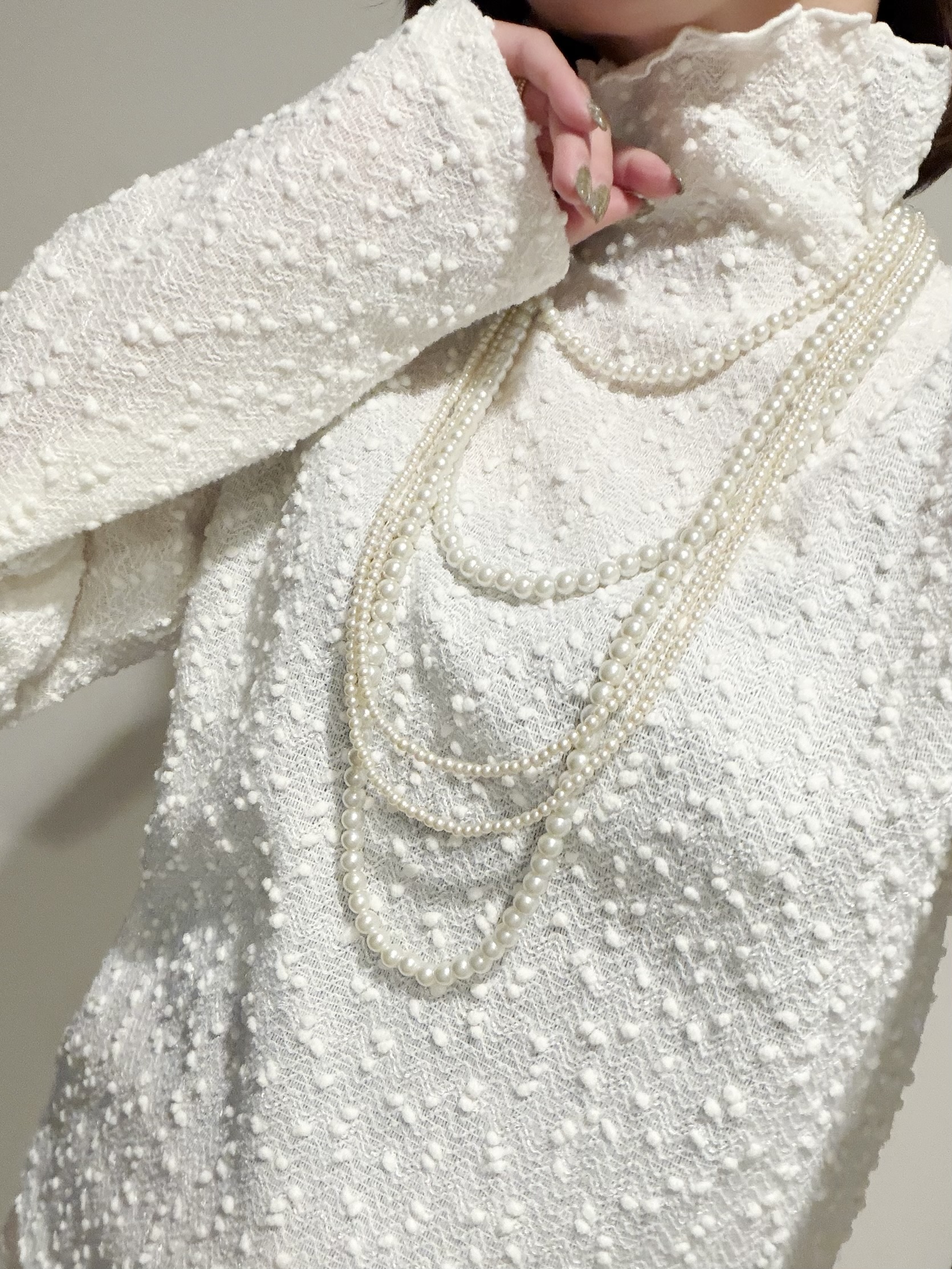 ホワイトがクリアのスパンコールの為画像では映りにくいのですが動く度、上品上品に煌めきます。