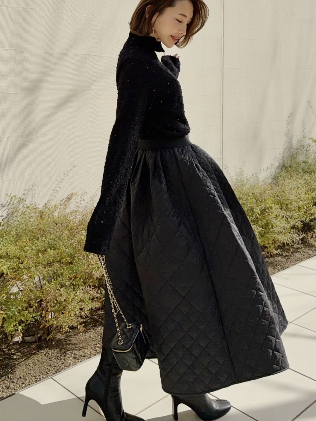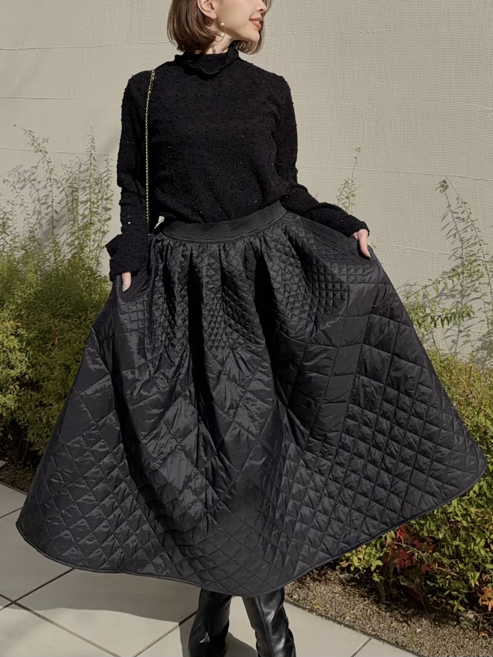 温かみのあるキルティング素材が冬コーデに華を添えます。