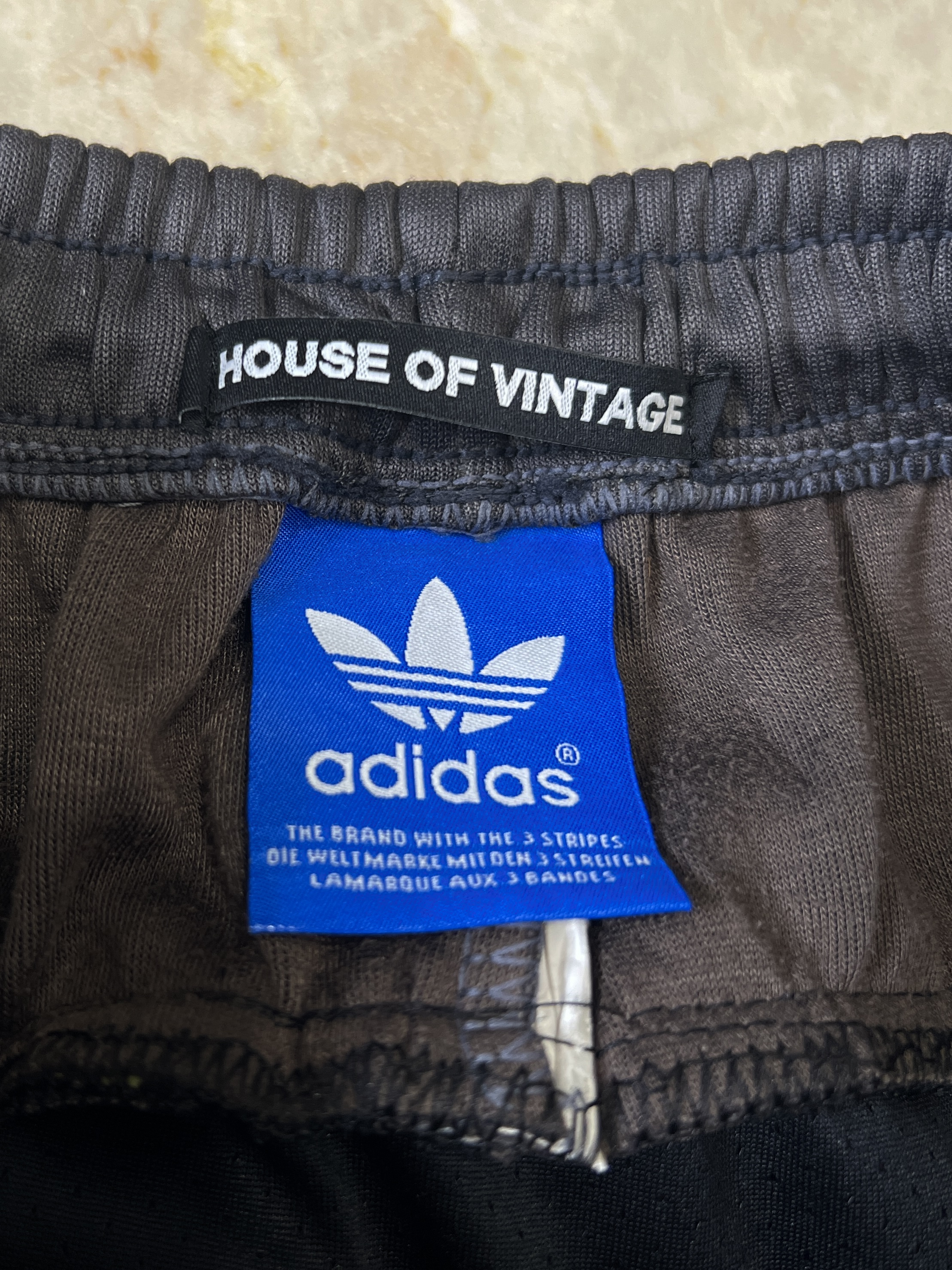 ダークグレーとブラウンの中間色のような秋冬にぴったりなadidasのジャージを裁断し、スカートにリメイクしました。
