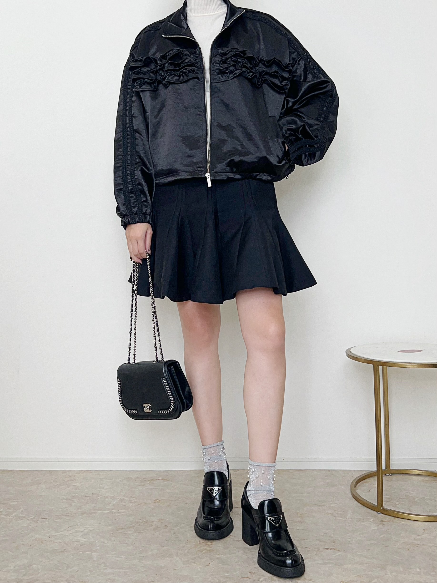 カジュアルな中にも上品でエレガントな雰囲気が漂うフリルブルゾン。