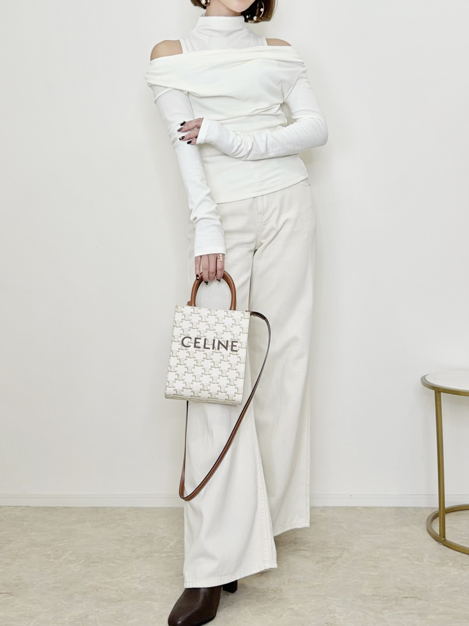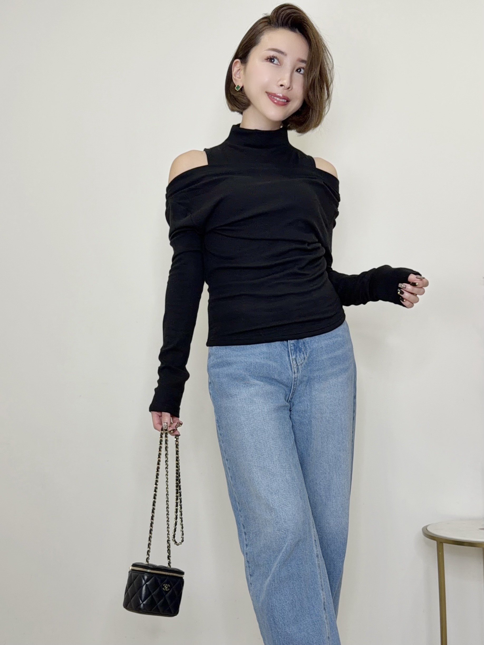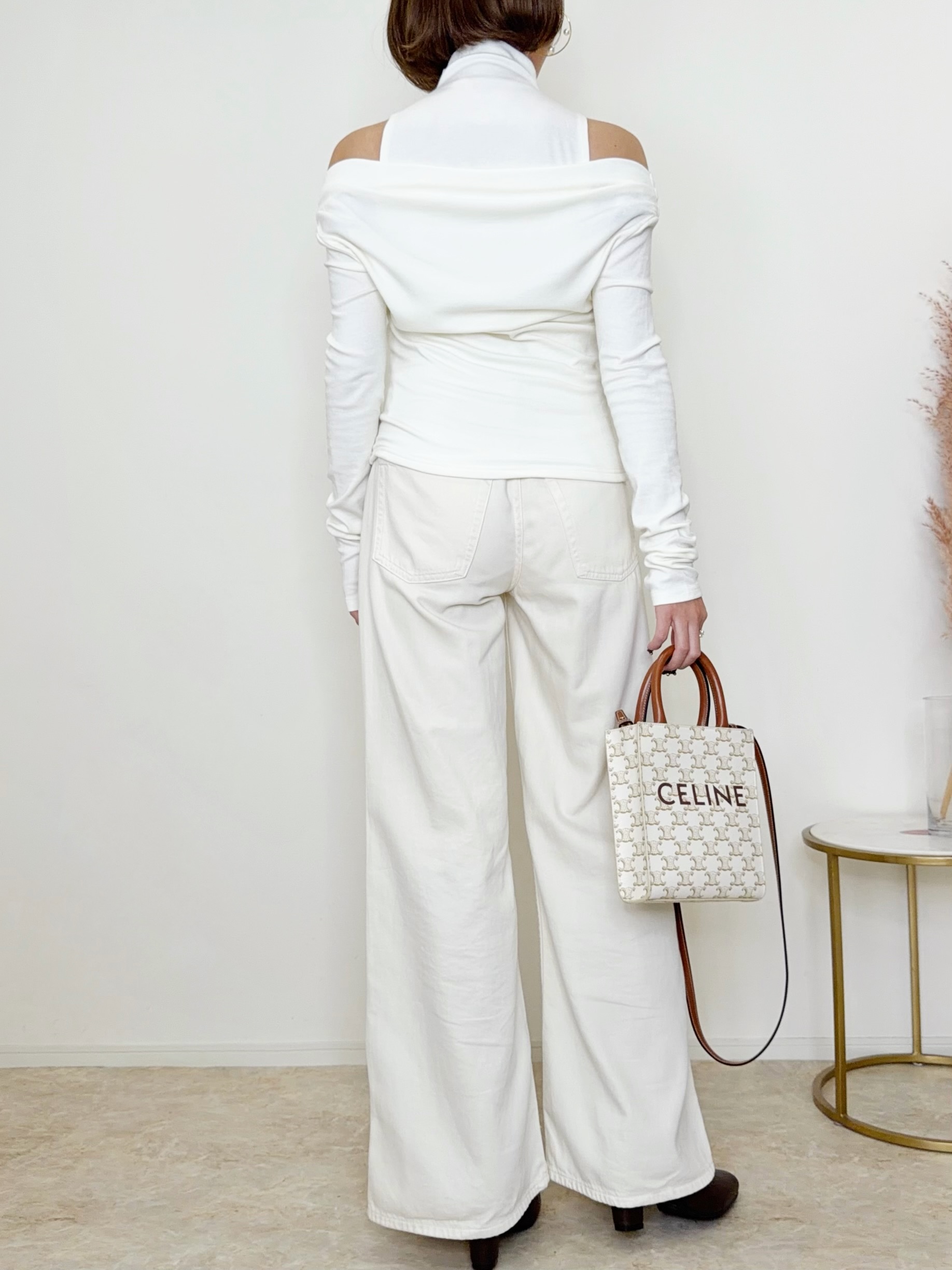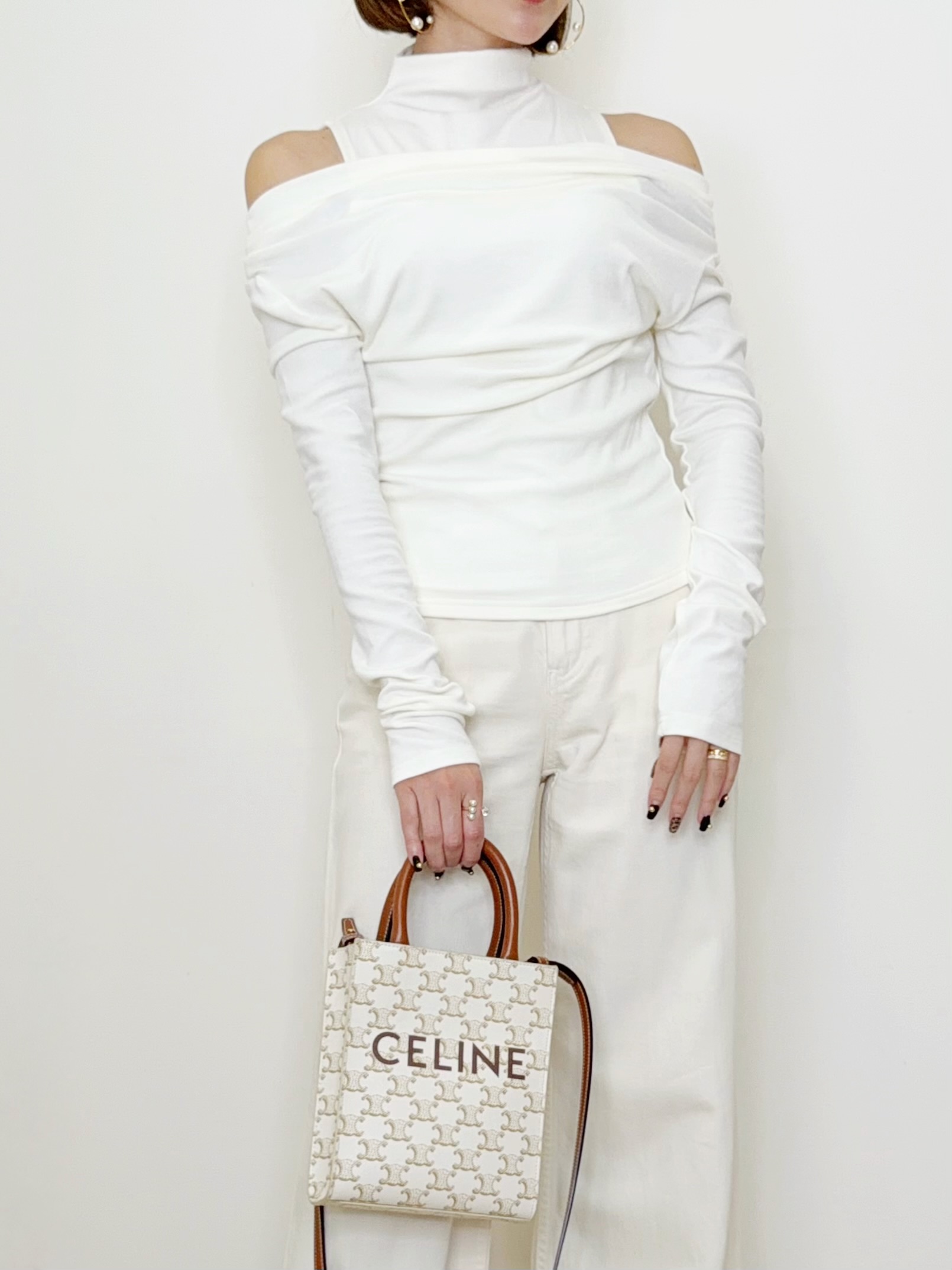オフショルダーの肌見せ具合は調節可能なのでシーンに合わせて着用していただけます。