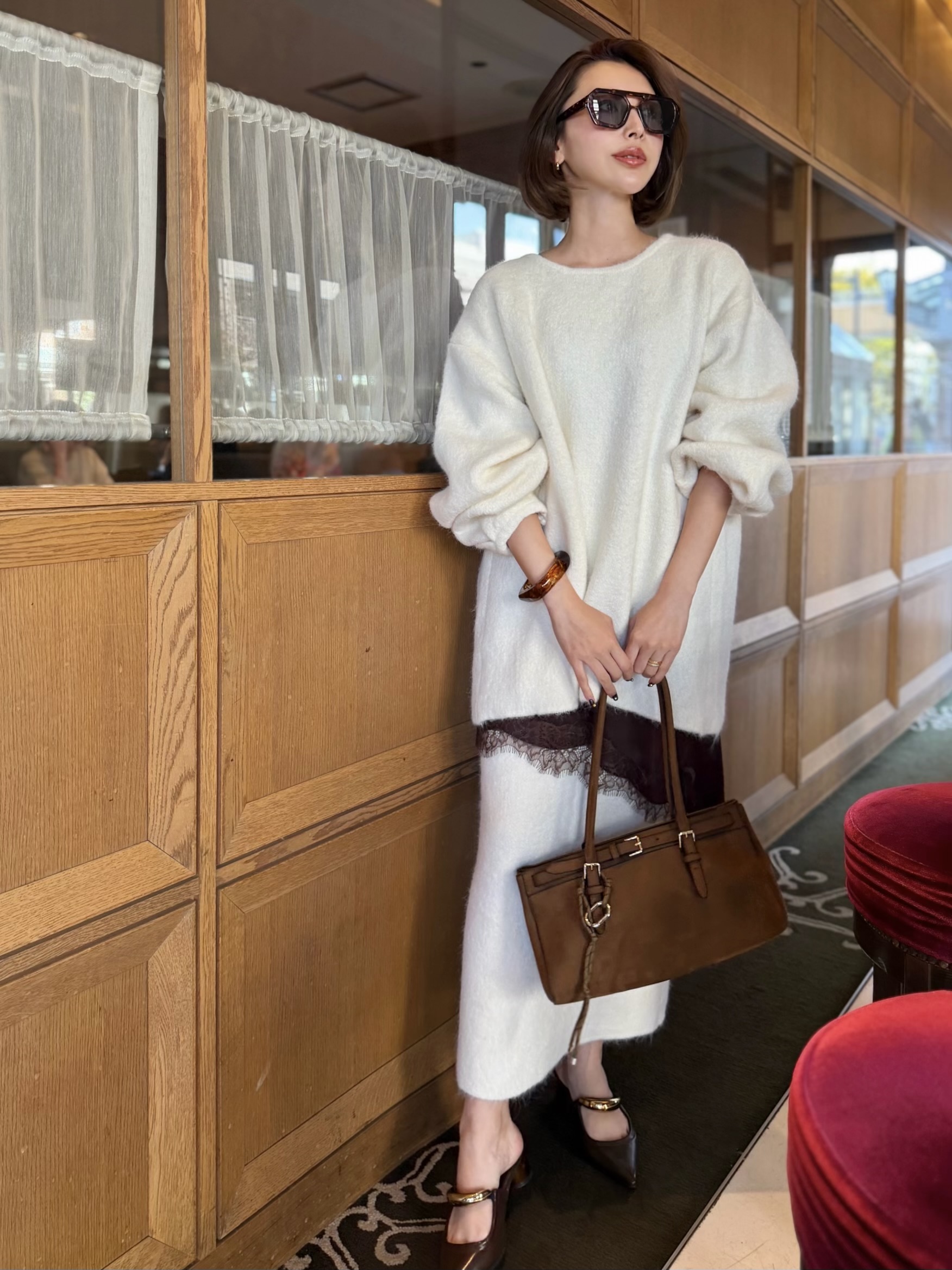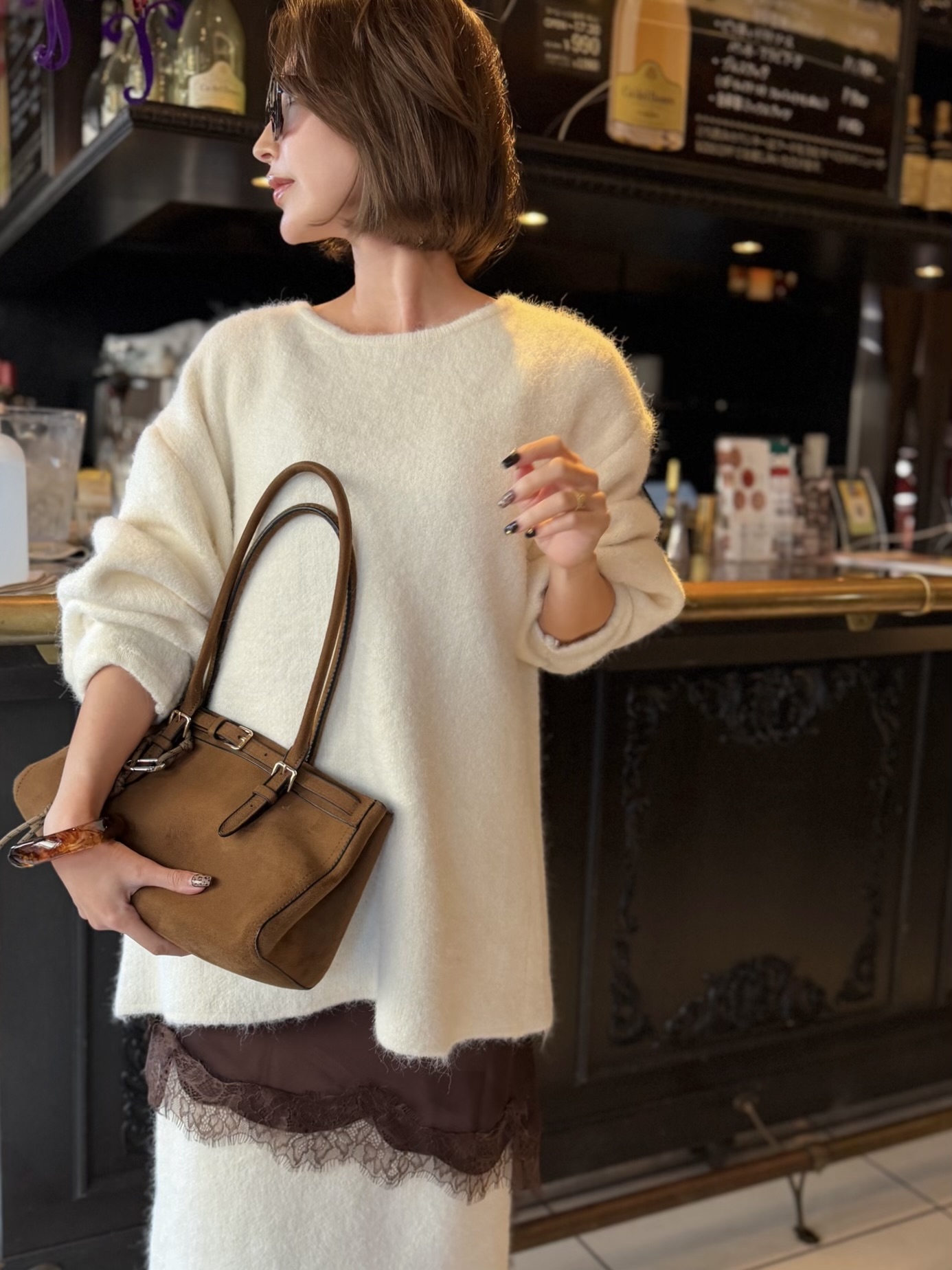 ほわっと起毛したニットで思わず触れたくなる女性らしさを演出します。