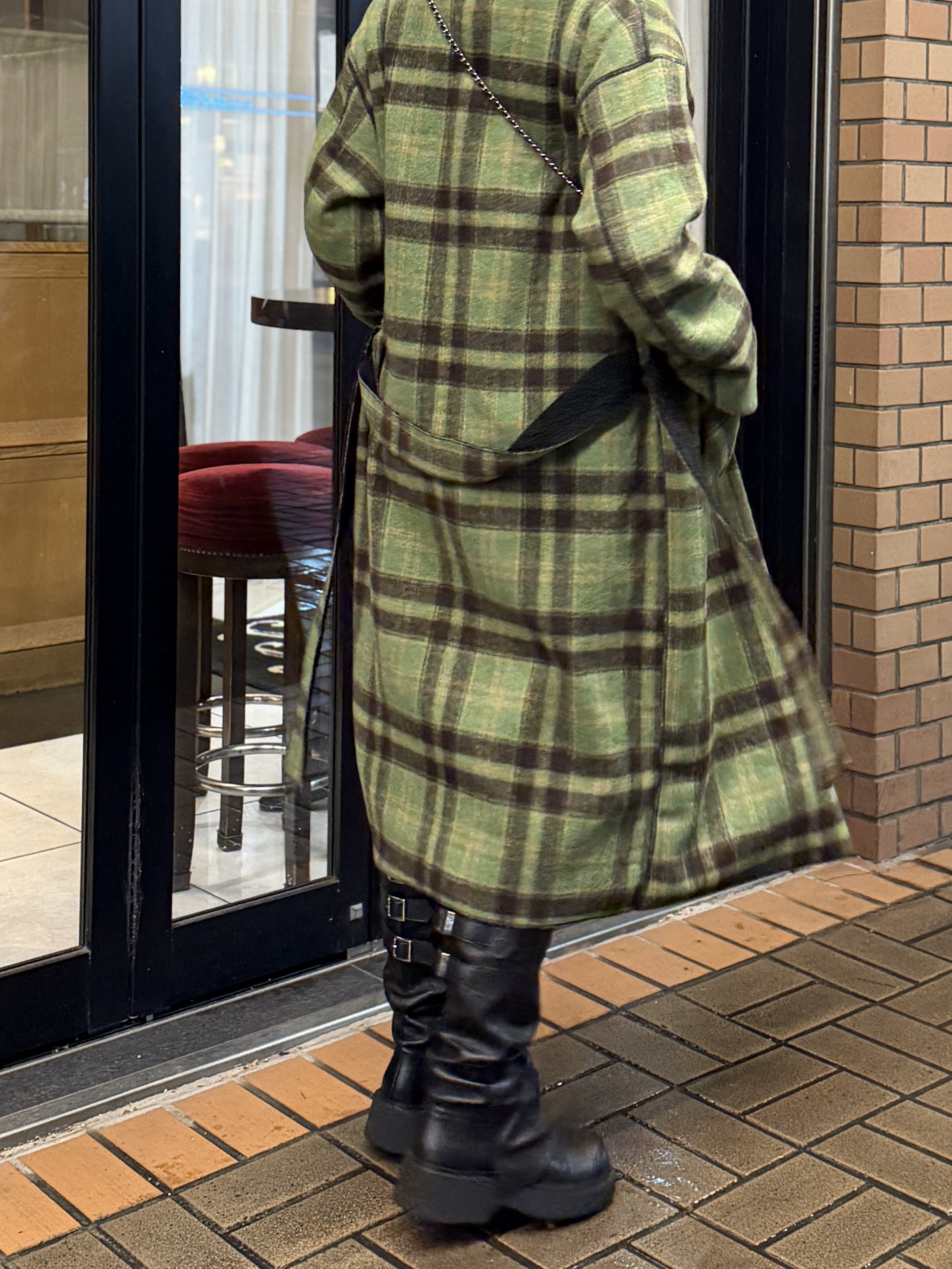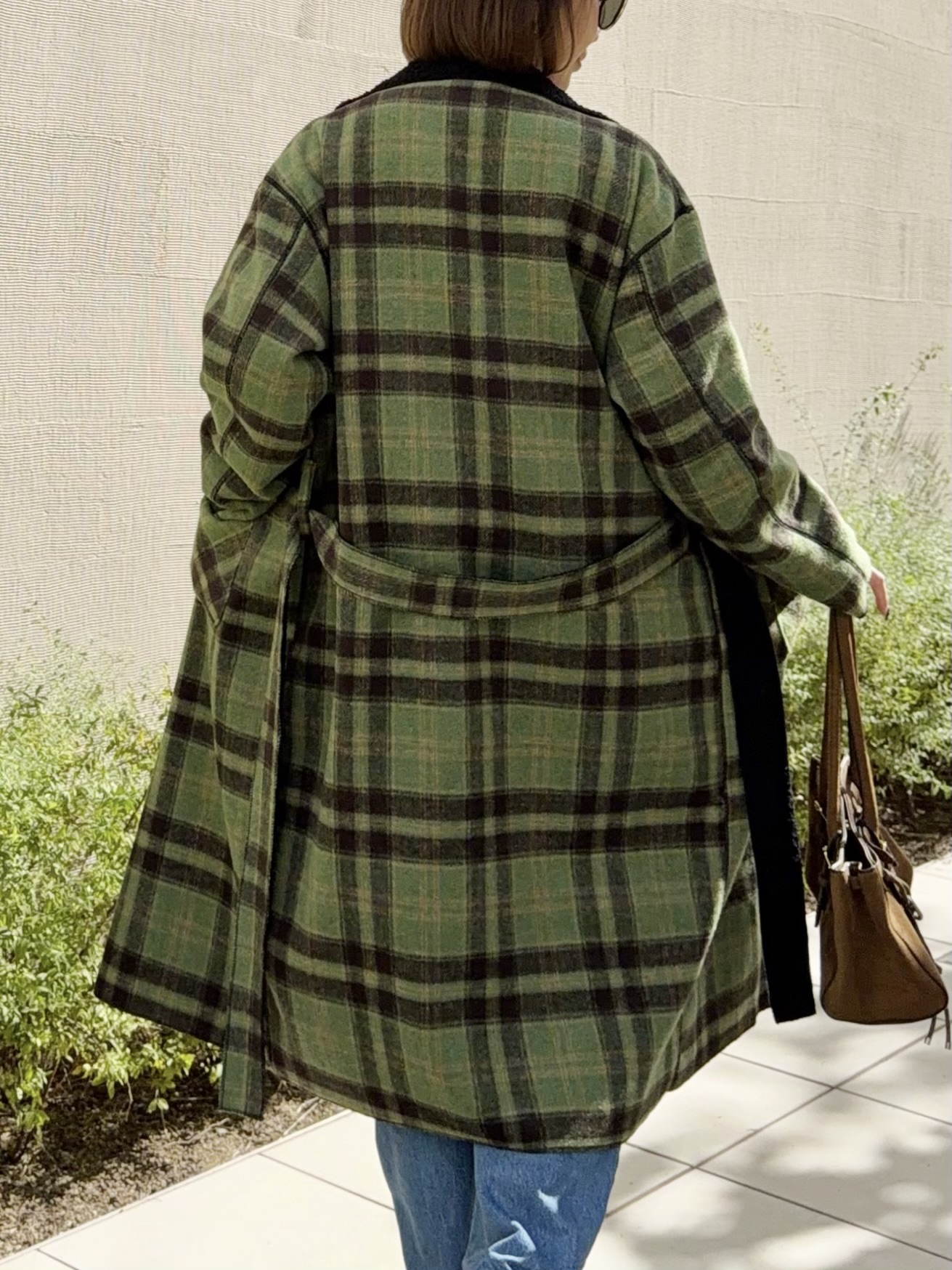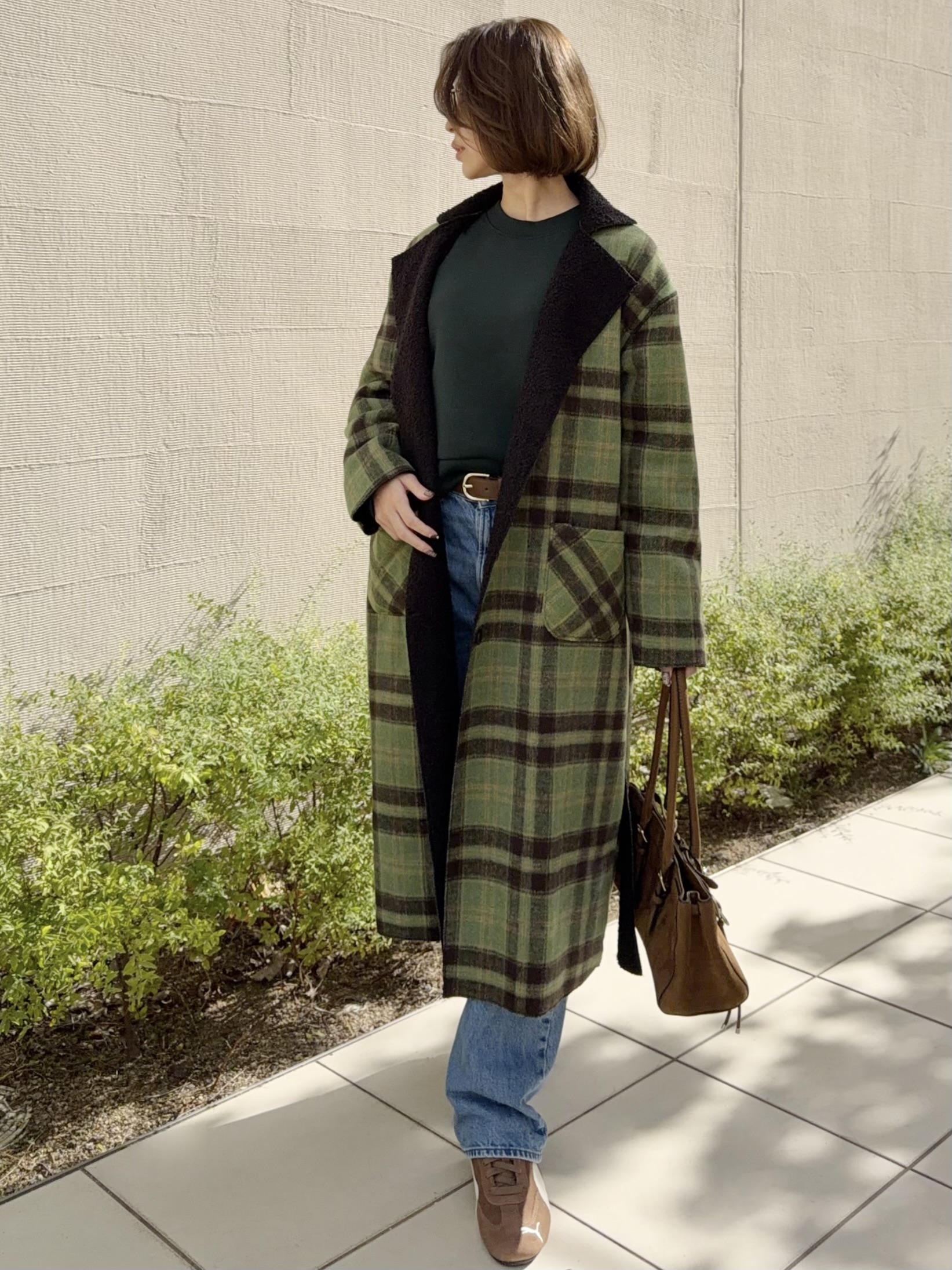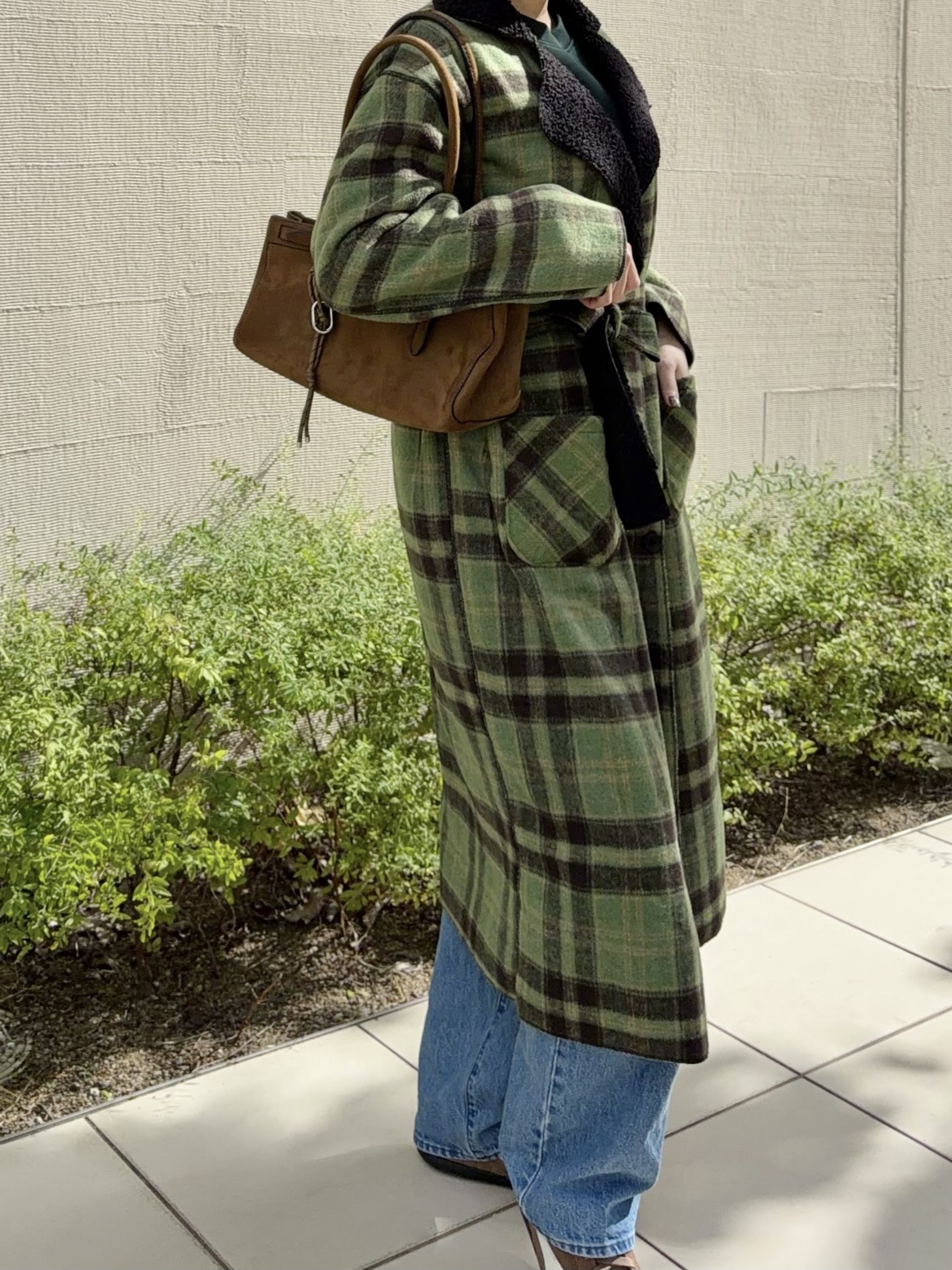 綺麗なグリーン×ブラウンベースのチェック柄コート。
