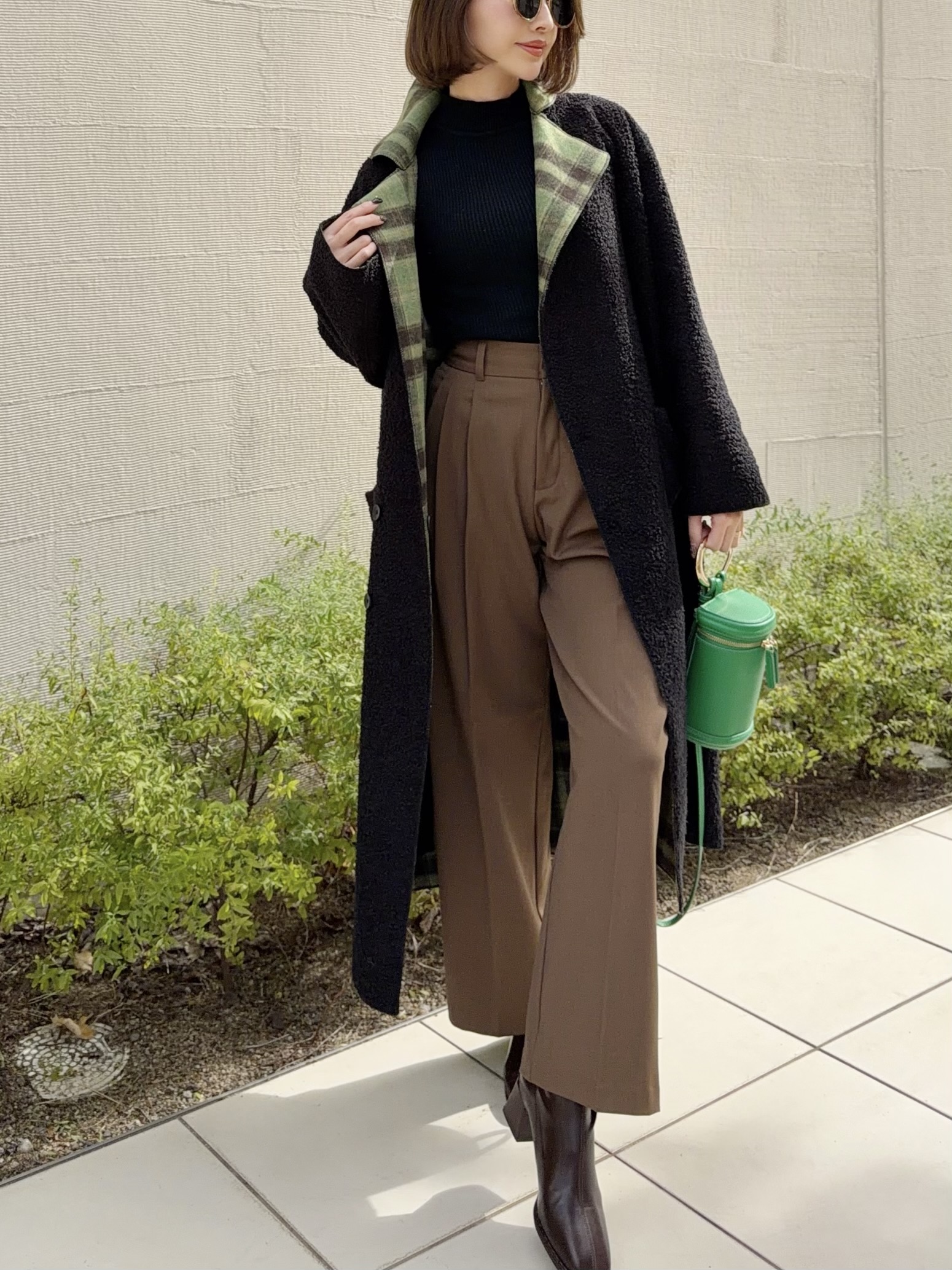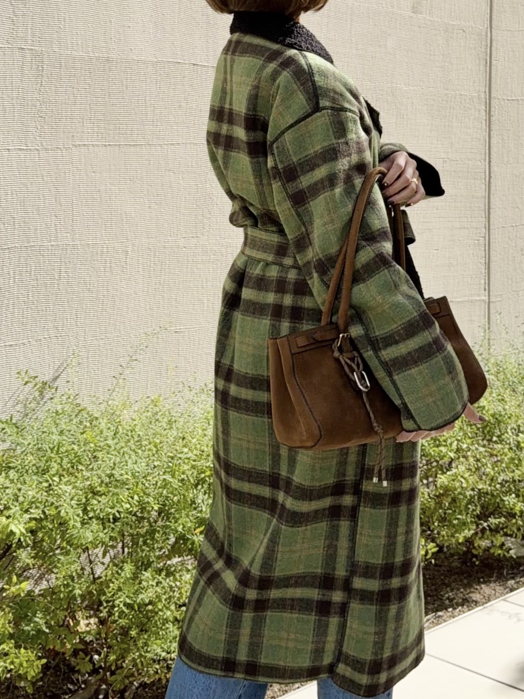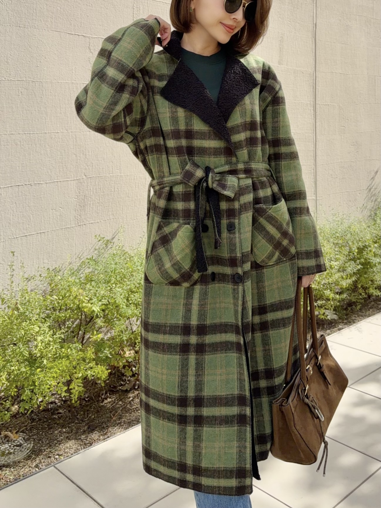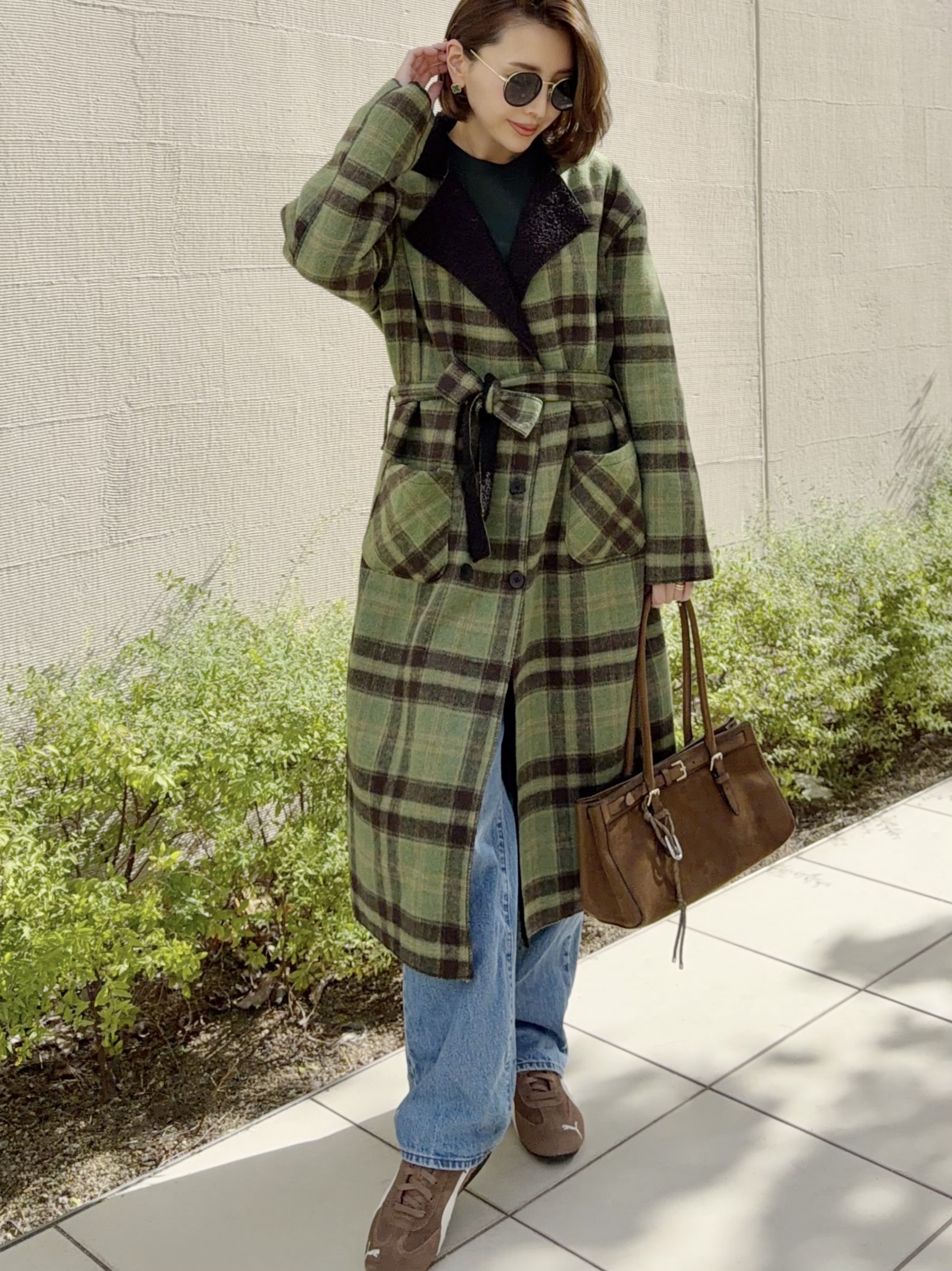 綺麗なグリーン×ブラウンベースのチェック柄コート。
