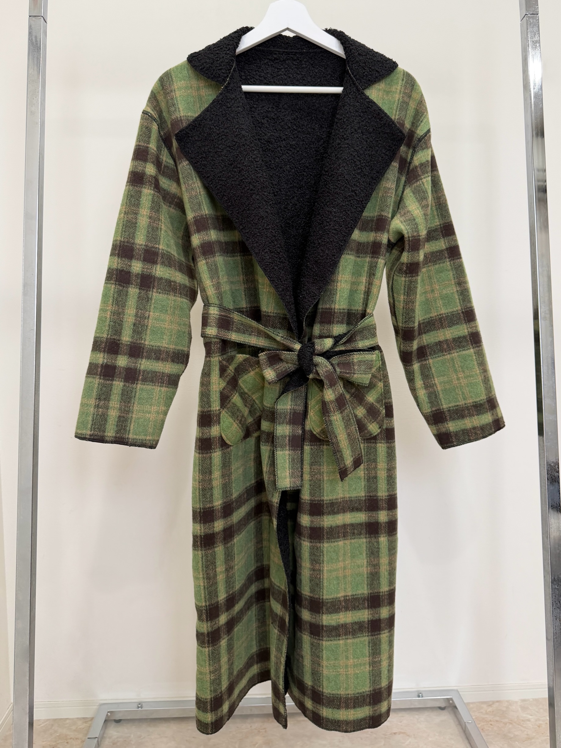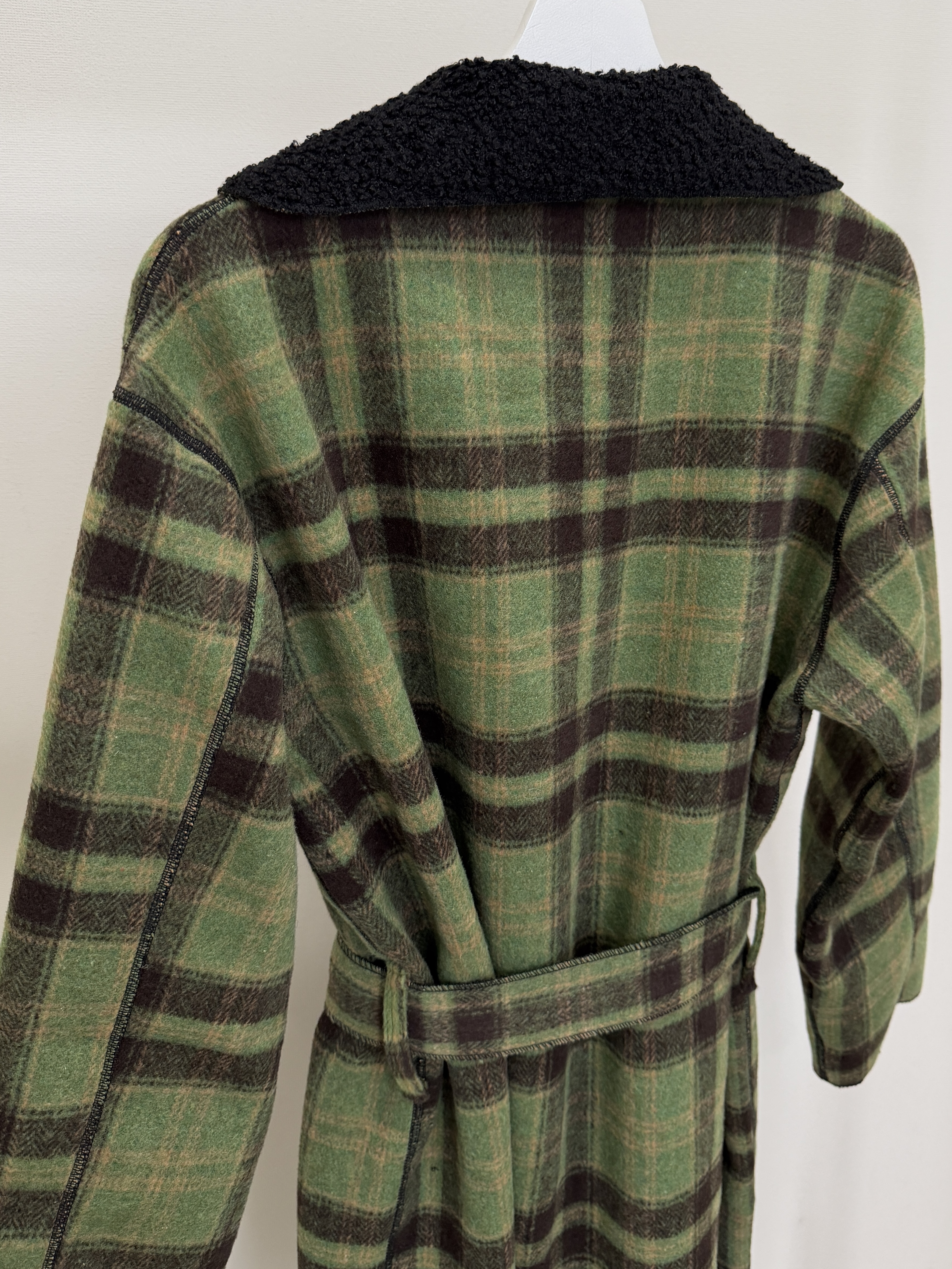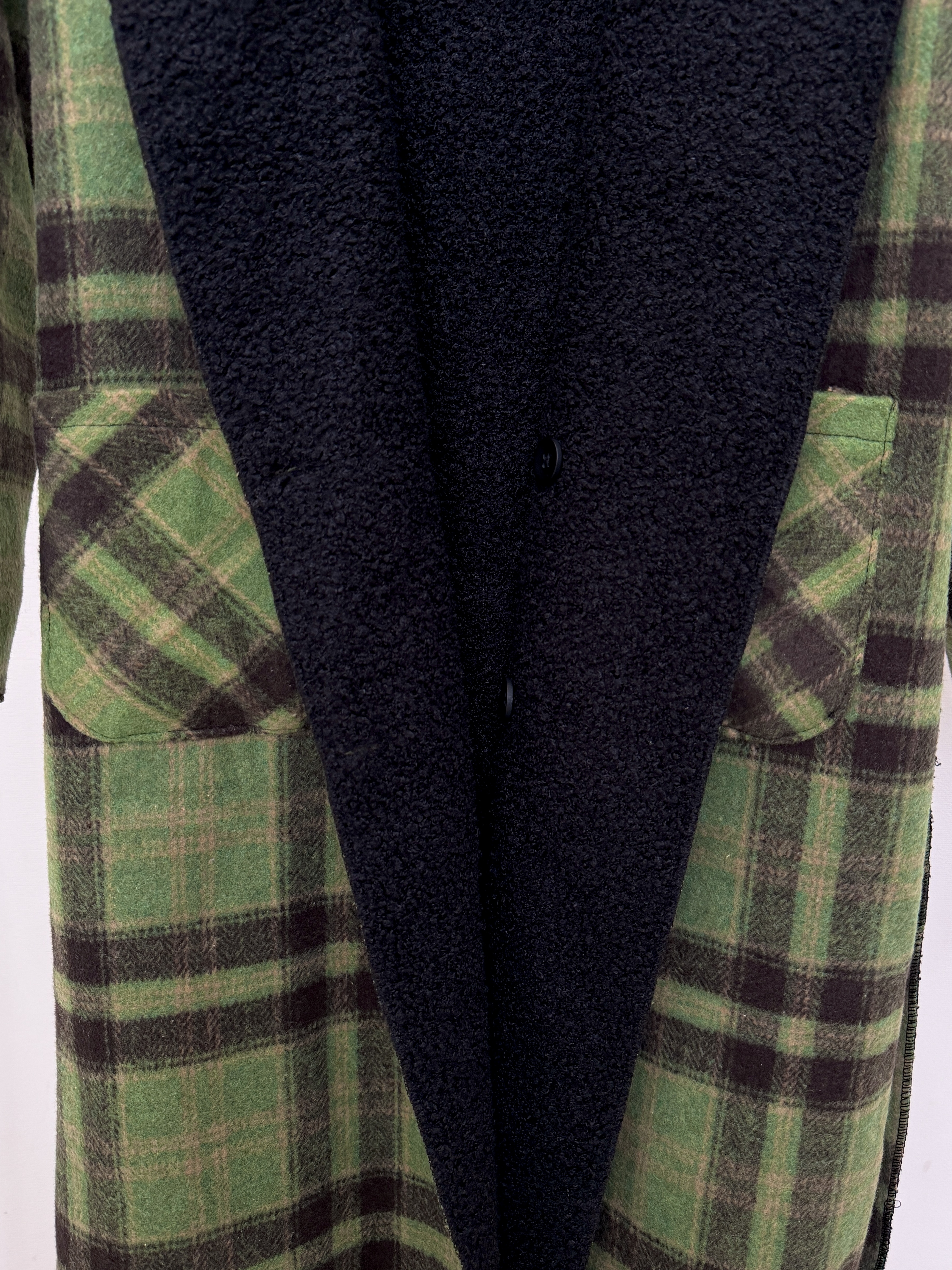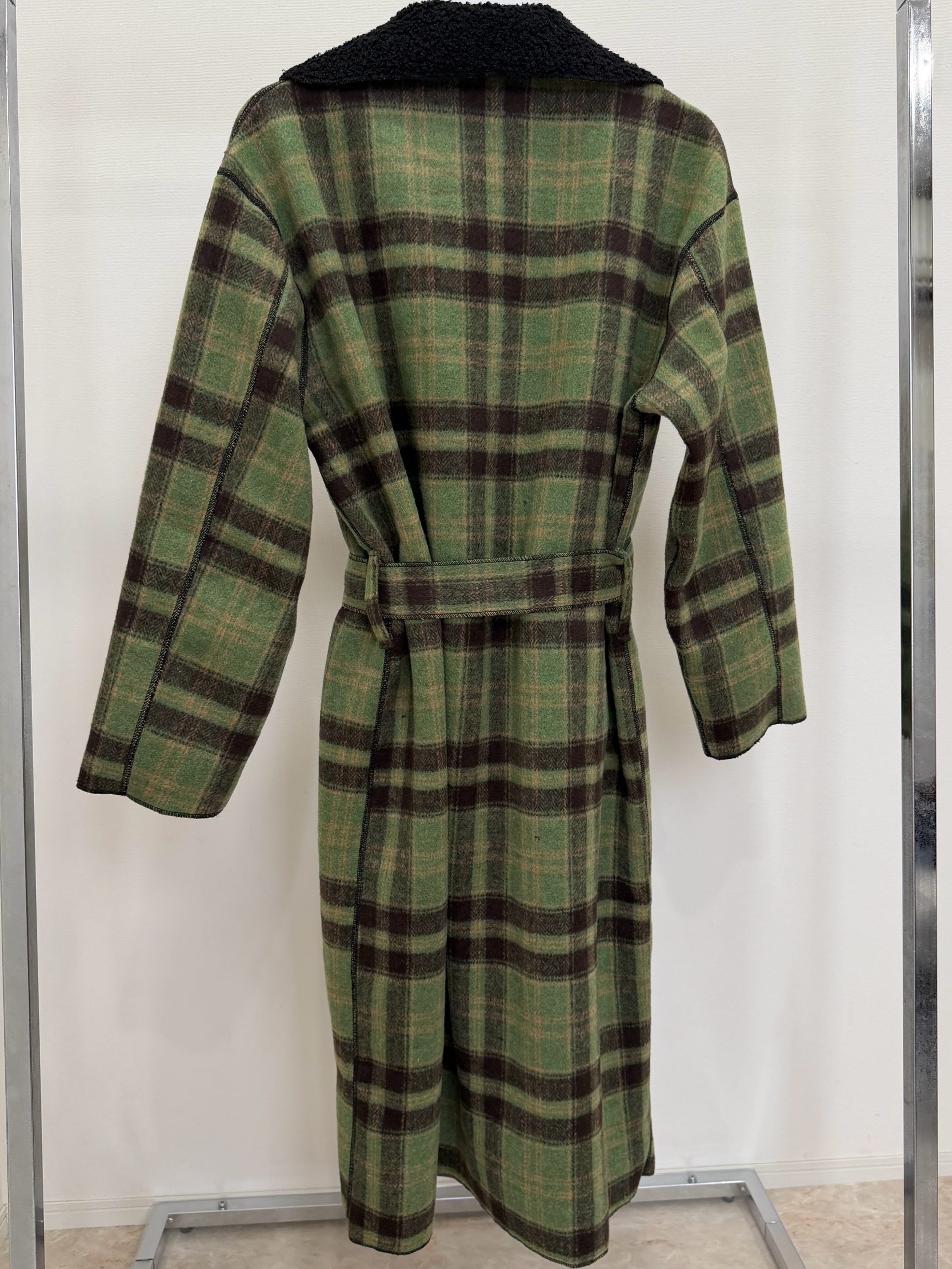 綺麗なグリーン×ブラウンベースのチェック柄コート。