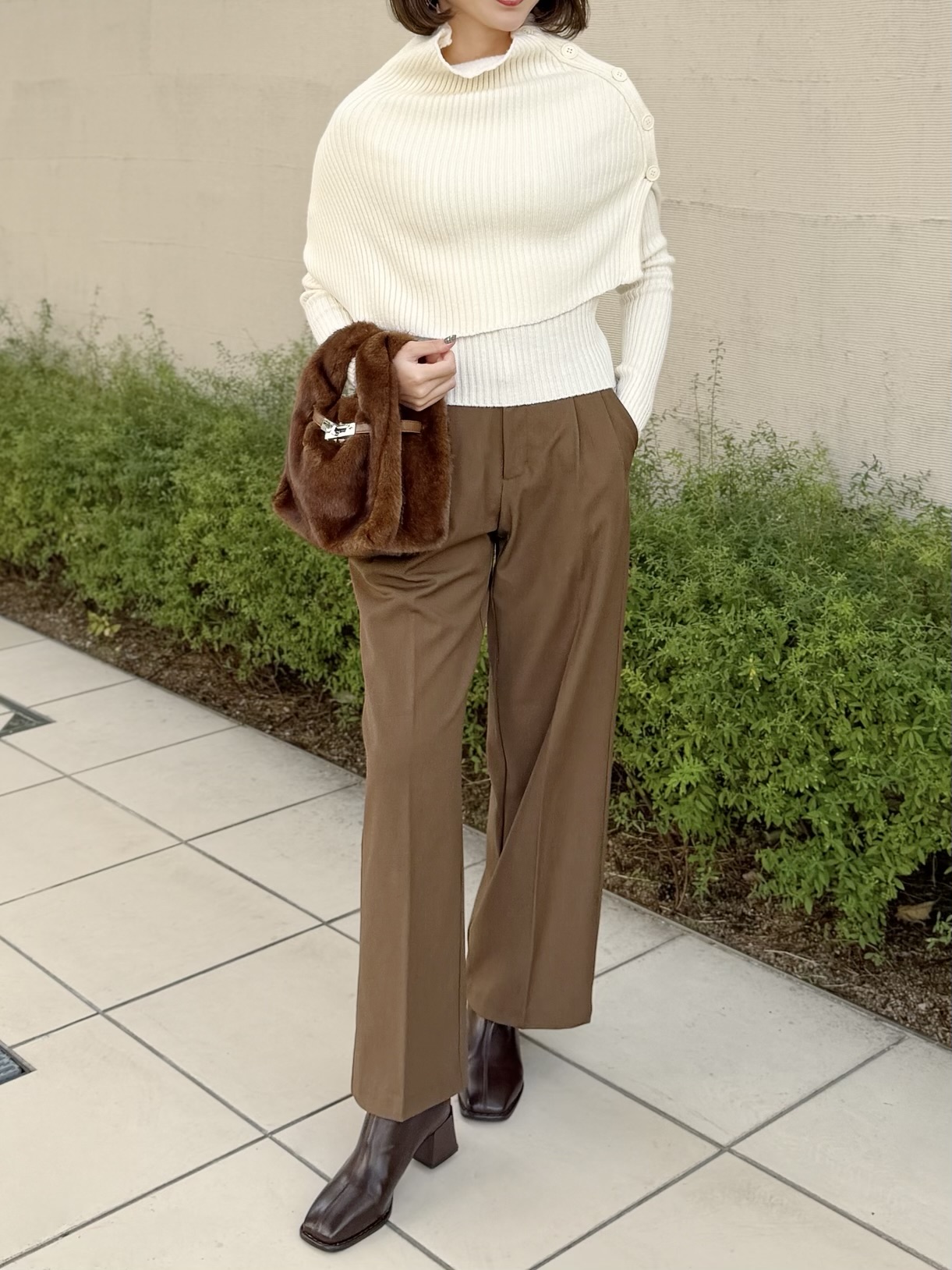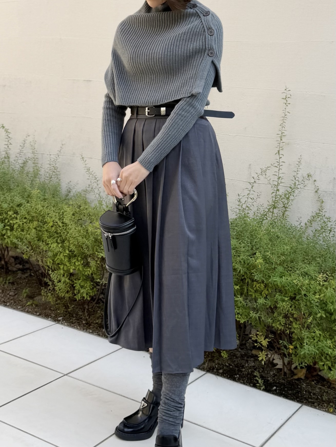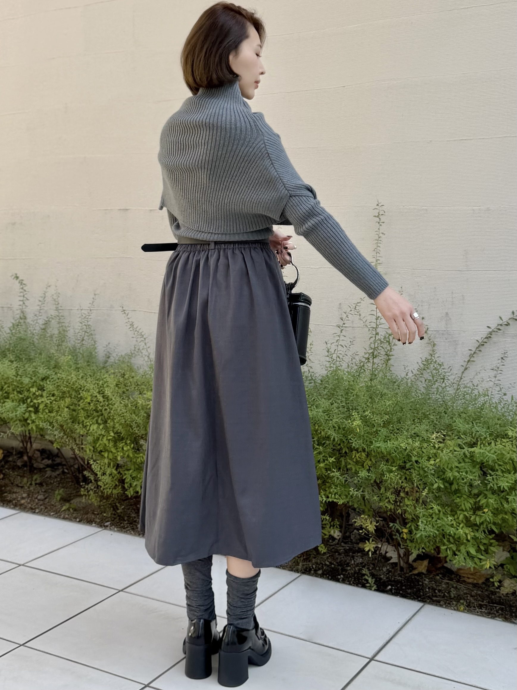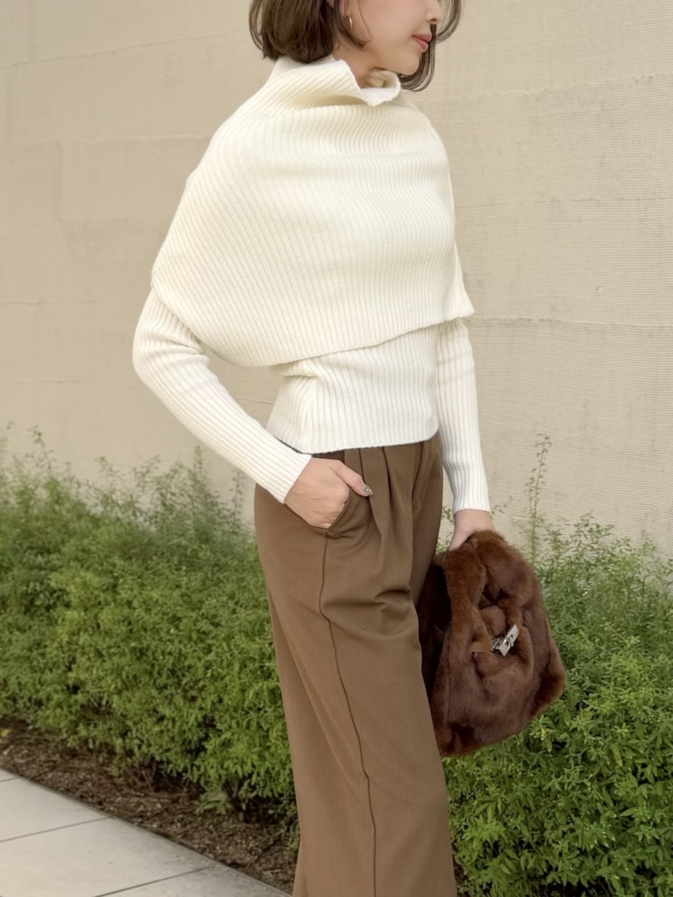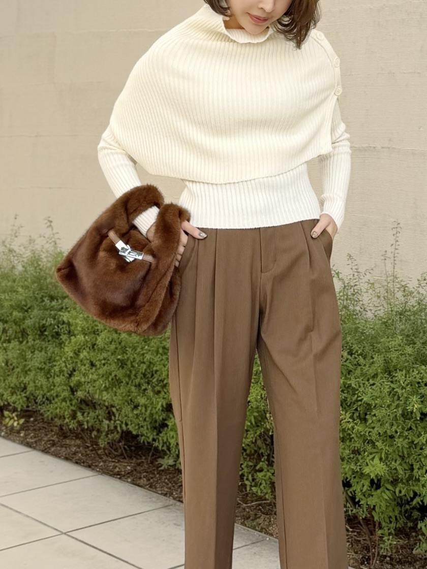 レイヤードデザインが目を引くケープニット。