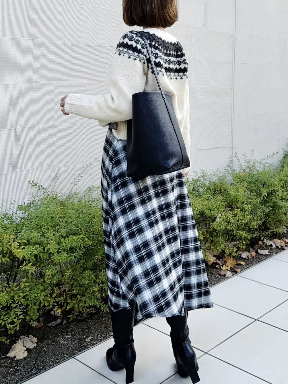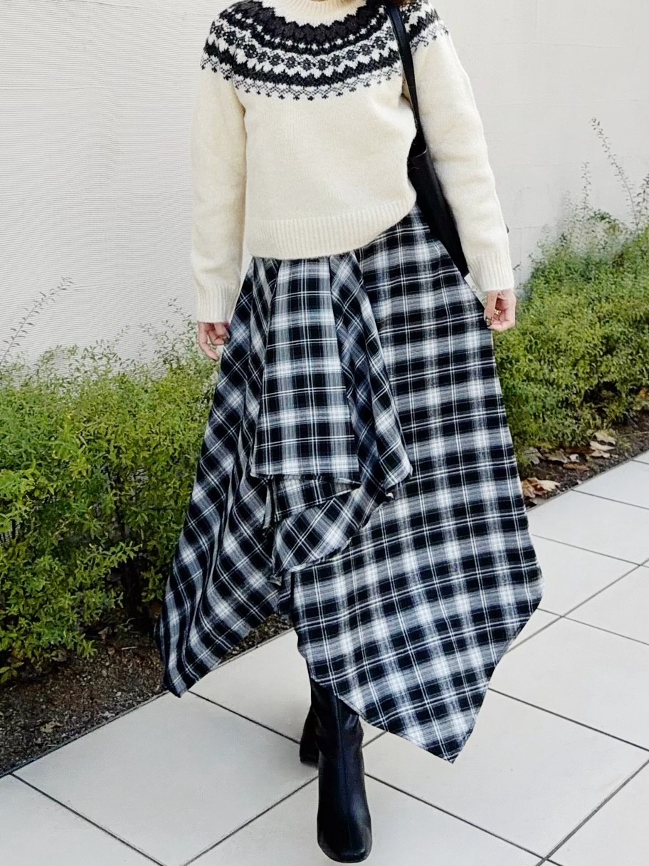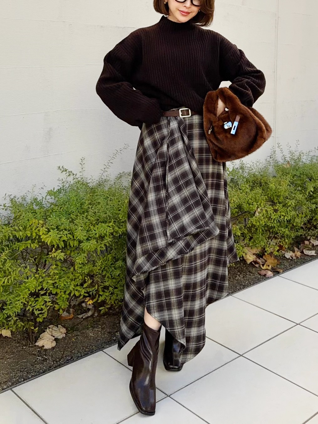 ニットやスウェットなど様々なトップスにマッチするチェックスカート。