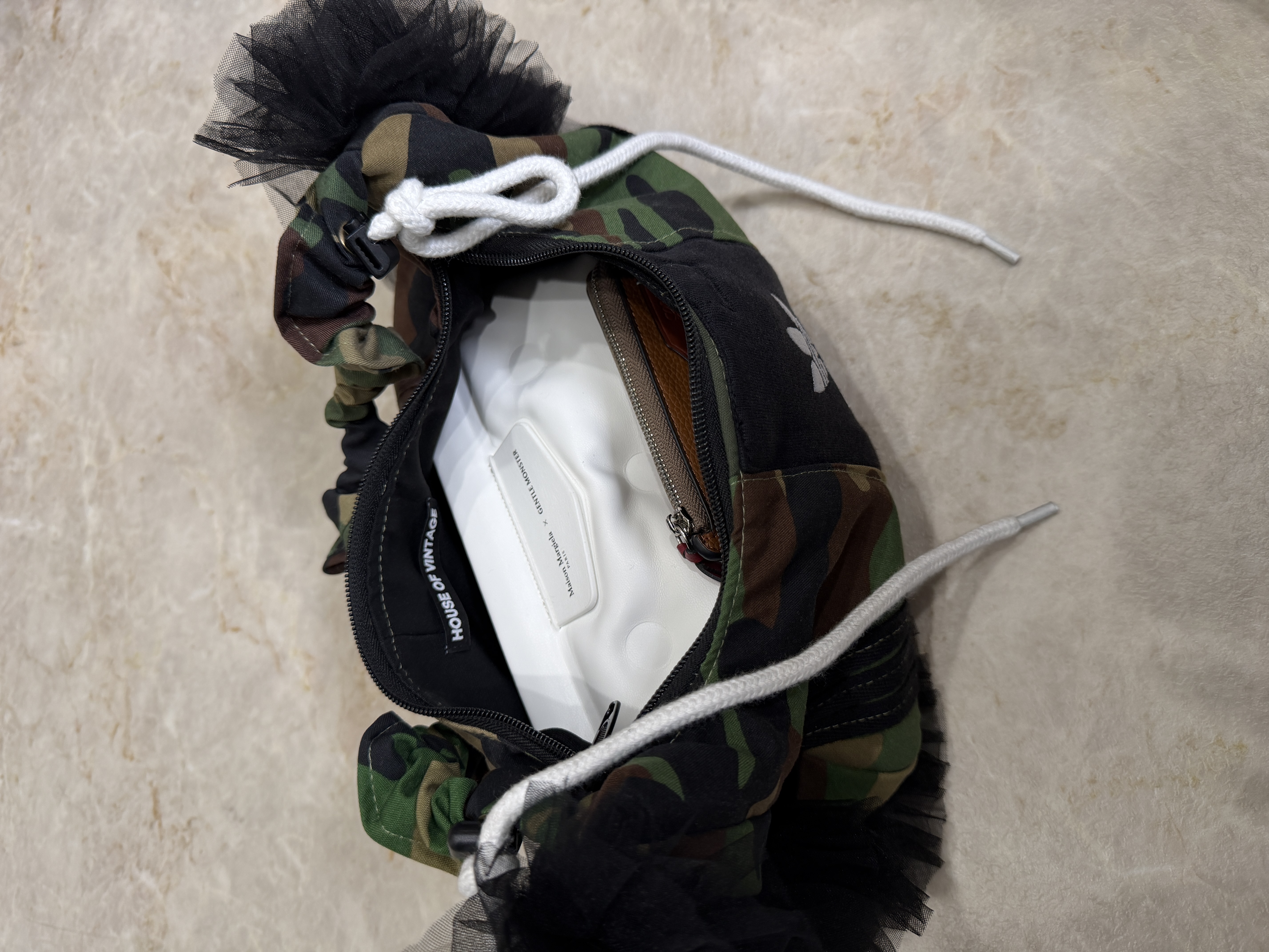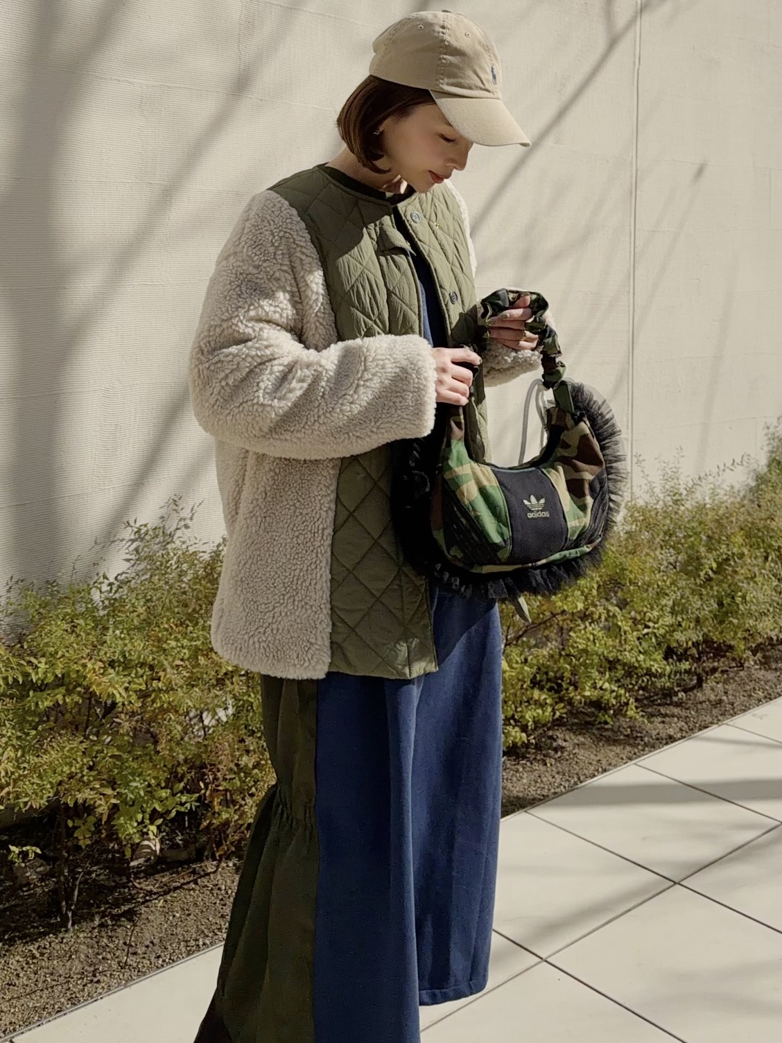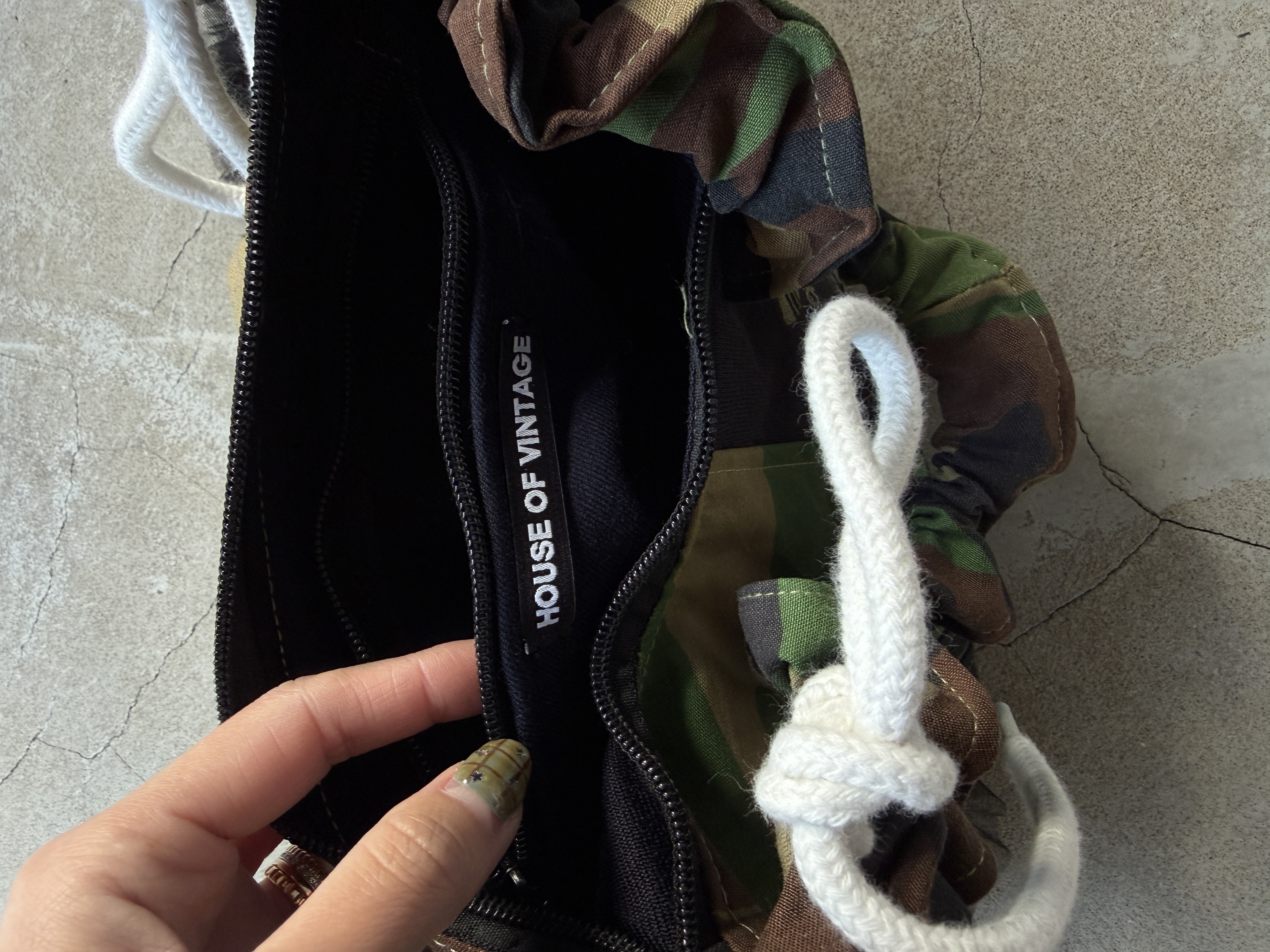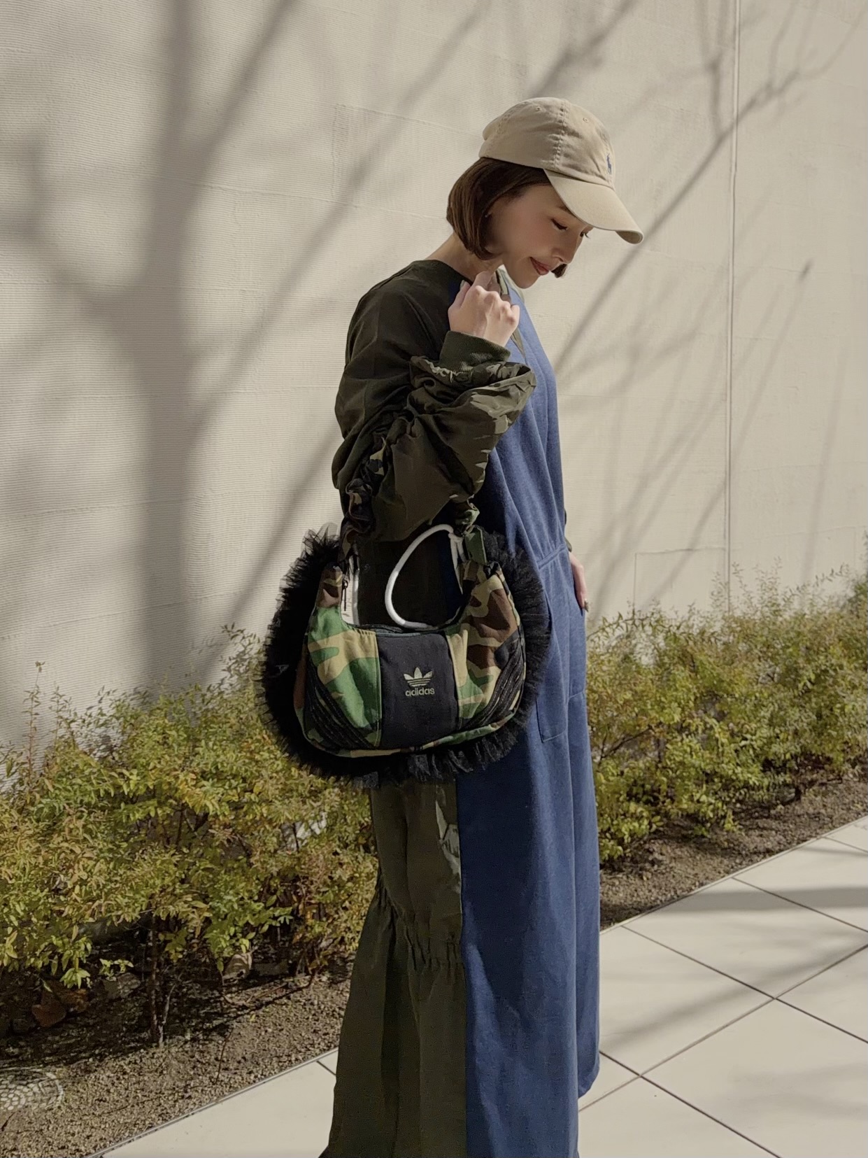 adidasのスウエットとカモフラージュ柄の生地を組み合わせてリメイクした2wayバッグ。ドローコードを伸ばすとショルダーバッグとしてもお持ちいただけます。全体のバランスが取りやすいころんとしたフォルムがポイント。しっかりとマチのあるデザインで財布、ポーチ、スマホ等十分収納可能です。ボリューミーなチュールのフリルをあしらいカジュアル感を抑えました。HOUSE OF VINTAGEは全て1点物のアイテムを展開。柄の出方やデニムの色落ちなど、同じものは一つとして無いあなただけの一着をお届けします。※こちらの商品はヴィンテージのデニムや生地を使用しております。多少の汚れやほつれ等ダメージがある場合が御座います。ヴィンテージ特有の風合いをご理解、ご了承頂いた上でのご注文をお願い致します。ヴィンテージ商品の返品交換は対応致しかねます。神経質な方や商品の特性をご理解、ご了承頂けない方は手に取ってご購入頂けるショップでのご購入をお願い致します。STAFF:158cm【サイズ】(平置き採寸)縦16cm 横33cm まち(底部分)8cm 持ち手高さ41cm(ストラップを最長にした状態で計測)【素材】コットン■クロネコ代金後払いをご利用のお客様■商品到着後に請求書(払込用紙)が到着します。14日以内にお支払いをお願いします。全国の主要なコンビニで、請求書をレジに持っていくだけでお支払いが可能です。全国の郵便局でも同じ請求書でお支払いできます。※ご請求書が圧着ハガキタイプの場合、郵便局でのお支払いはできません。※弊社の銀行口座宛にお振込頂くものでは御座いません。ご注意下さい。