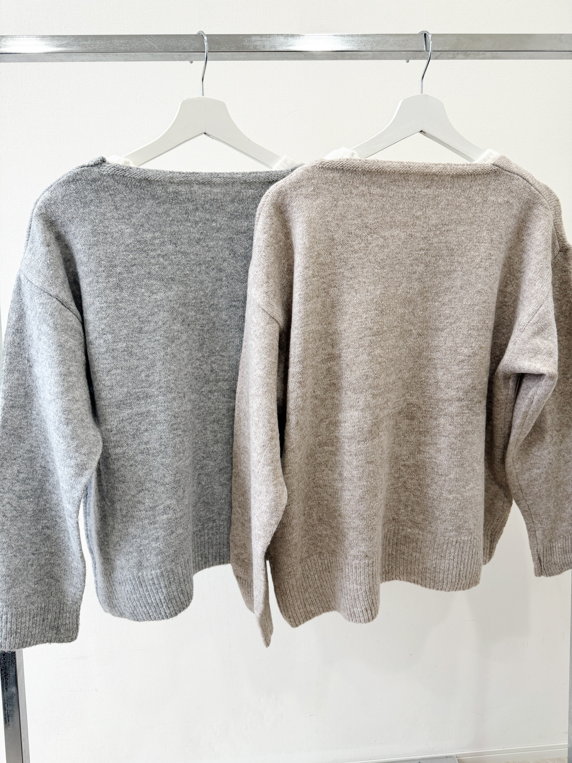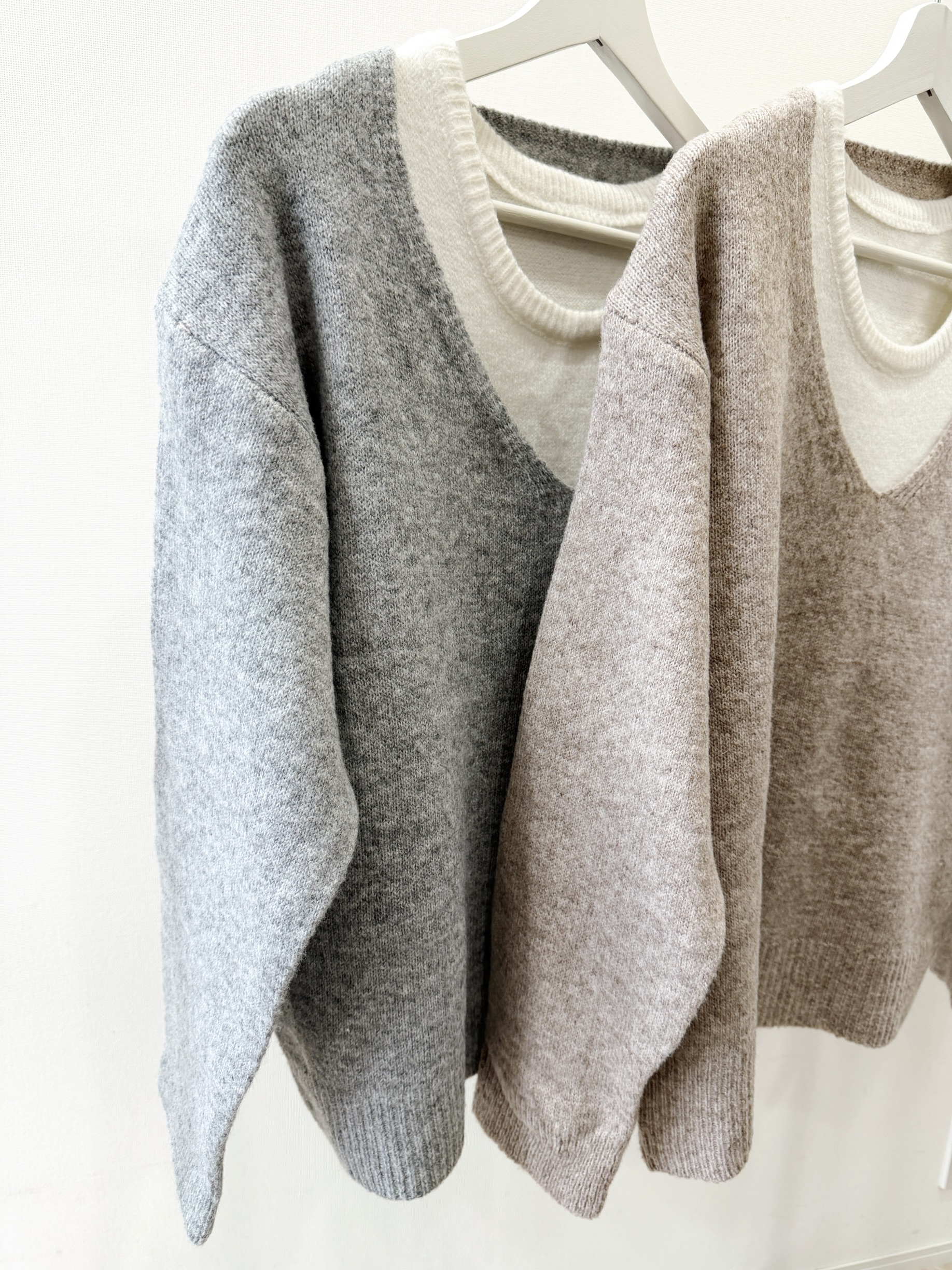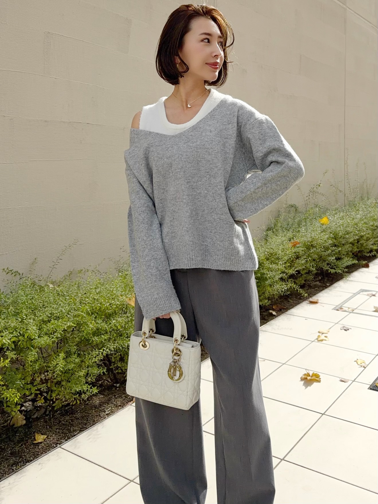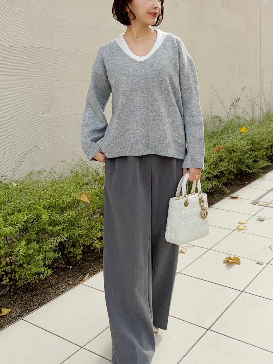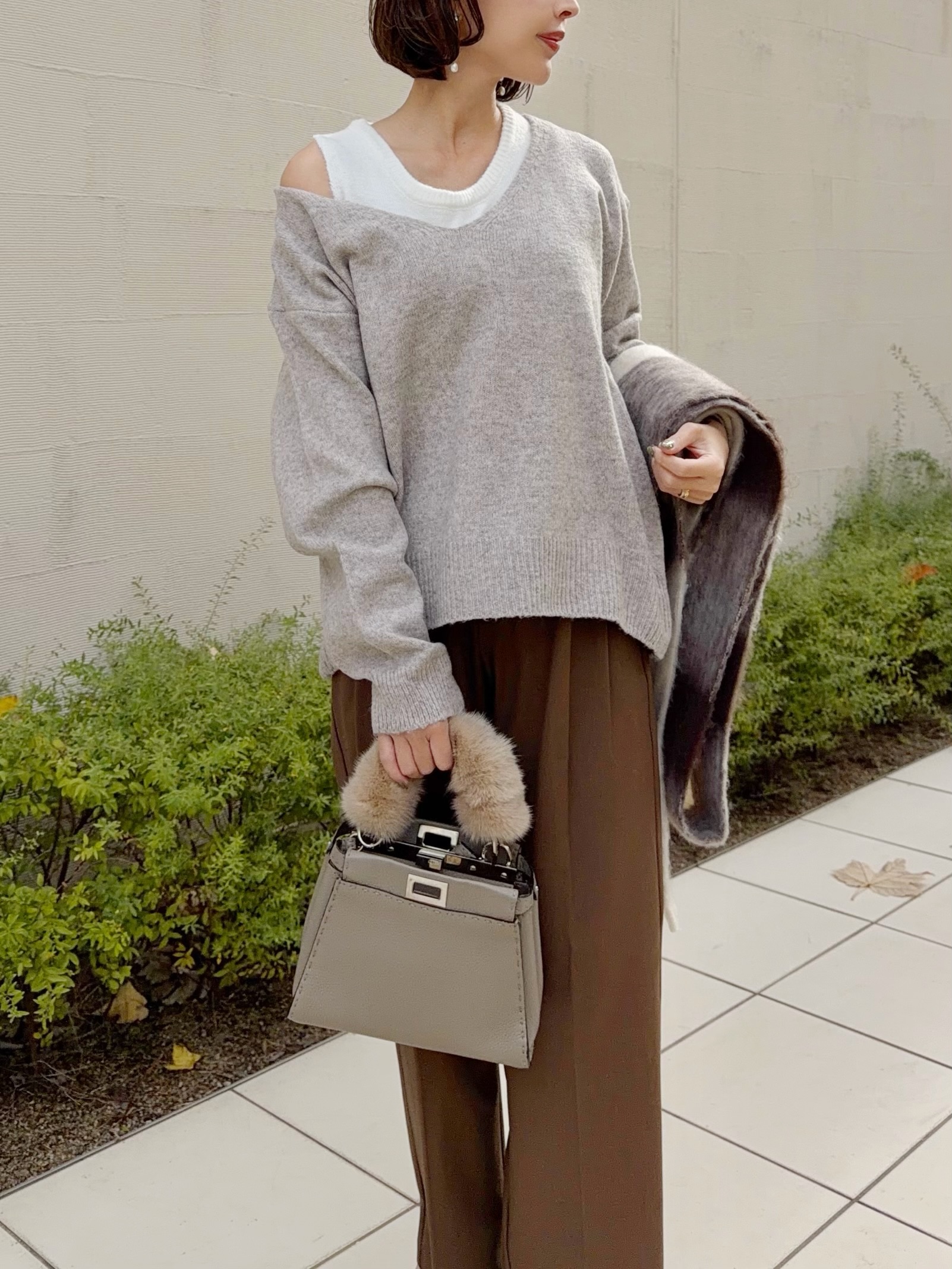 ホワイトのニットタンクとVネックのニットがセットになった1枚。ニットとタンクは個別にも着用可能な2way。シンプルながらも遊び心のあるディティールがポイントです。グレーとベージュの2カラー展開。チクチクしない快適な着心地。身体のラインをカバーするシルエットも◎ずらして肩を見せる着方もお勧めです。STAFF:158cm【サイズ】(平置き採寸/約)タンク/着丈50cm 身幅46cm Vネックニット/着丈59cm 身幅54cm 袖丈48cm【素材】ポリエステル50%,アクリル50% ■クロネコ代金後払いをご利用のお客様■商品到着後に請求書(払込用紙)が到着します。14日以内にお支払いをお願いします。全国の主要なコンビニで、請求書をレジに持っていくだけでお支払いが可能です。全国の郵便局でも同じ請求書でお支払いできます。※ご請求書が圧着ハガキタイプの場合、郵便局でのお支払いはできません。※弊社の銀行口座宛にお振込頂くものでは御座いません。ご注意下さい。