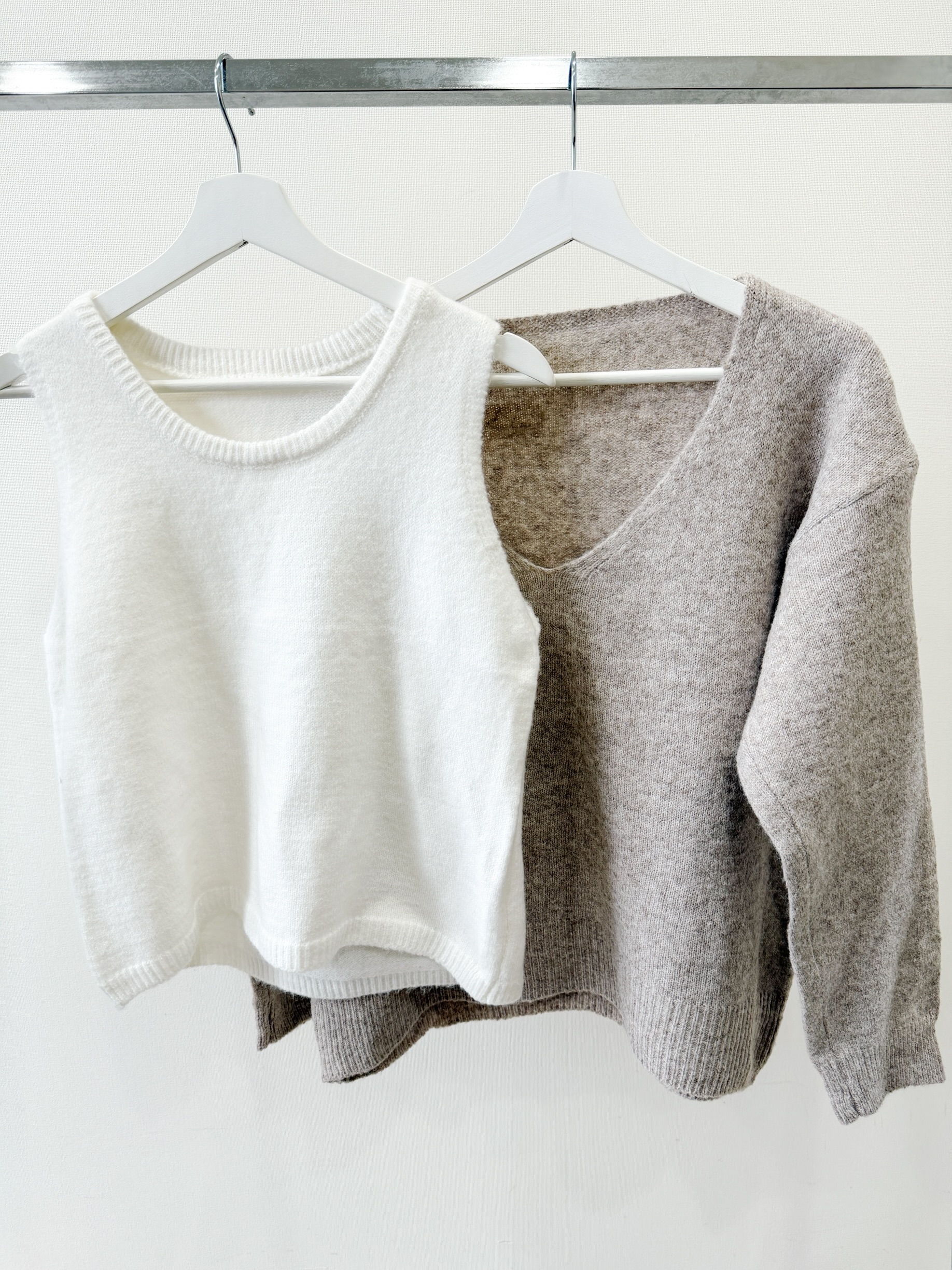 ホワイトのニットタンクとVネックのニットがセットになった1枚。