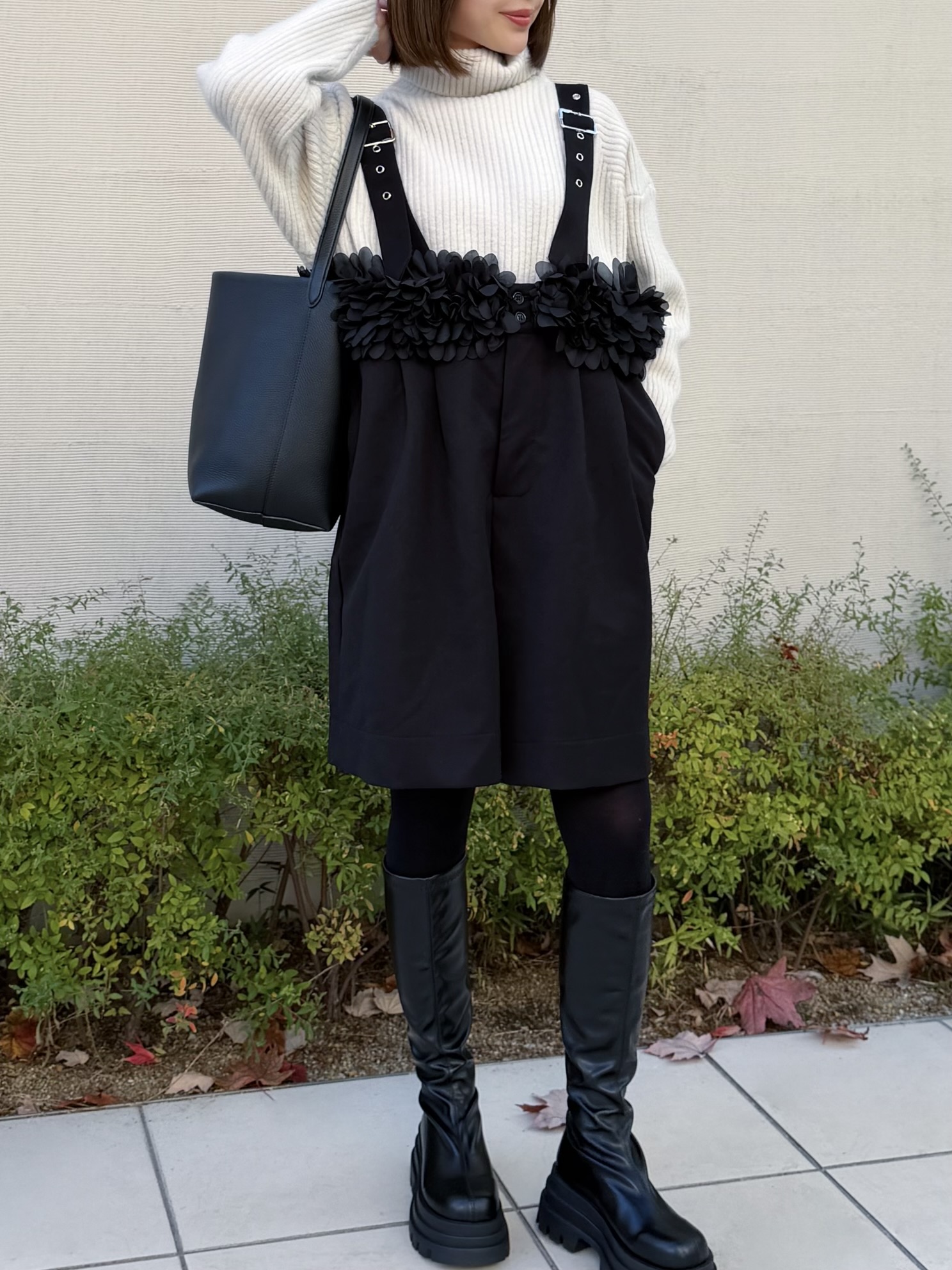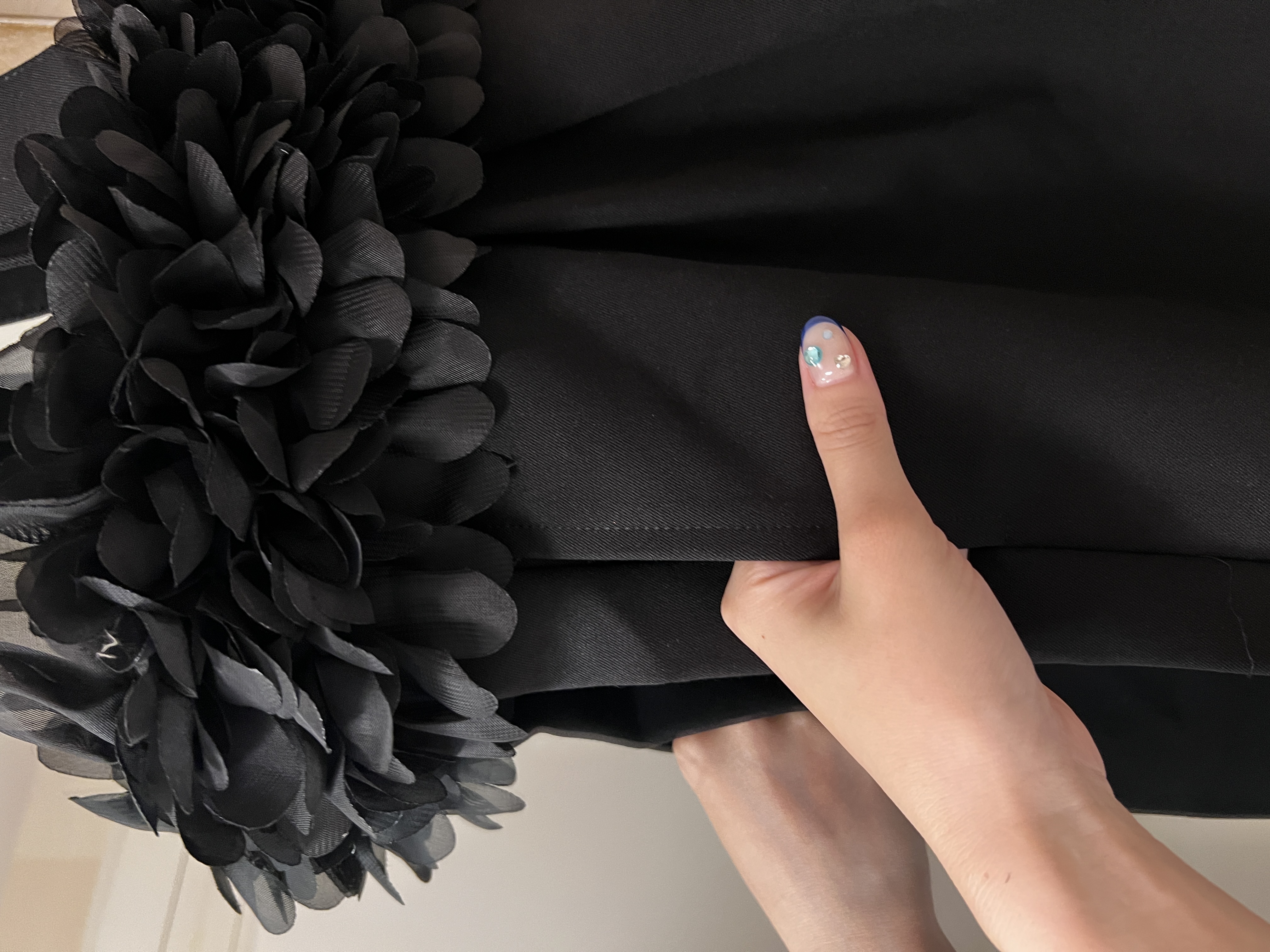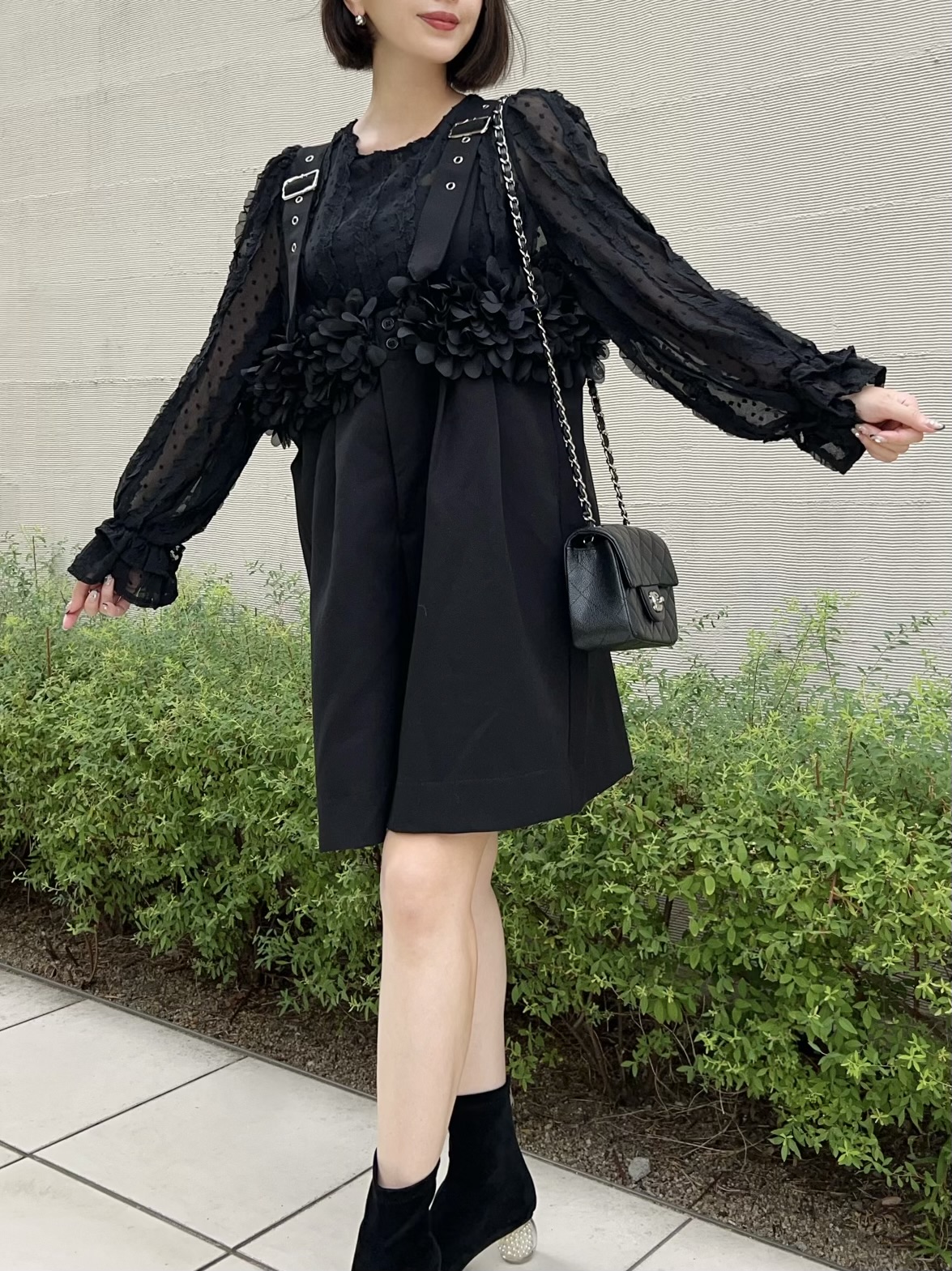 ブラックのフラワーで甘さをプラス♪大人でもトライしやすいひざ丈が上品です。