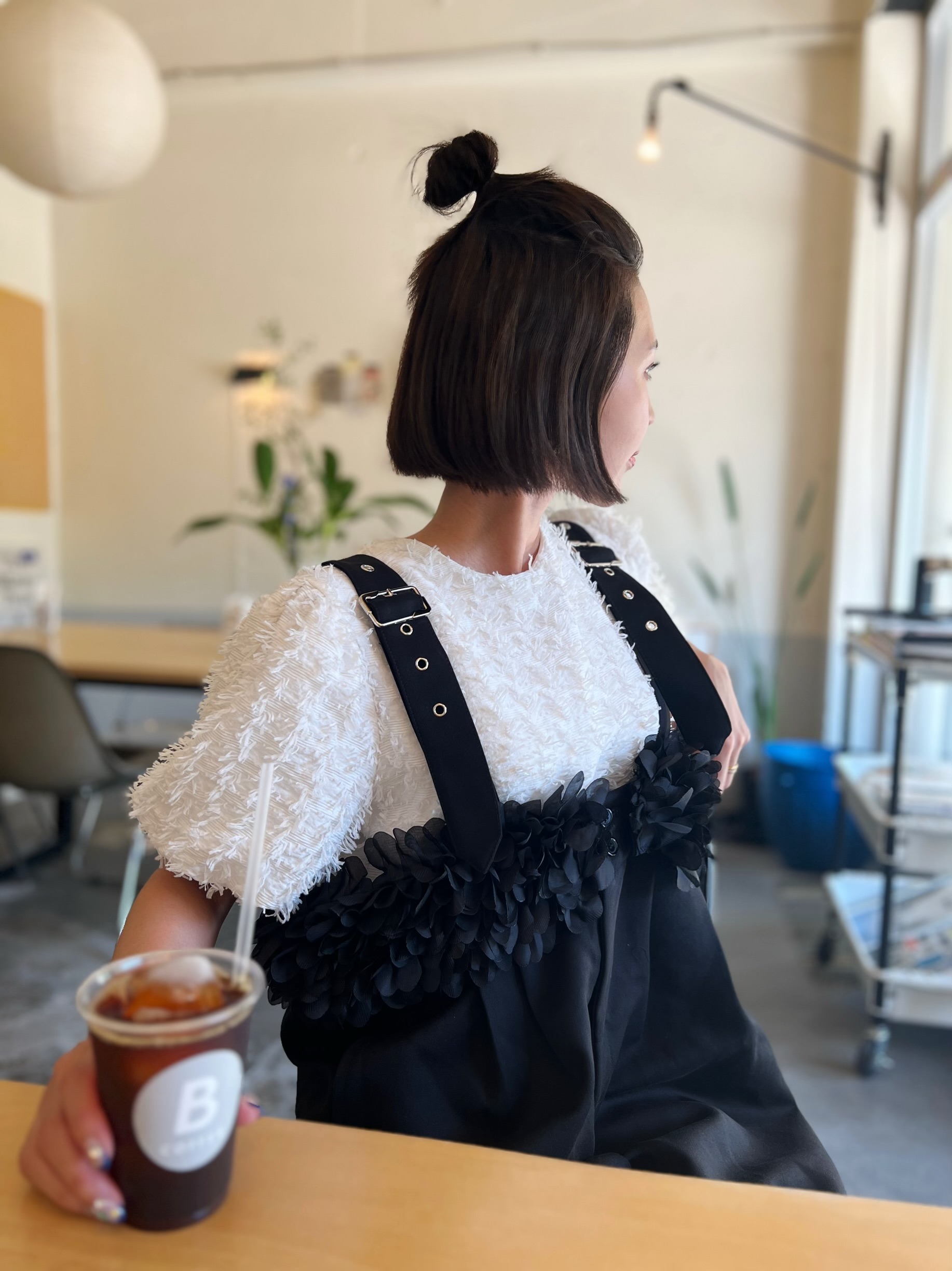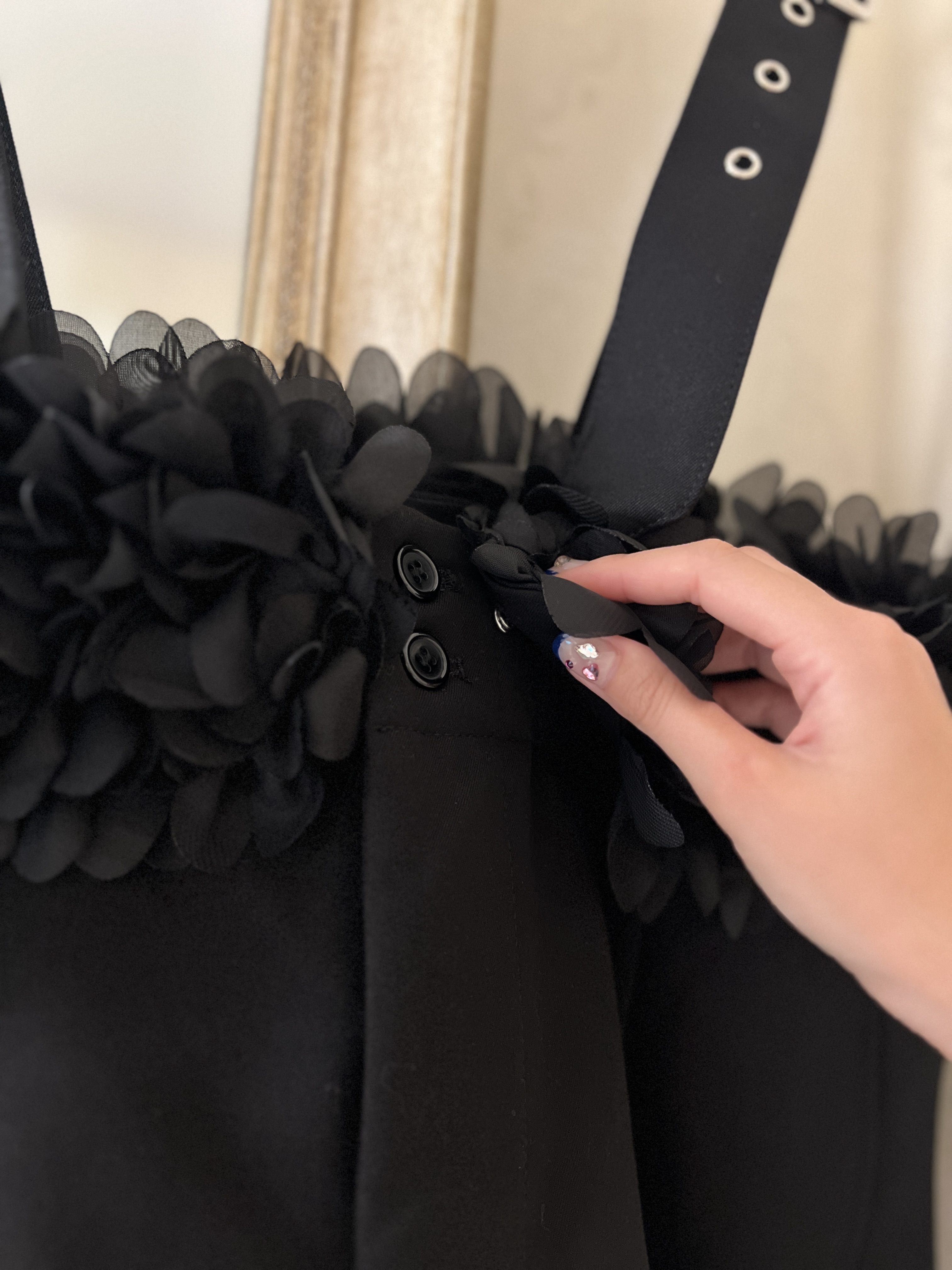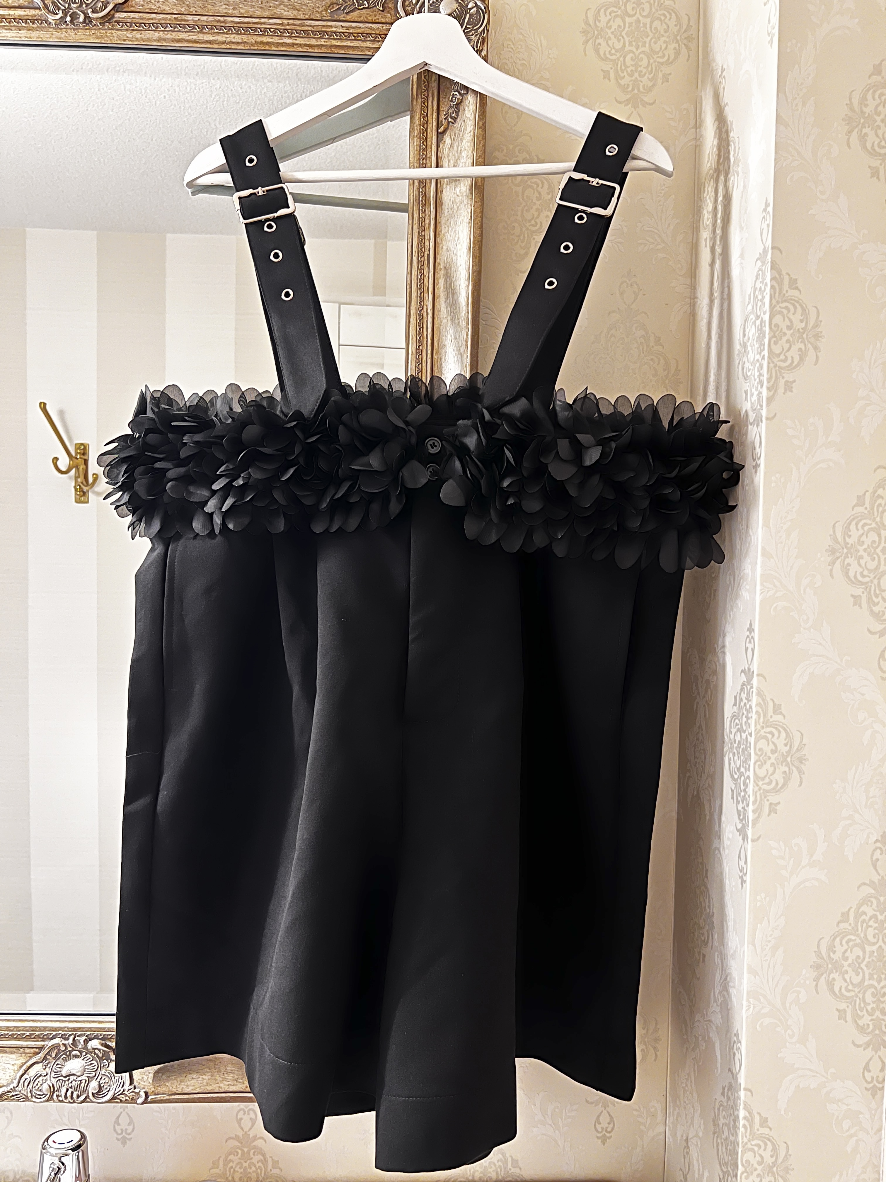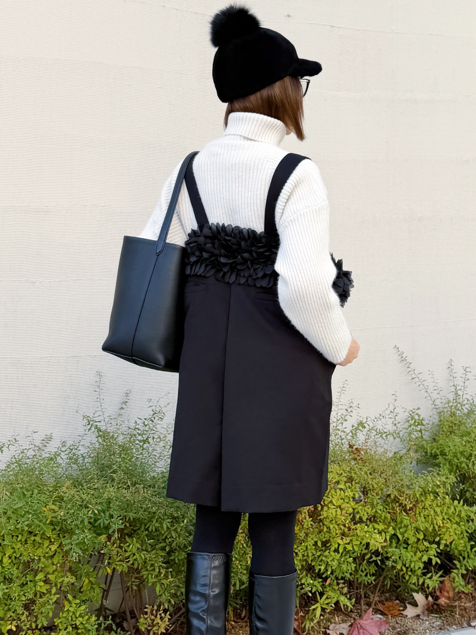 ブラックのフラワーで甘さをプラス♪大人でもトライしやすいひざ丈が上品です。