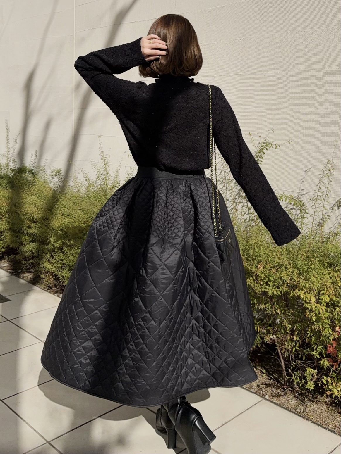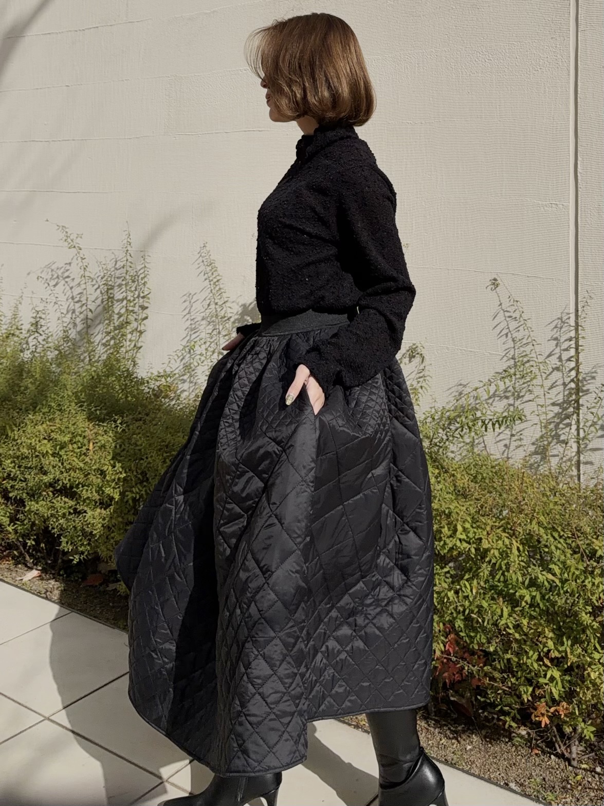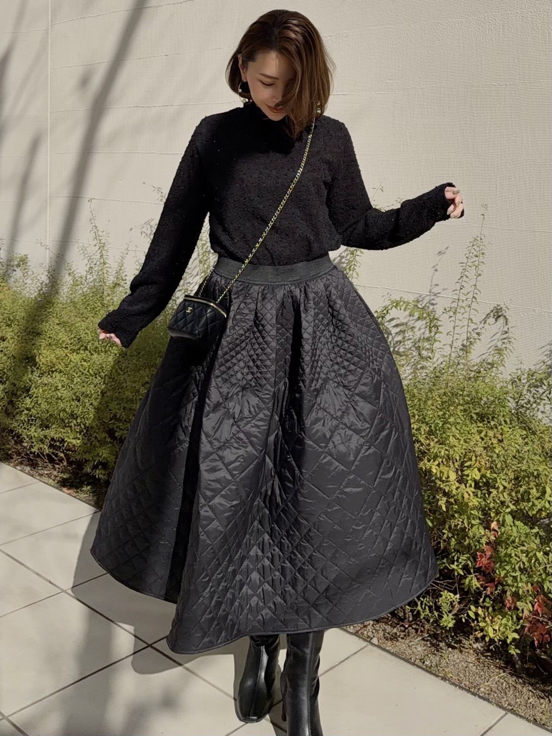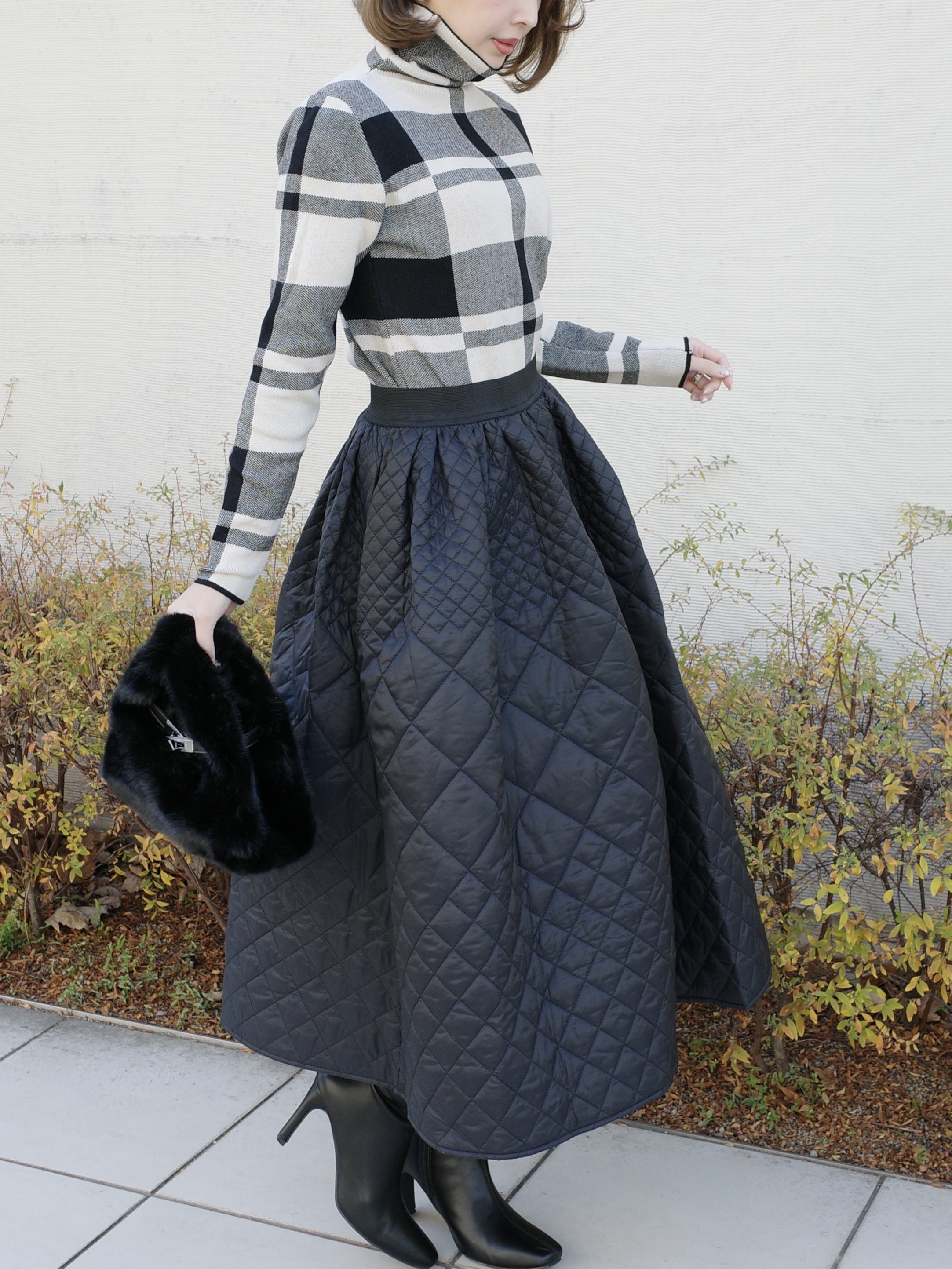 温かみのあるキルティング素材が冬コーデに華を添えます。