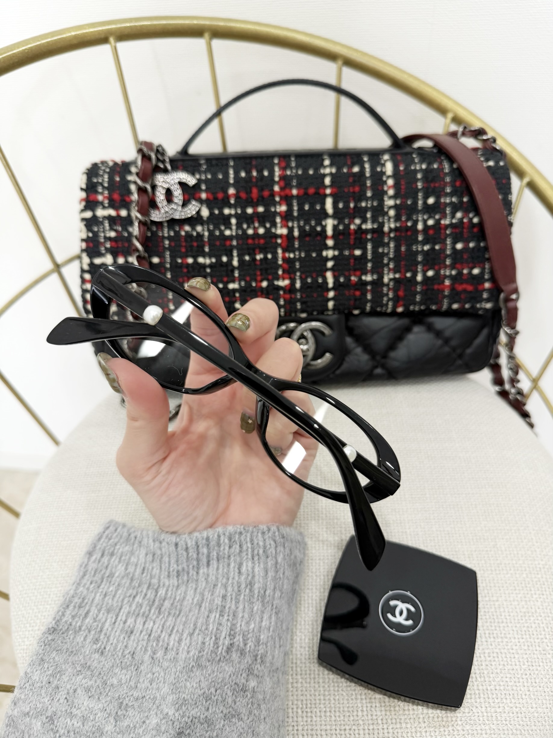 サイドにちょこんとあしらわれたパールがポイントのだてメガネ。