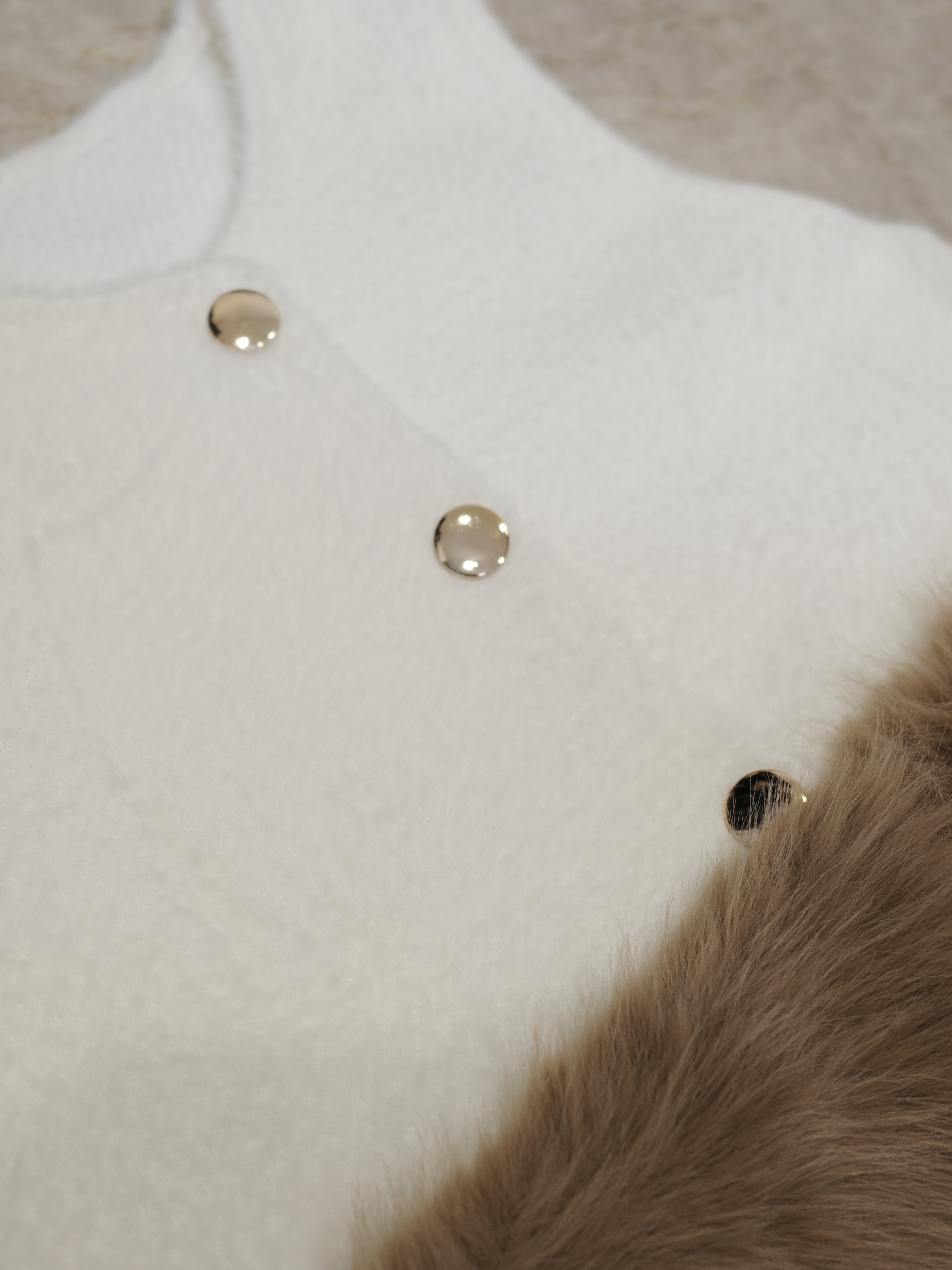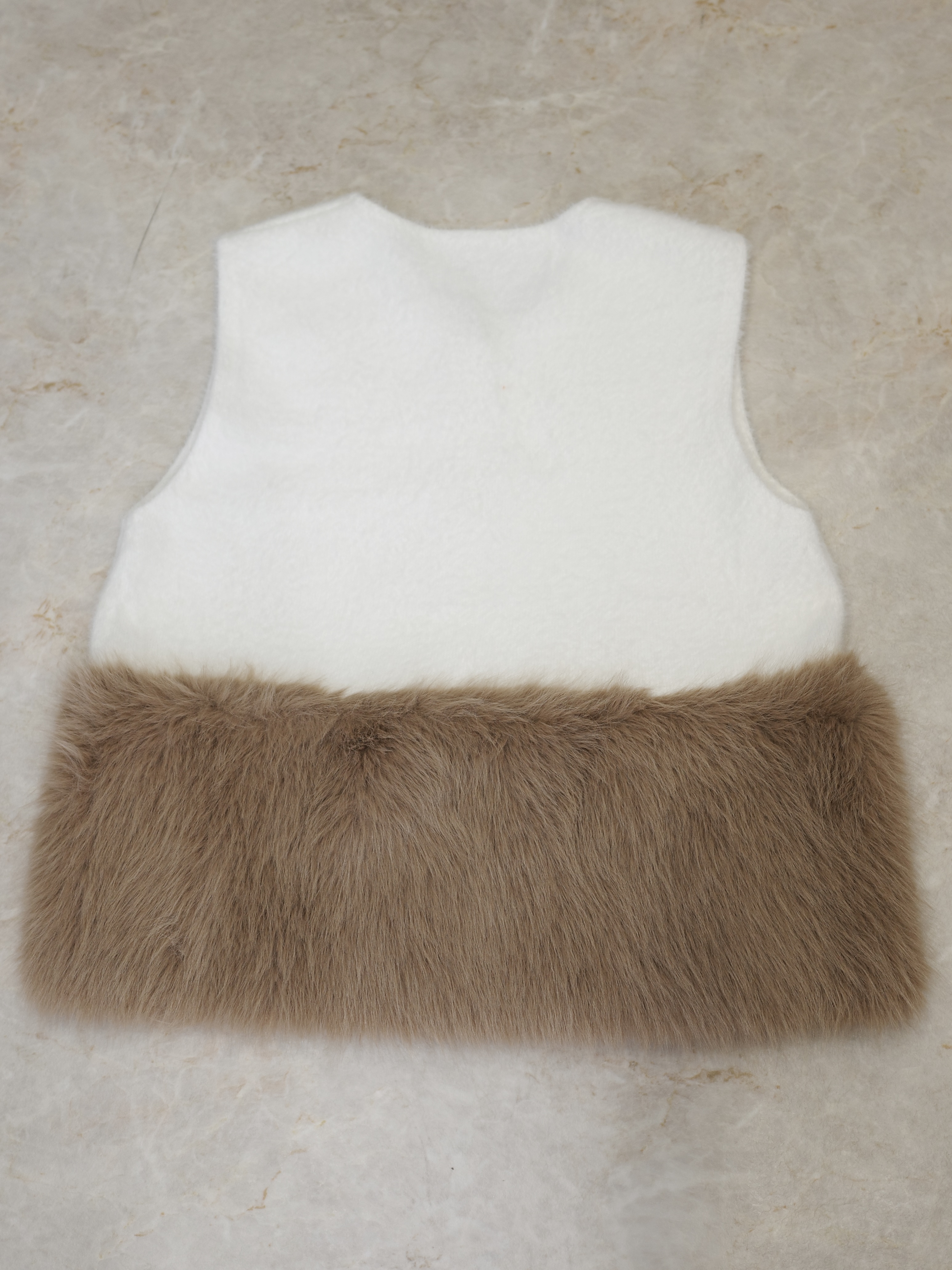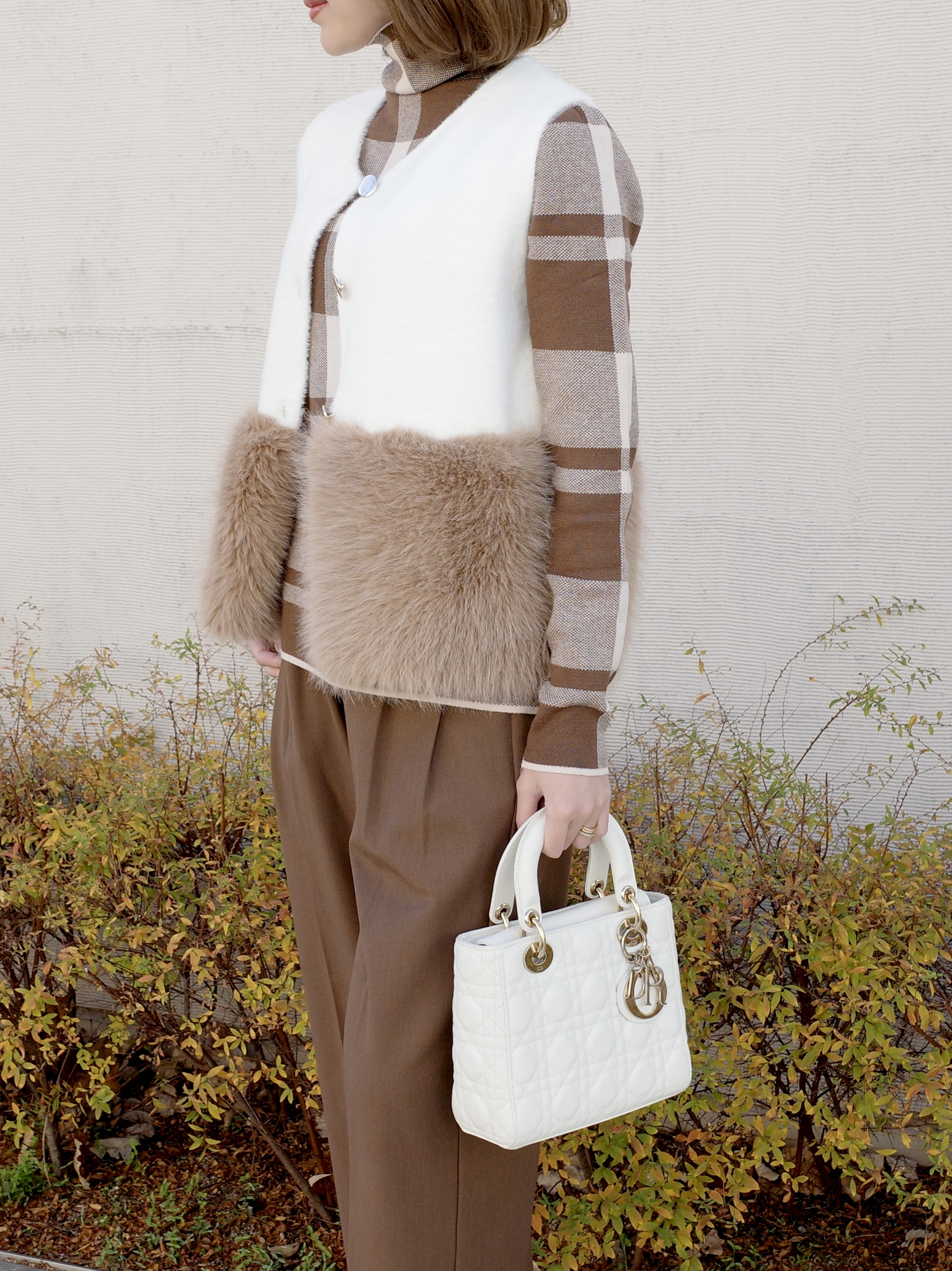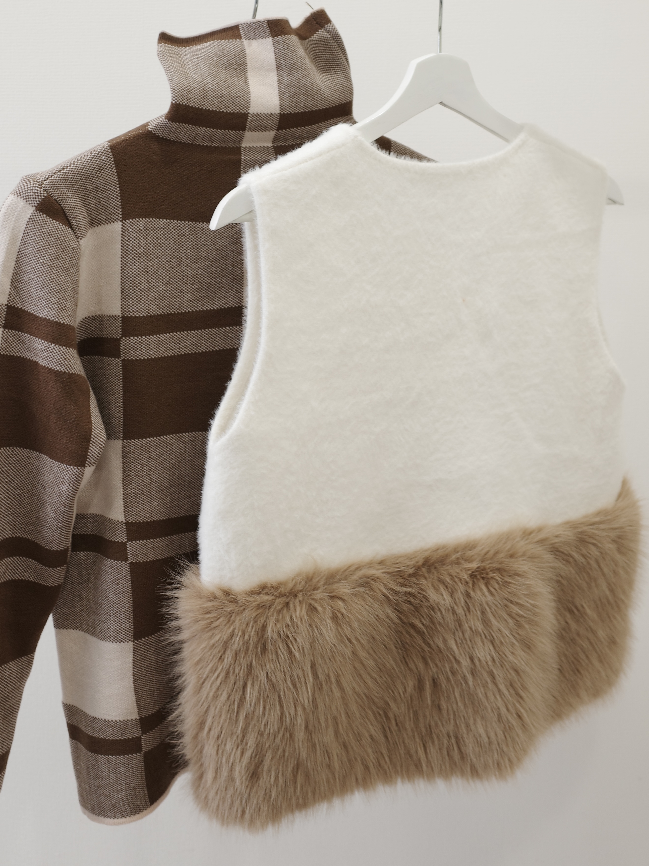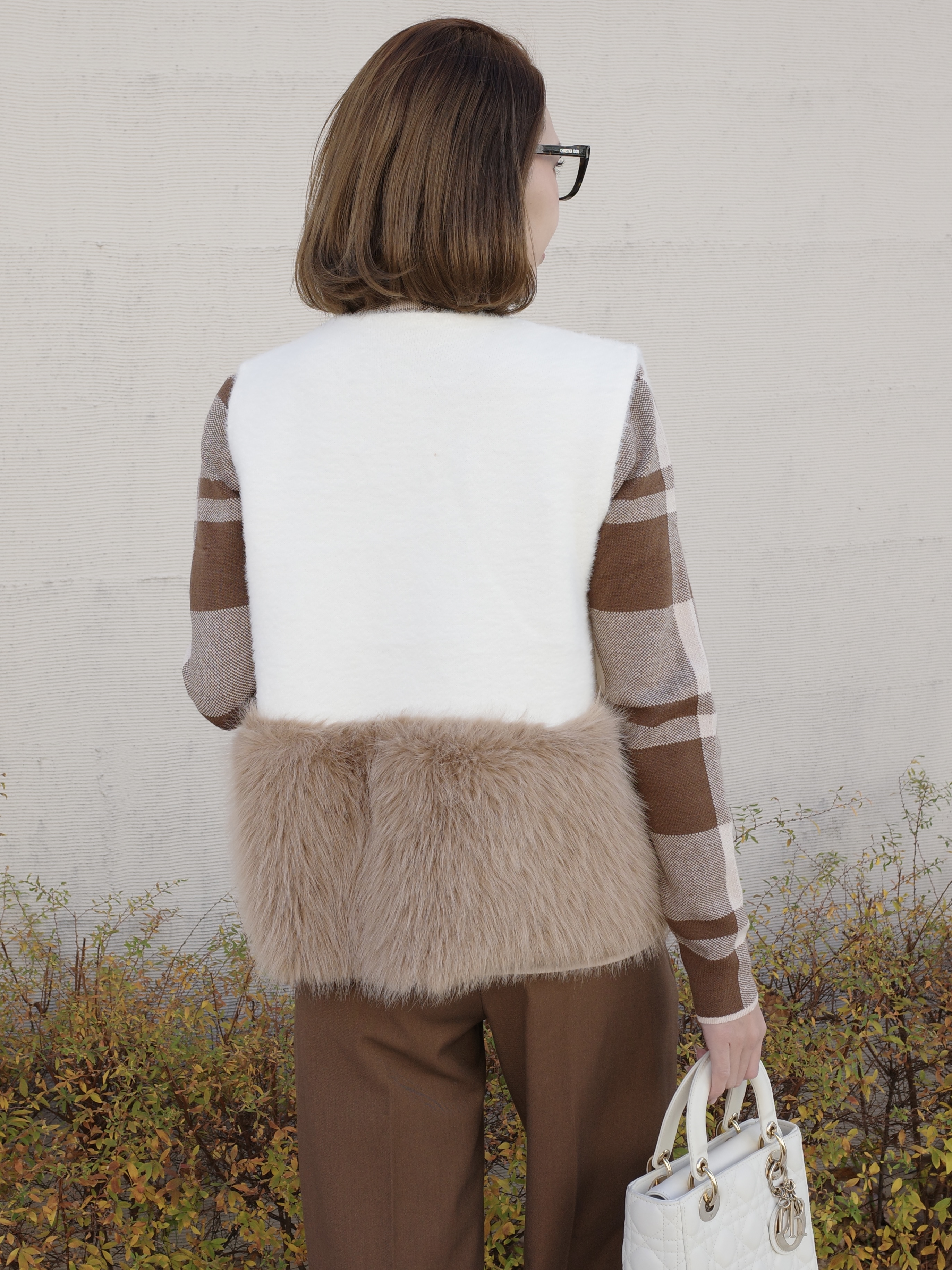 裾のファー切替が印象的なジレ。ニットやブラウスにレイヤードさせて大人可愛いスタイリングに。着ぶくれしないすっきりとしたシルエットでアウターを上から羽織ってもモタつきません。シンプルなスタイリングにスパイスをプラスしてくれるアイテム♡ホワイト×ベージュの配色がフェミニンで柔らかな雰囲気。春先も活躍します。STAFF:158cm/S着用【サイズ】(平置き採寸)(S)着丈56cm,身幅47cm(M)着丈58cm,身幅49cm【素材】ポリエステル50%,アクリル50%■クロネコ代金後払いをご利用のお客様■商品到着後に請求書(払込用紙)が到着します。14日以内にお支払いをお願いします。全国の主要なコンビニで、請求書をレジに持っていくだけでお支払いが可能です。全国の郵便局でも同じ請求書でお支払いできます。※ご請求書が圧着ハガキタイプの場合、郵便局でのお支払いはできません。※弊社の銀行口座宛にお振込頂くものでは御座いません。ご注意下さい。