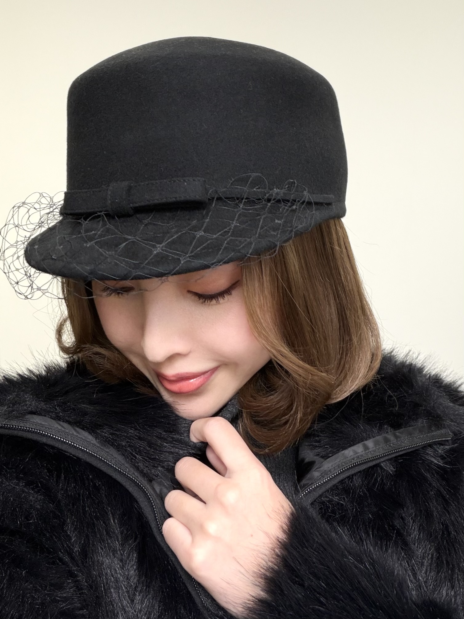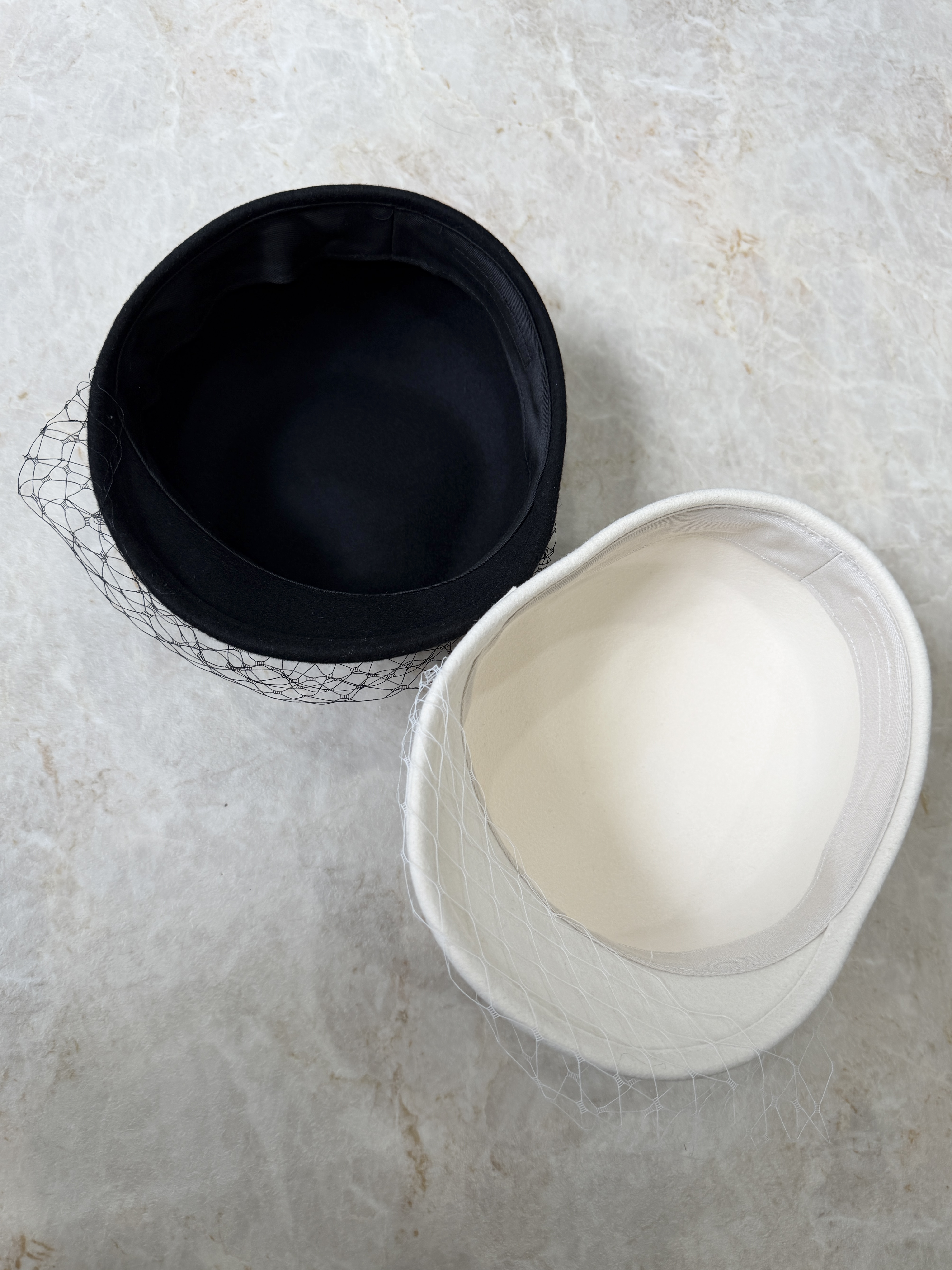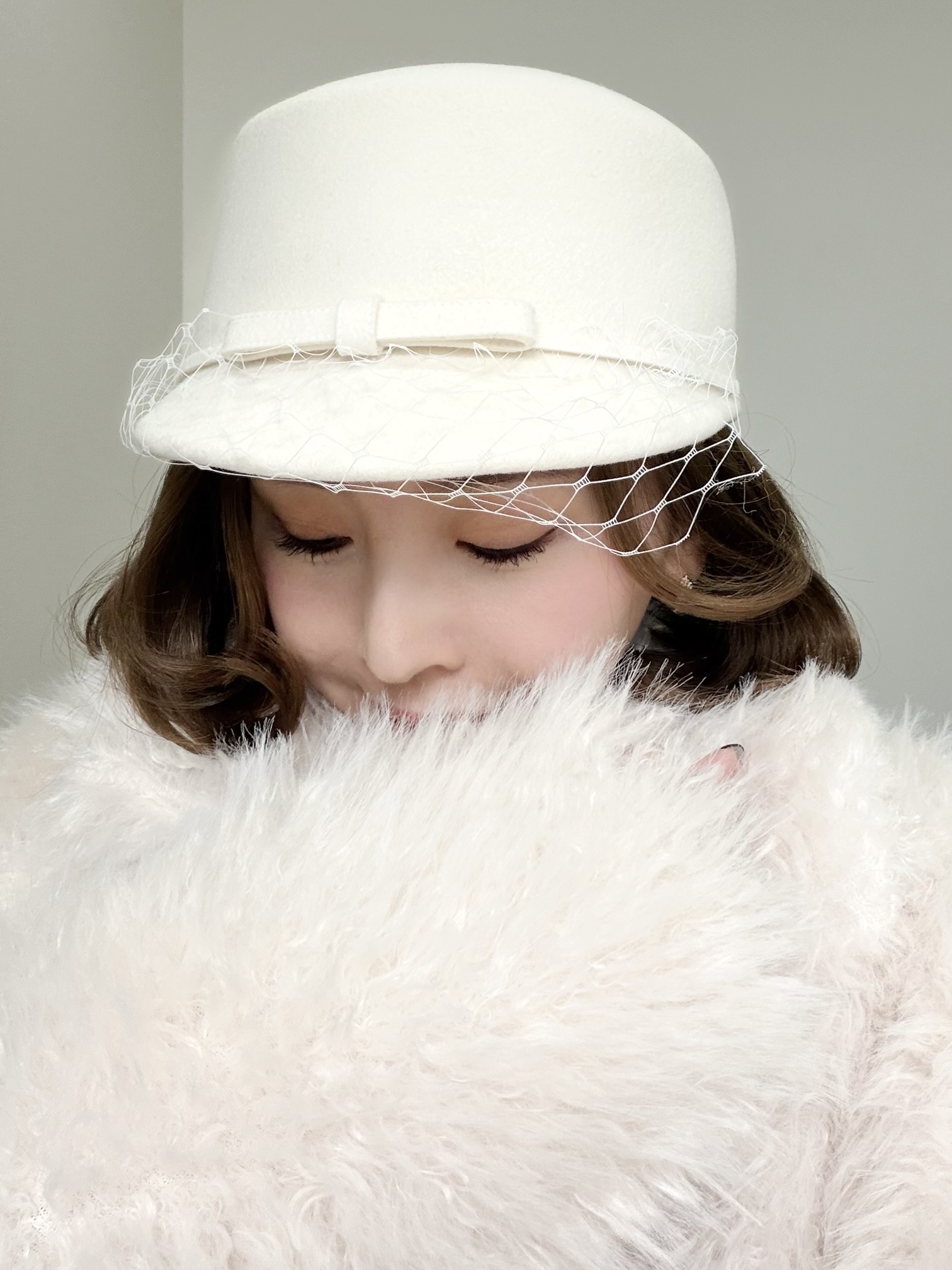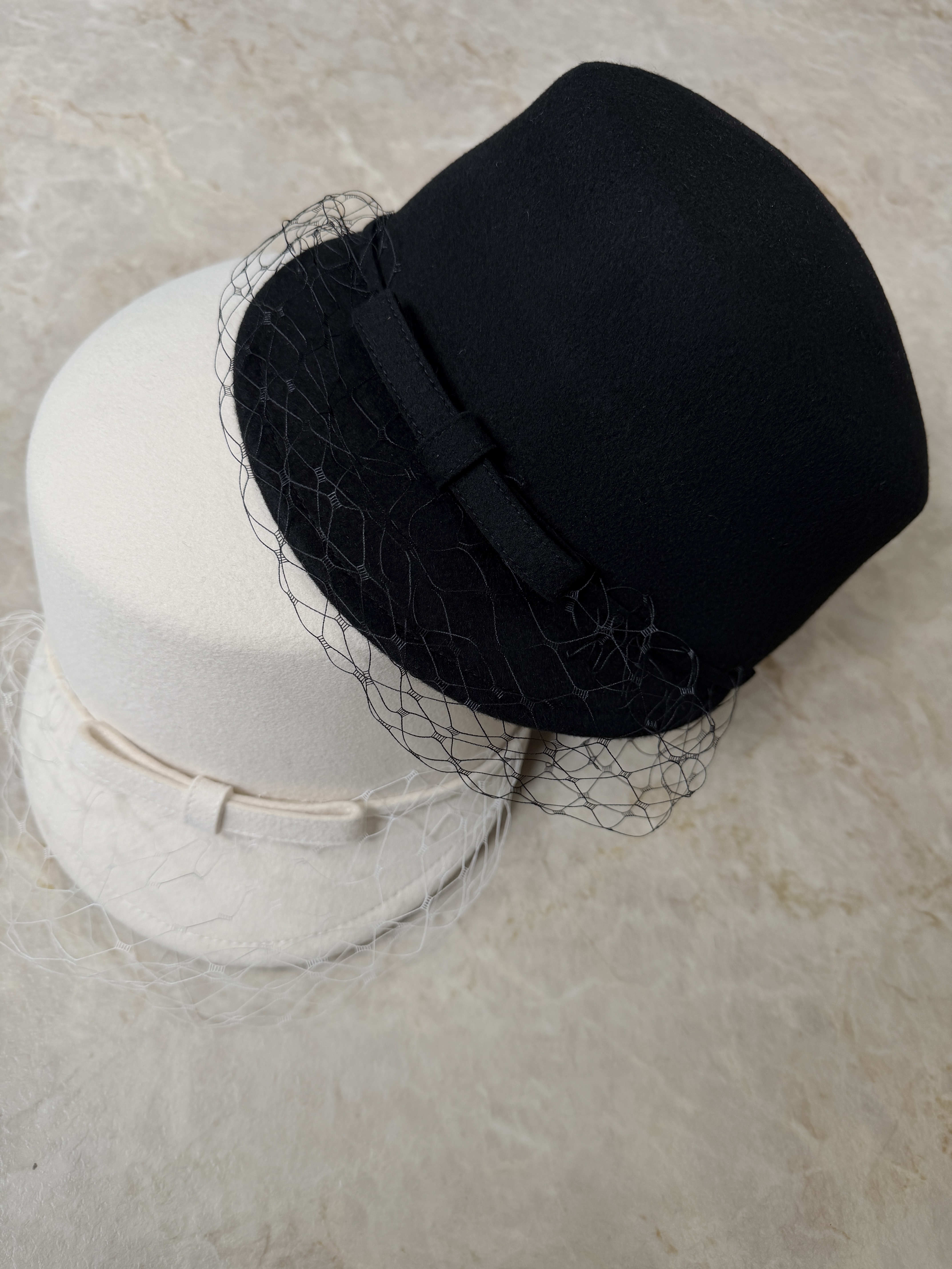 女心くすぐるチュールヴェール付きキャスケット。ブラックとホワイトの2カラー。シンプルなスタイリングのワンポイントにぴったり♡小顔効果も叶える一押しの帽子です。【SIZE】頭周りサイズ約58cm ブリム6cm 高さ12cm【素材】ウール100%