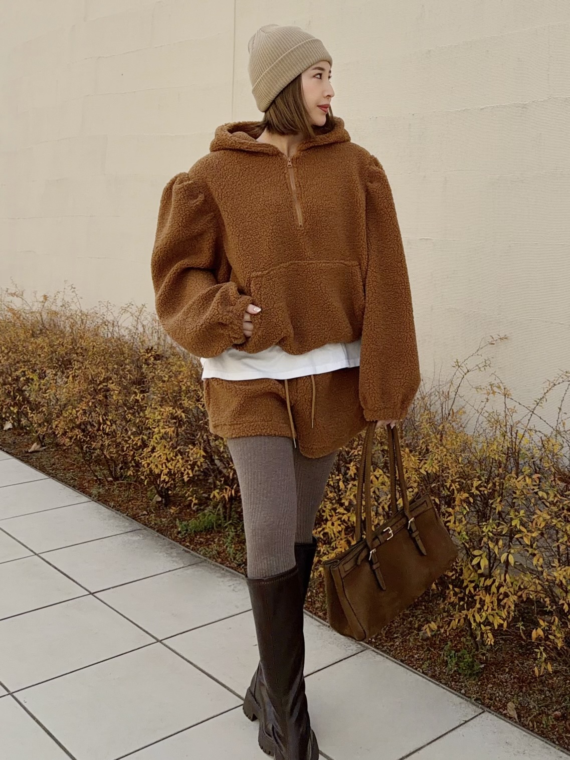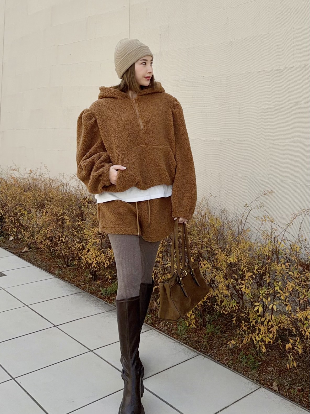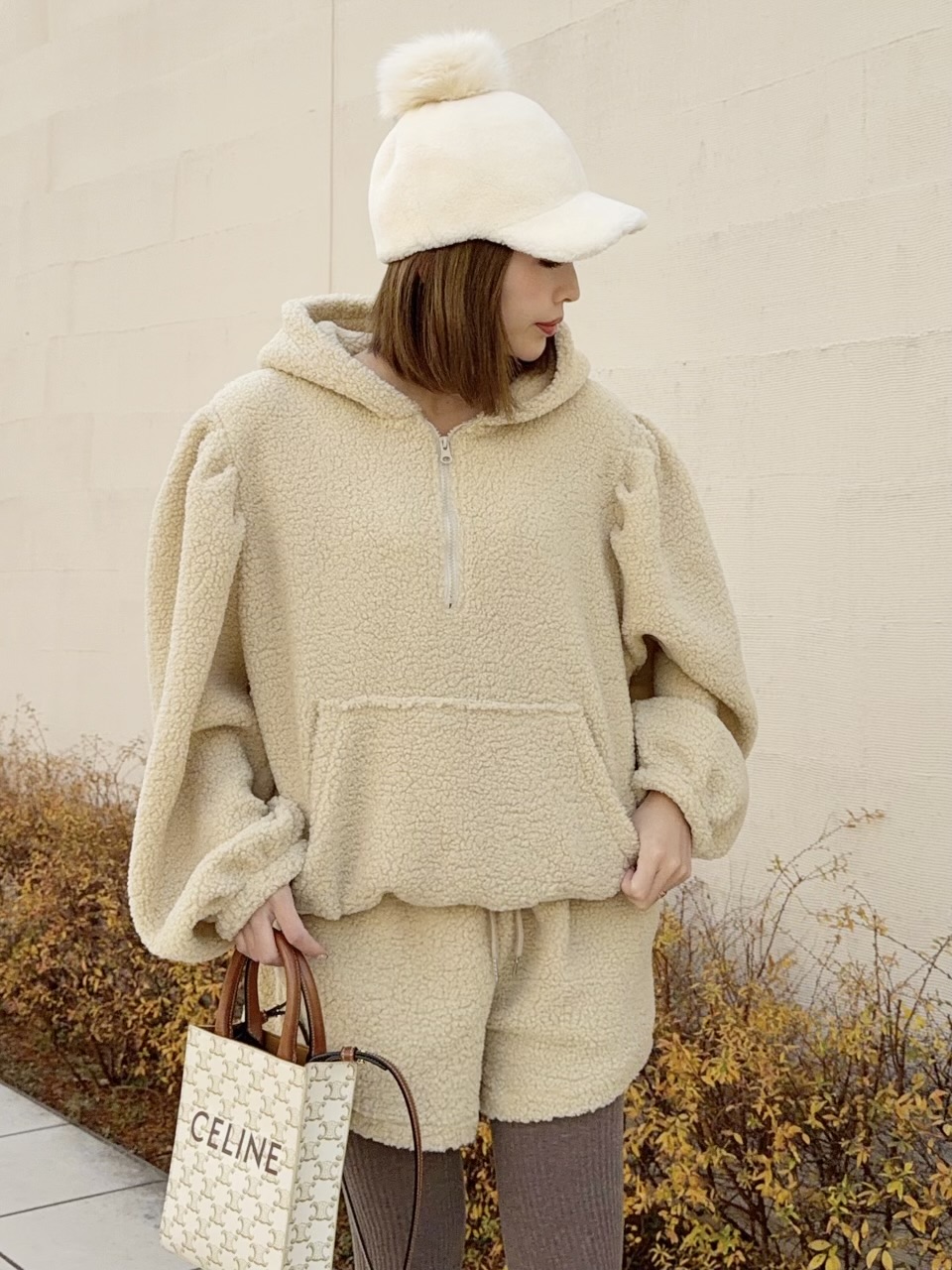 冬にぴったり♡あったかボア素材のセットアップ。
