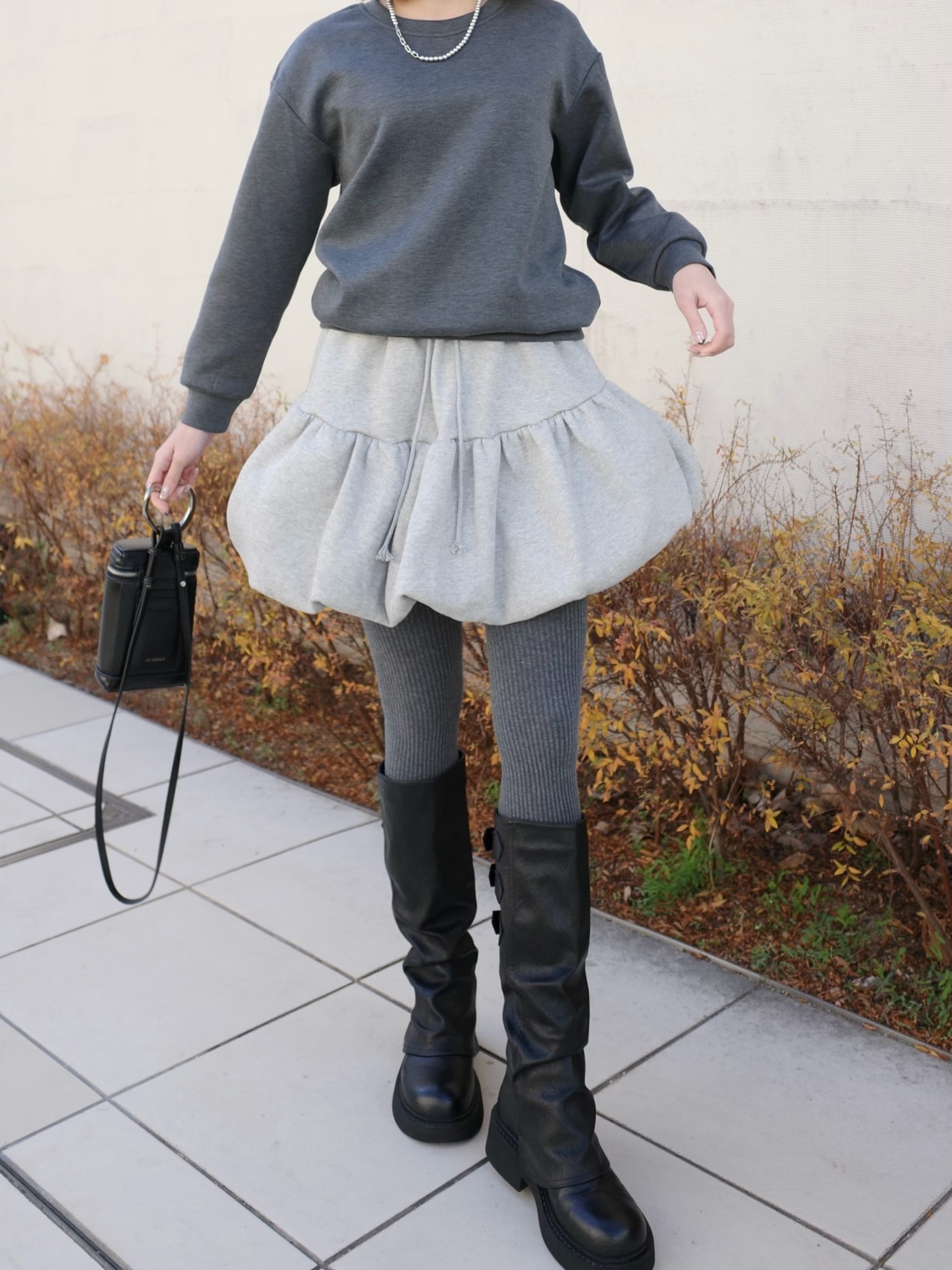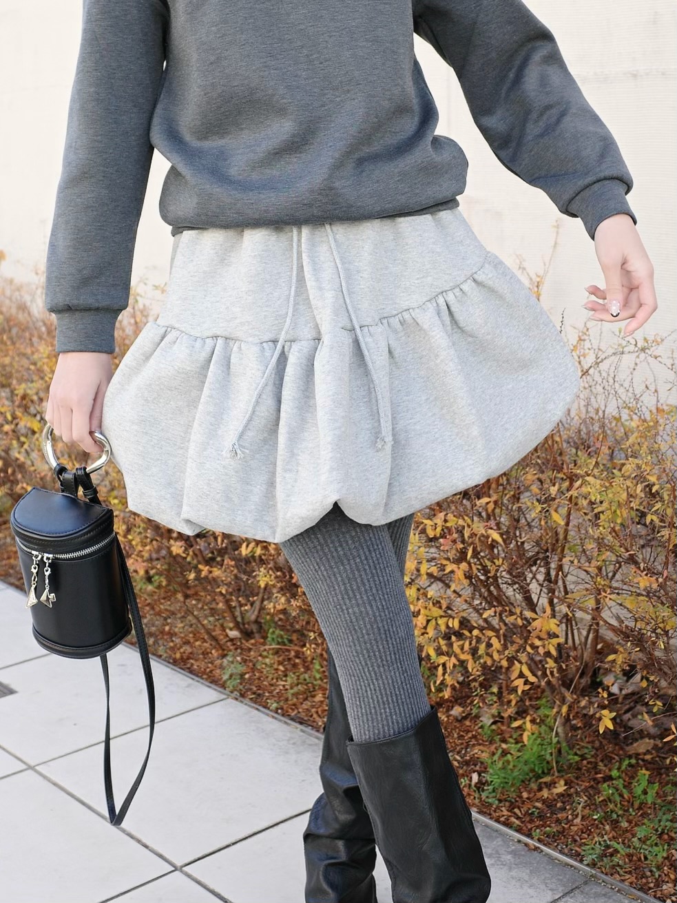 裾のバルーンがポイントの360°大人可愛くキマるパンプキンスカート。