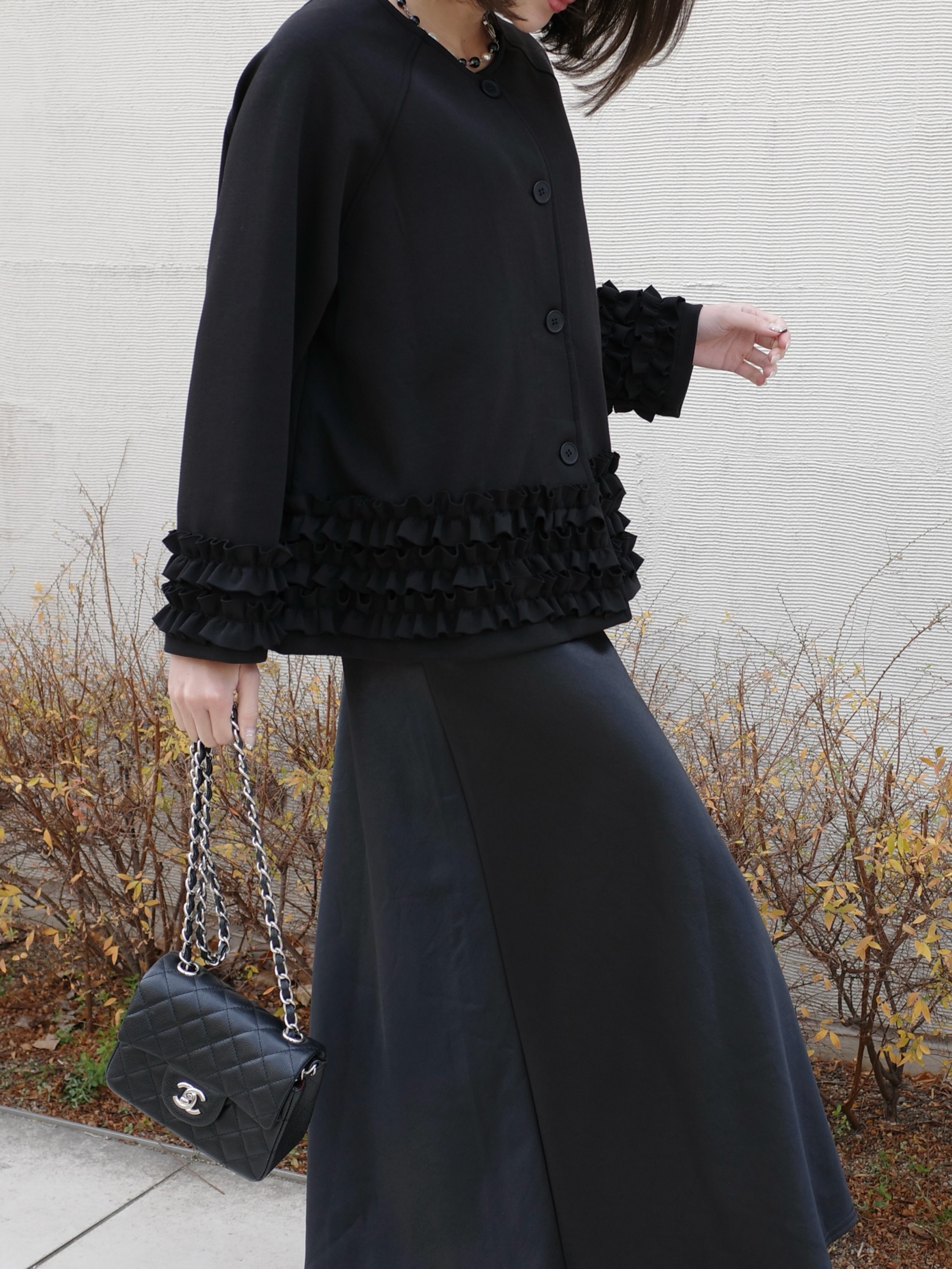 甘くなり過ぎないフリルで大人でもトライしやすい1枚。