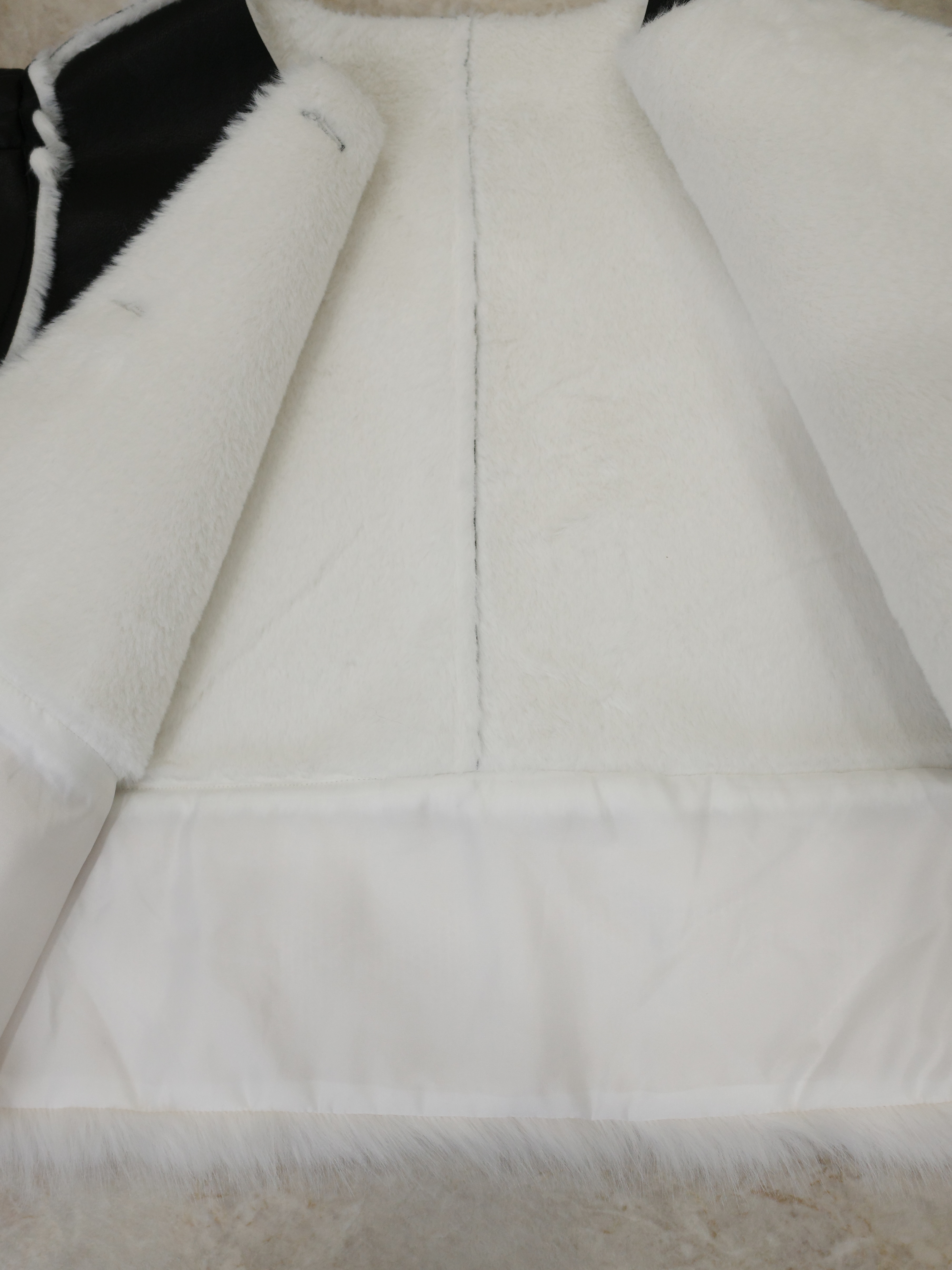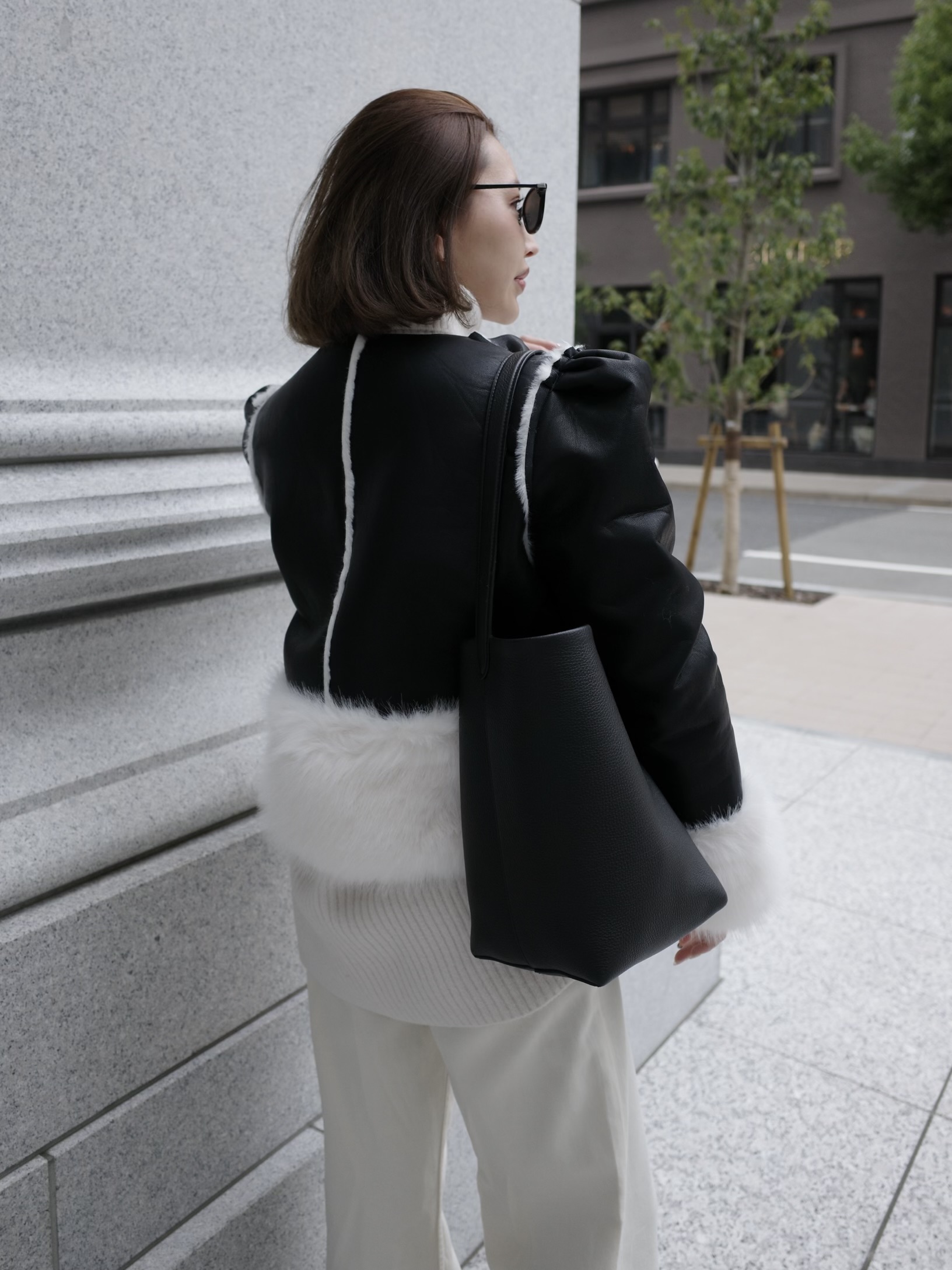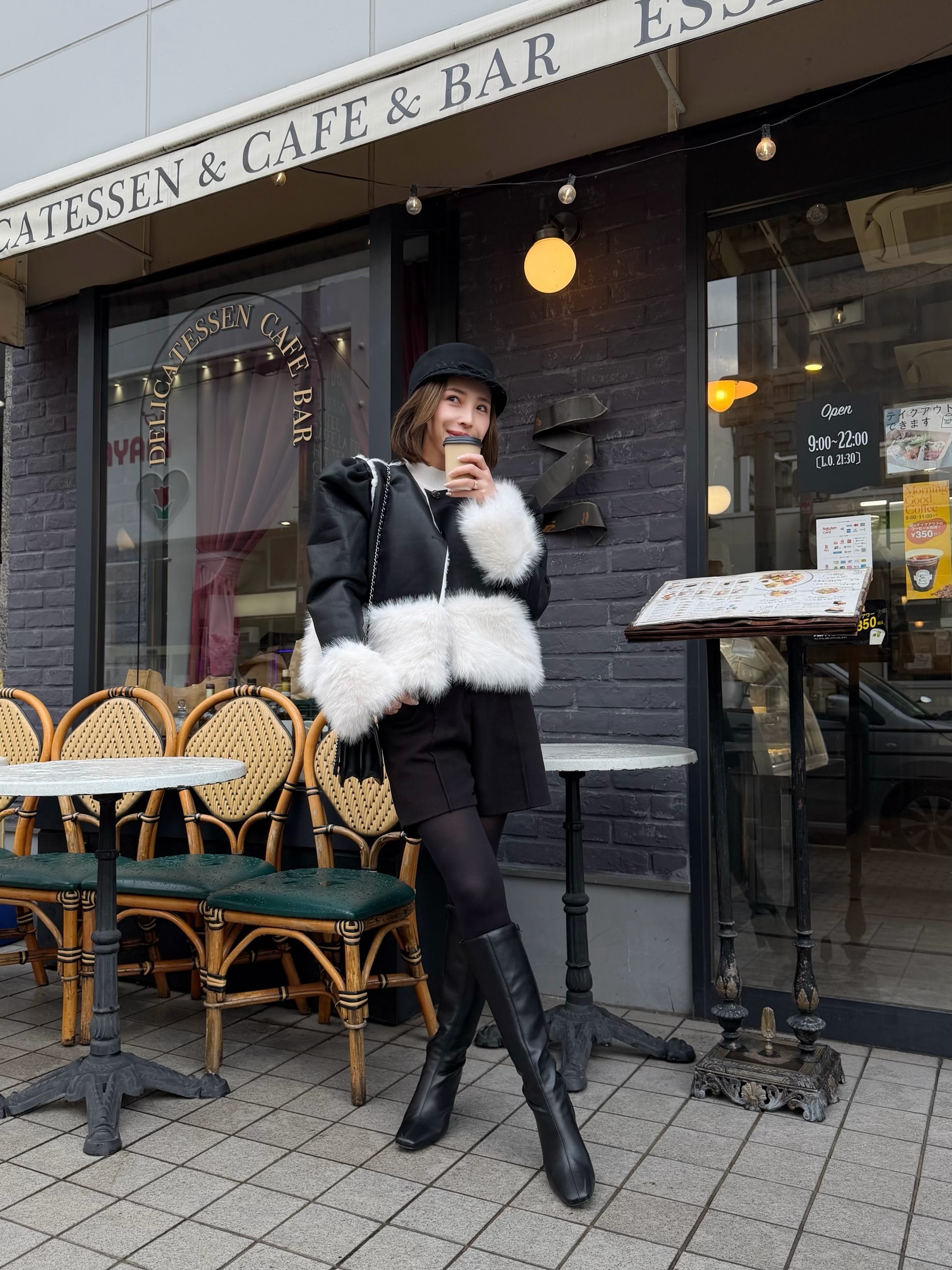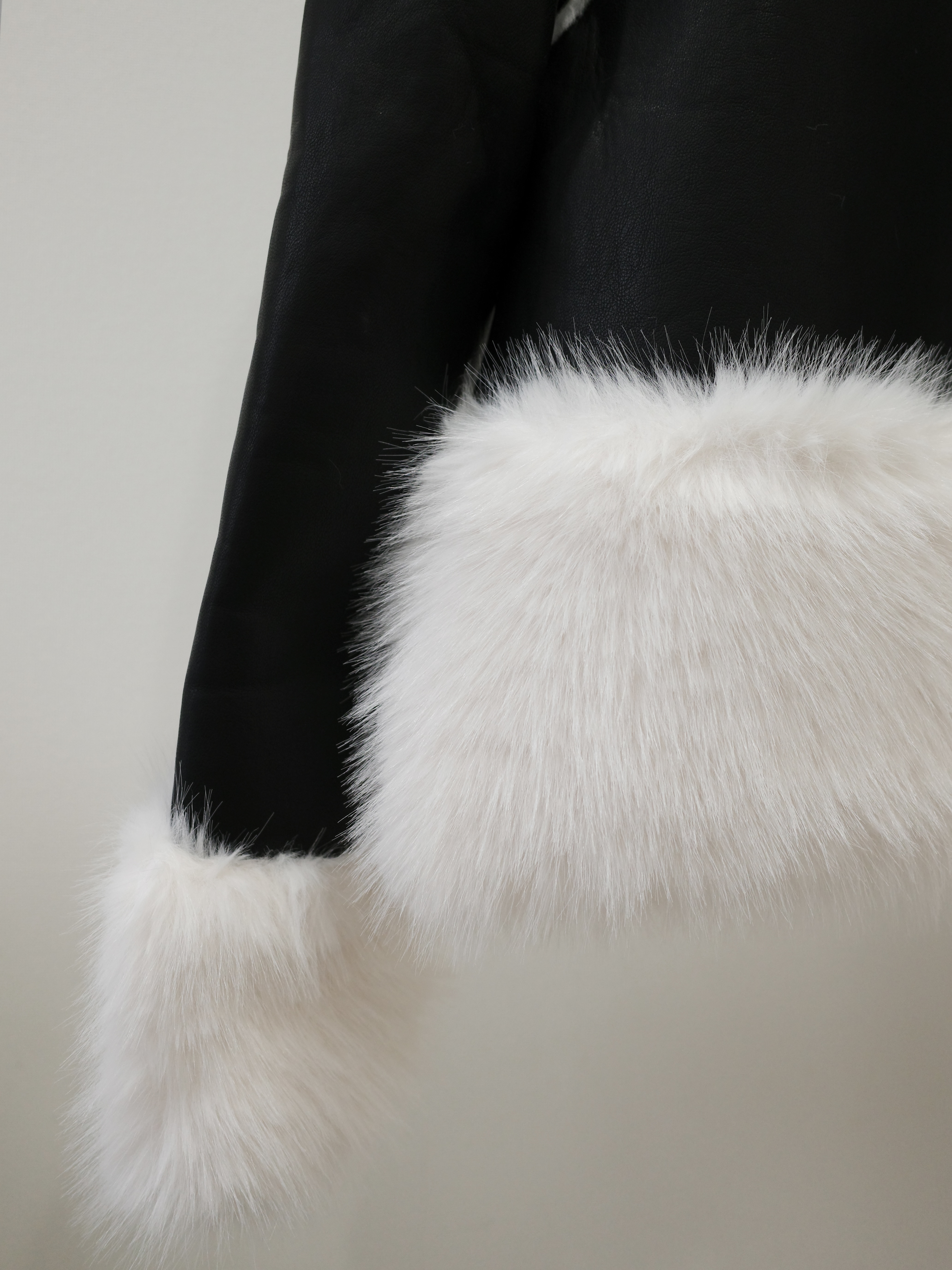 袖口と裾のボリューミーなエコファーがリッチな雰囲気。