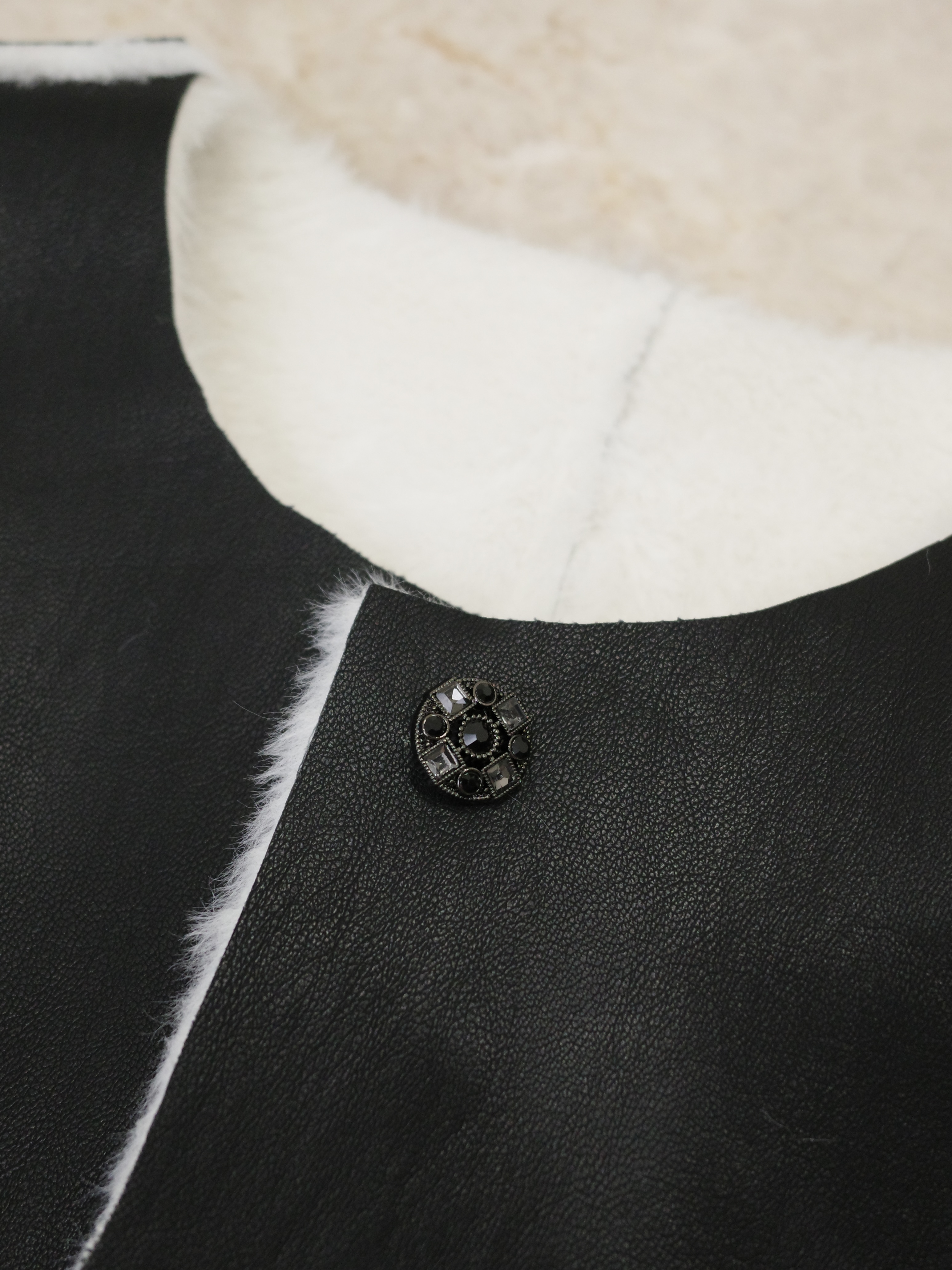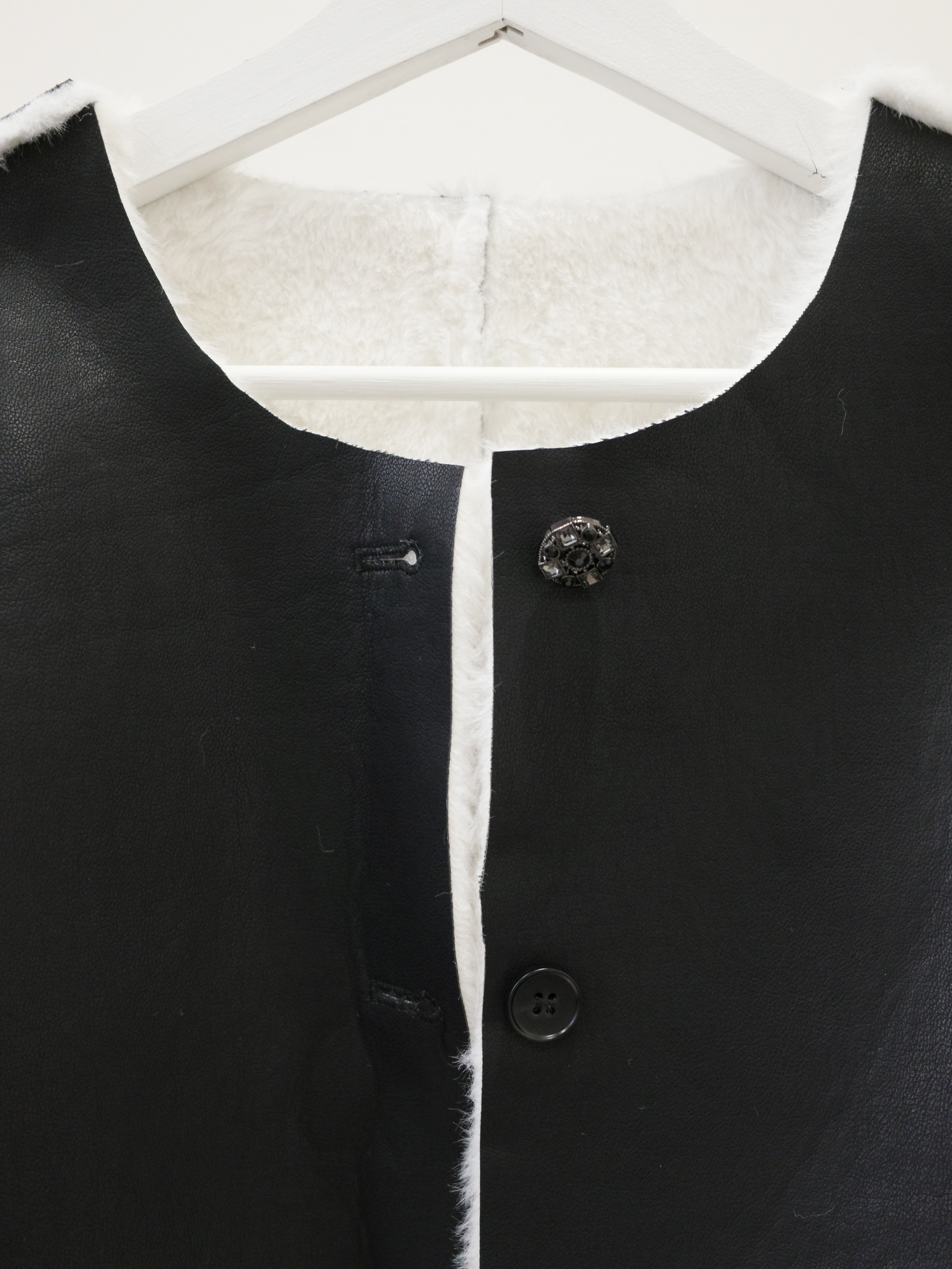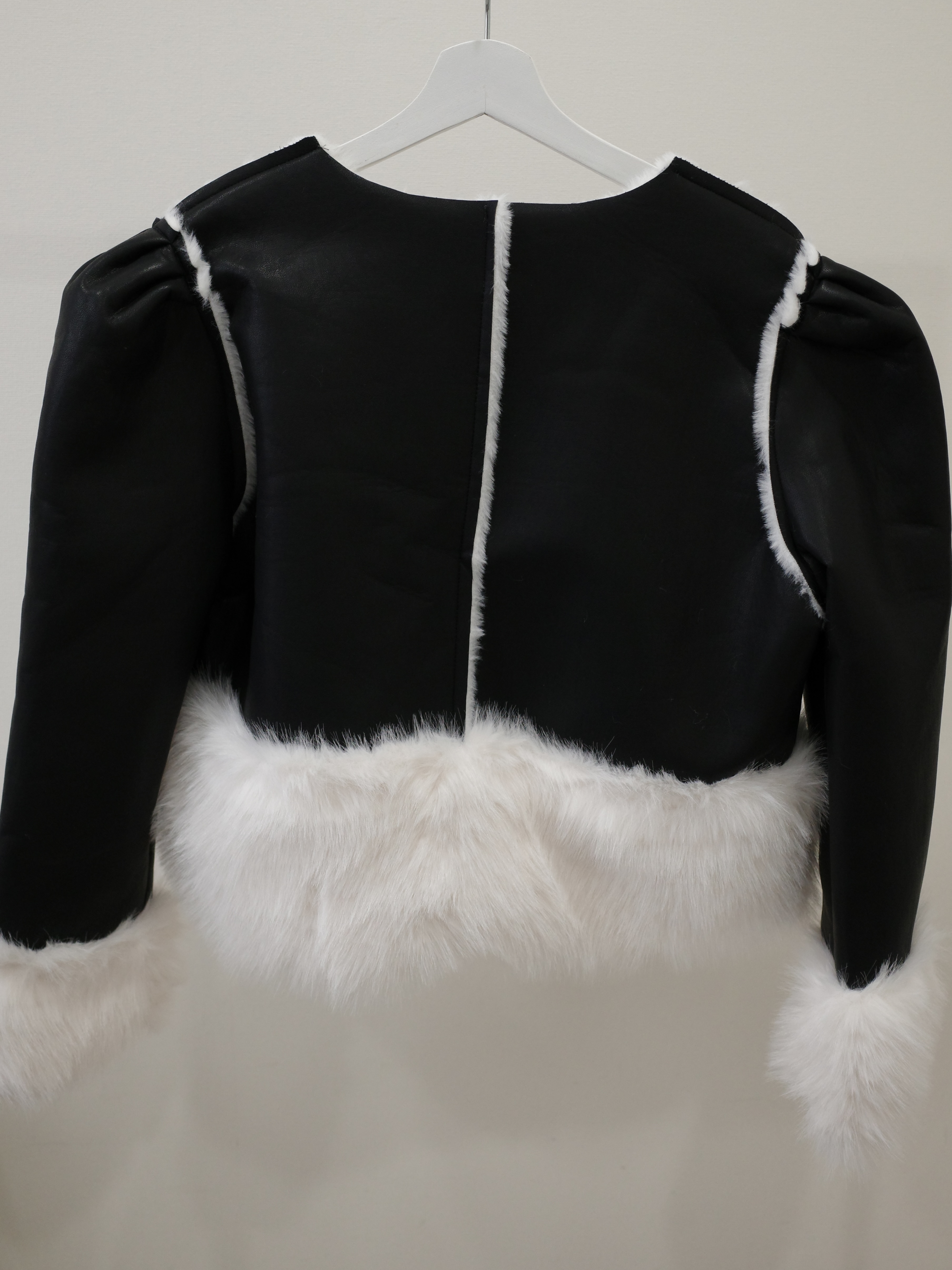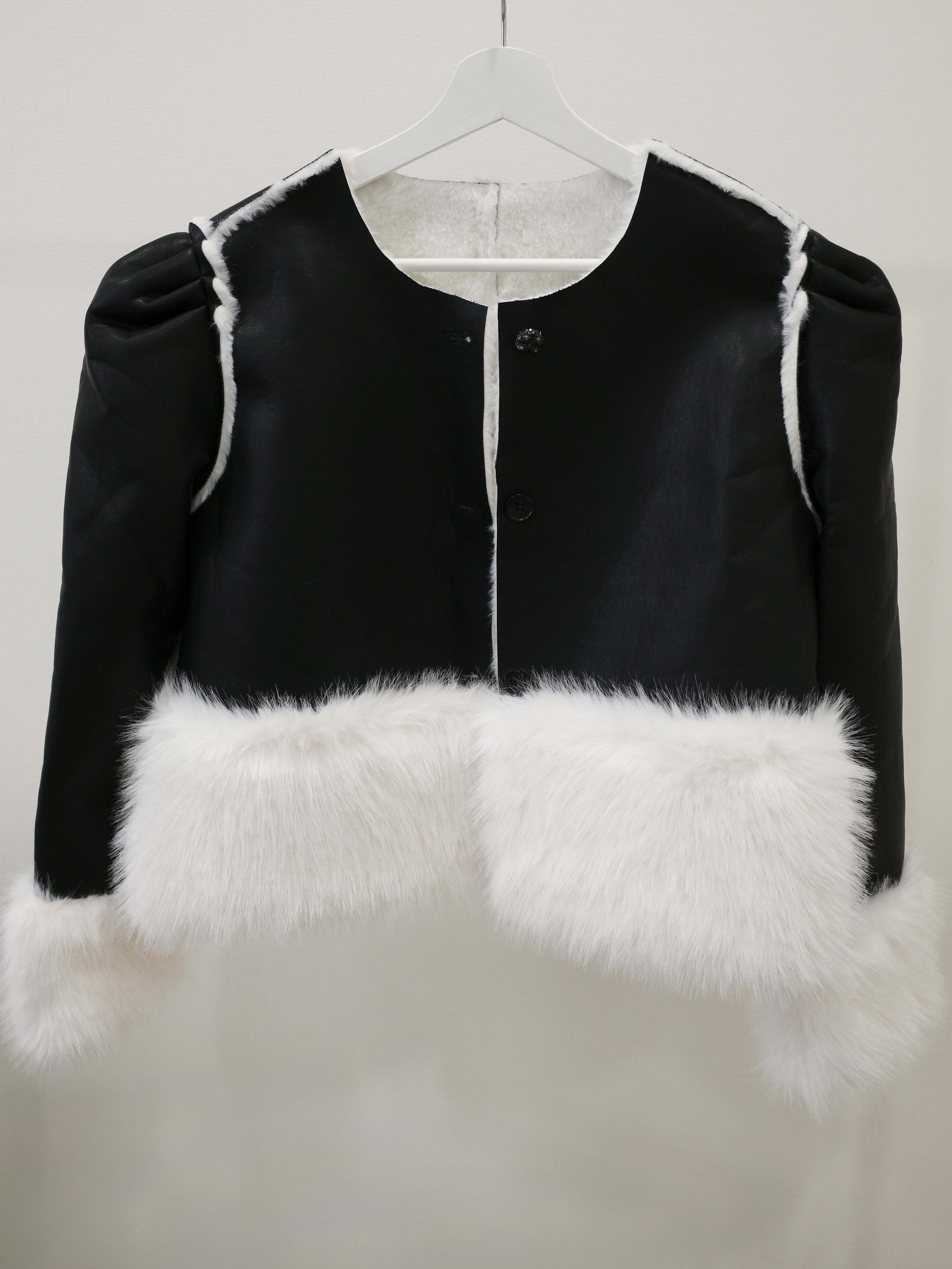 リアルファー顔負けの手触りの良いエコファーがあしらわれたムートン調ジャケット。