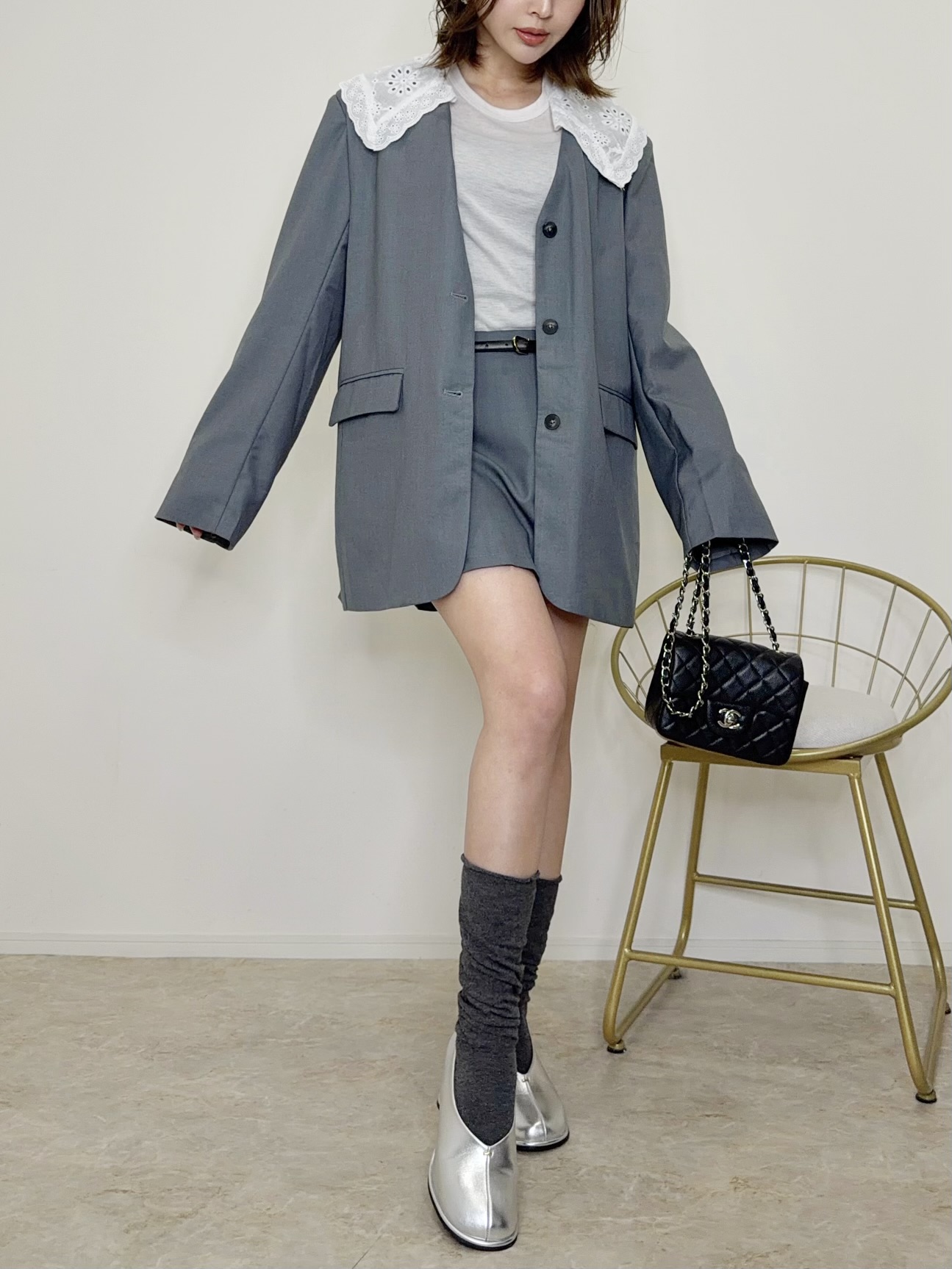 セットアップとして着用するのはもちろん、ジャケットとスコートは単体でも着用出来て着回し力も抜群。