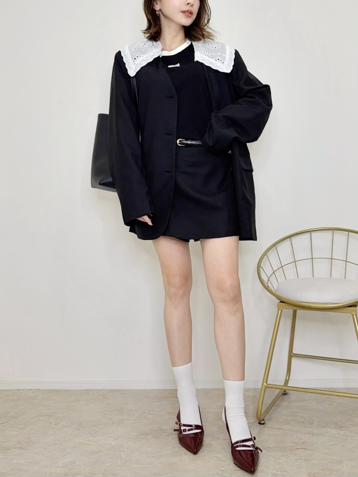 大人可愛いフリルの襟がポイントのジャケットセットアップ♡シアータイツやソックスと合わせて素敵な春コーデが完成♡セットになったボトムスはスコートになっていて安心◎ウエストはゴムで楽々です。ゆとりのあるシルエットで細見えします。セットアップとして着用するのはもちろん、ジャケットとスコートは単体でも着用出来て着回し力も抜群。襟は取外し可能なのでシンプルなジャケットとしても着用可能◎何通りものスタイルを楽しめる欲張りさんにオススメの一着です。ブラックとグレーの2カラー展開です。STAFF:158cm【サイズ】(平置き採寸)ジャケット/着丈77cm 身幅56cm 肩幅46cm 袖丈63cm スコート/ウエスト36cm(後ろ部分はゴムで伸縮) スカート丈34cm【素材】ポリエステル65%,レーヨン35%■クロネコ代金後払いをご利用のお客様■商品到着後に請求書(払込用紙)が到着します。14日以内にお支払いをお願いします。全国の主要なコンビニで、請求書をレジに持っていくだけでお支払いが可能です。全国の郵便局でも同じ請求書でお支払いできます。※ご請求書が圧着ハガキタイプの場合、郵便局でのお支払いはできません。※弊社の銀行口座宛にお振込頂くものでは御座いません。ご注意下さい。