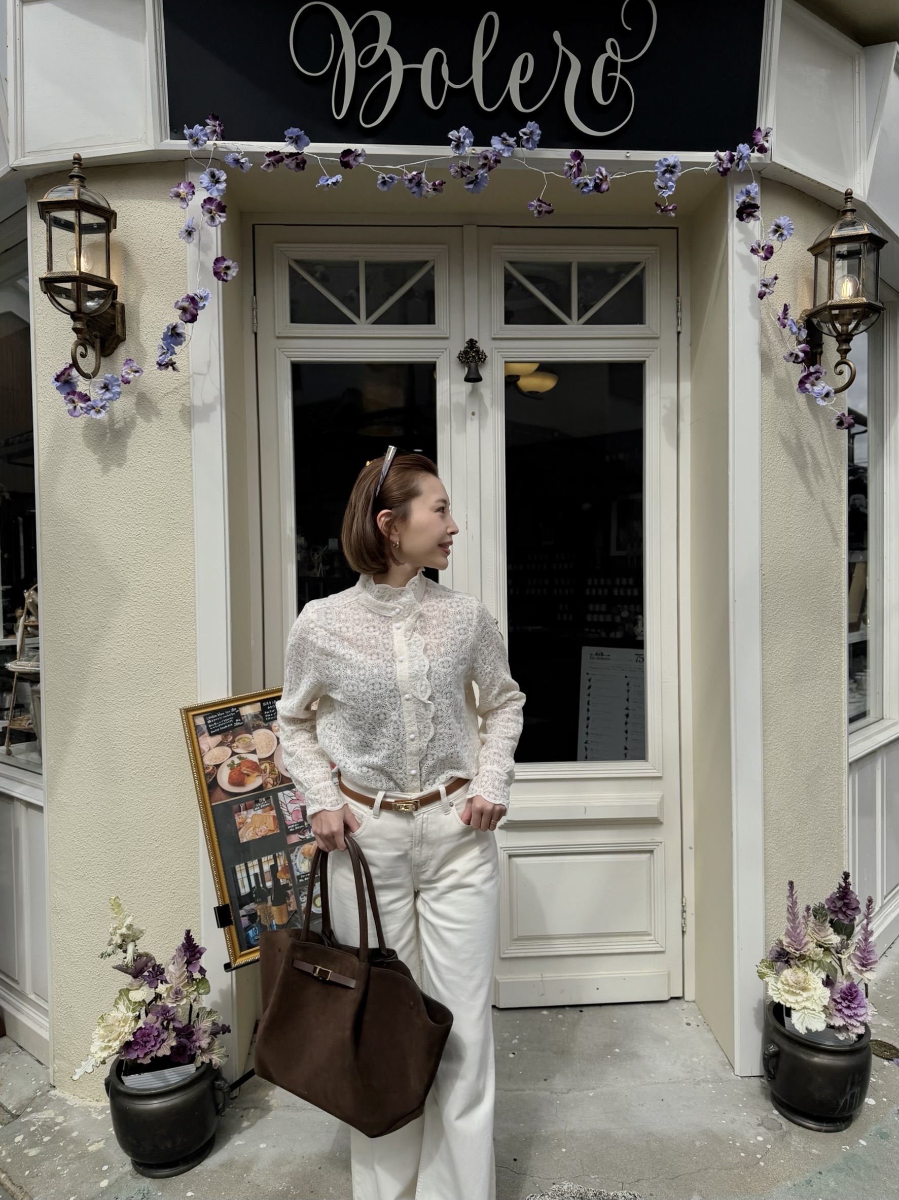 ほんのり肌が透けるシアー感が春らしさ全開♡お顔周りを華やかに演出するスタンドカラーがポイントです。