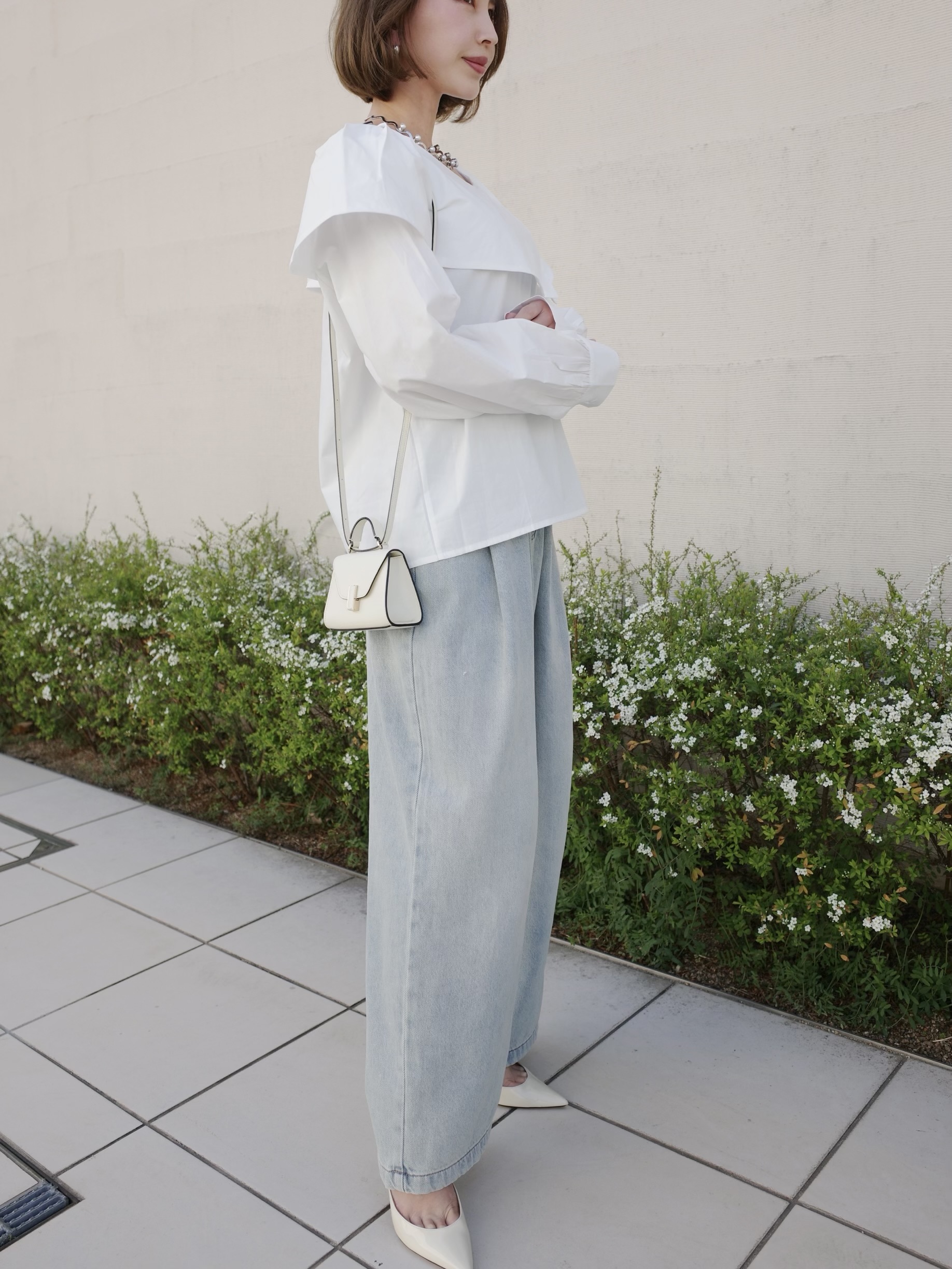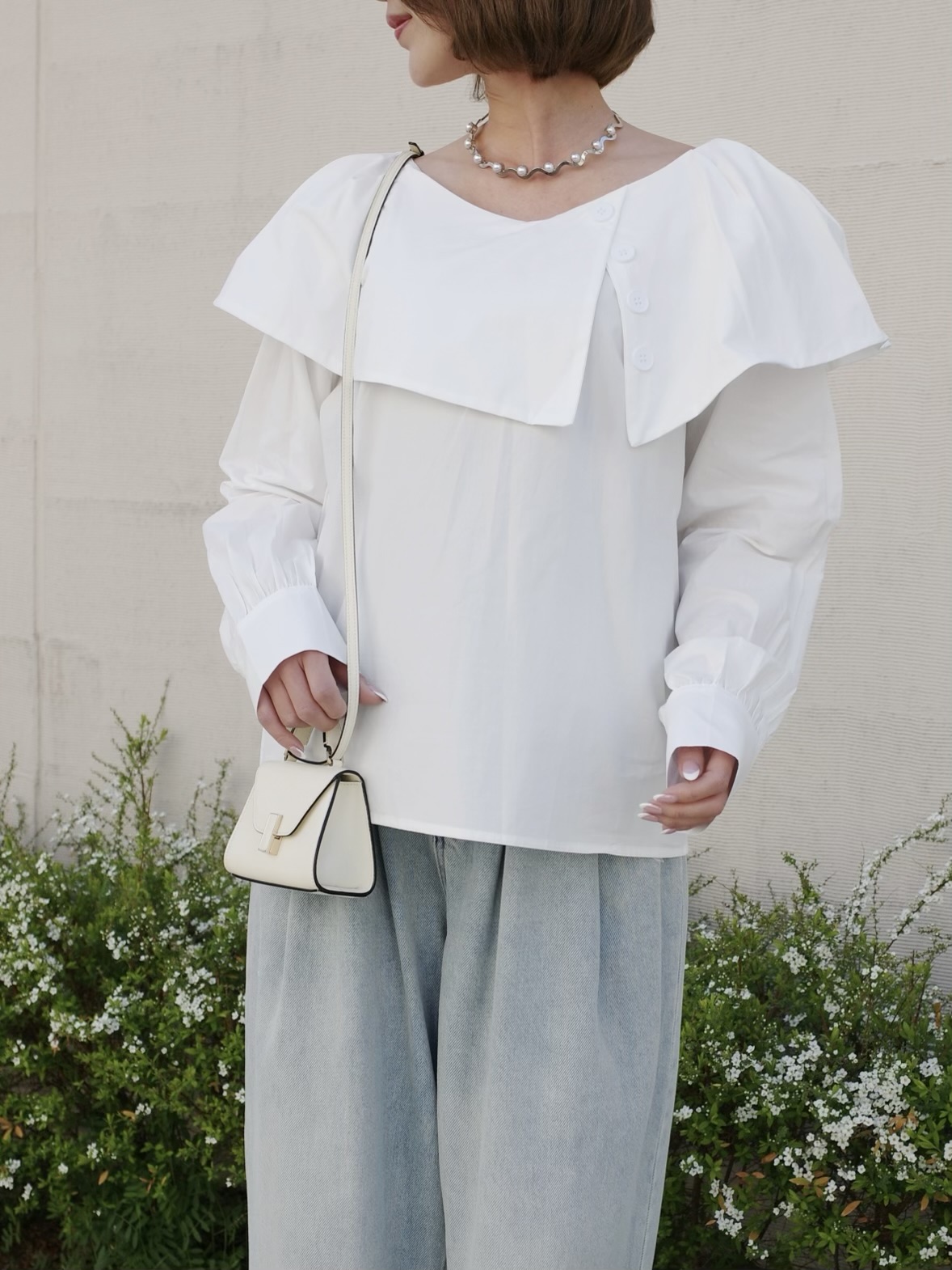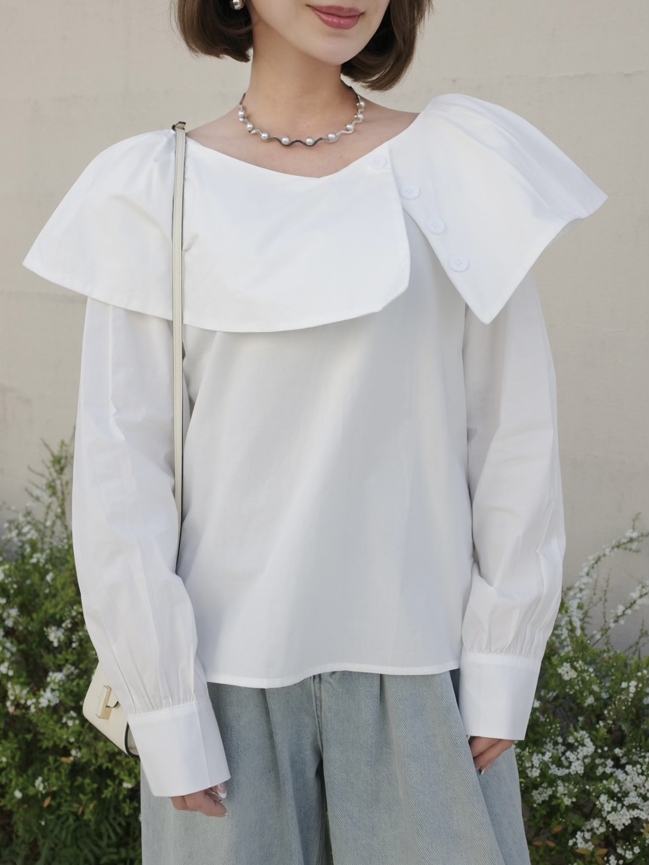 動く度軽やかに揺れる襟がポイント。