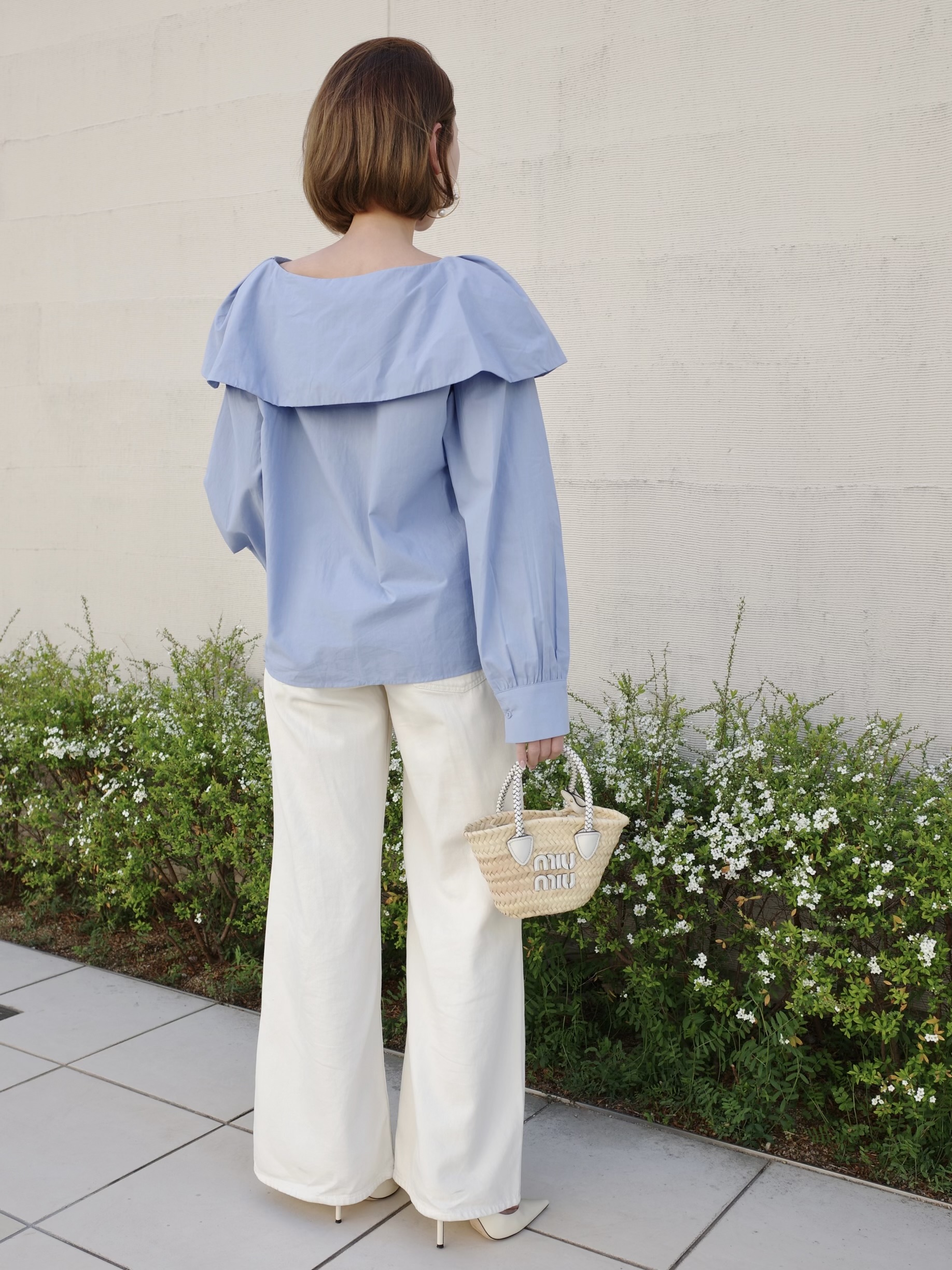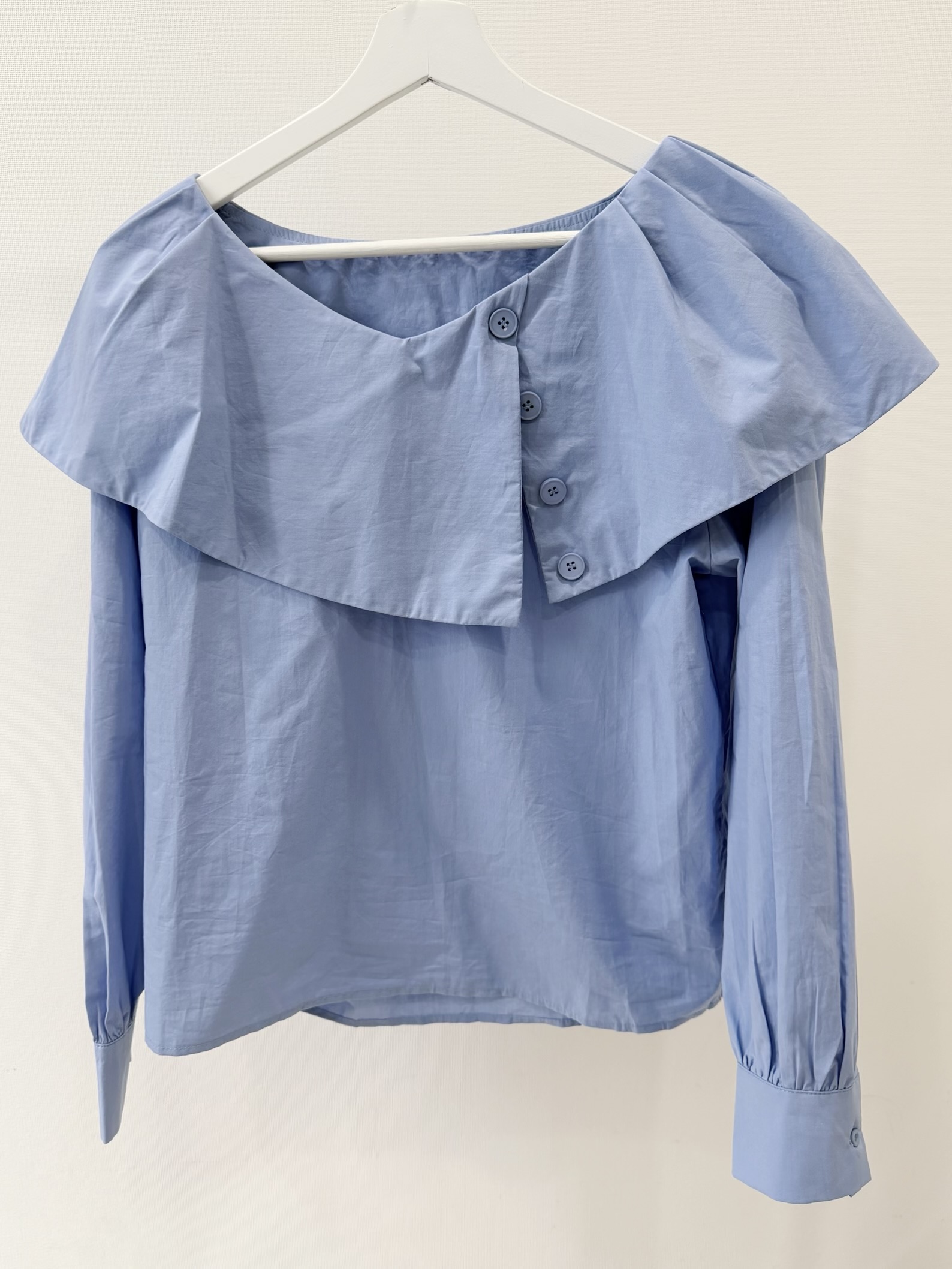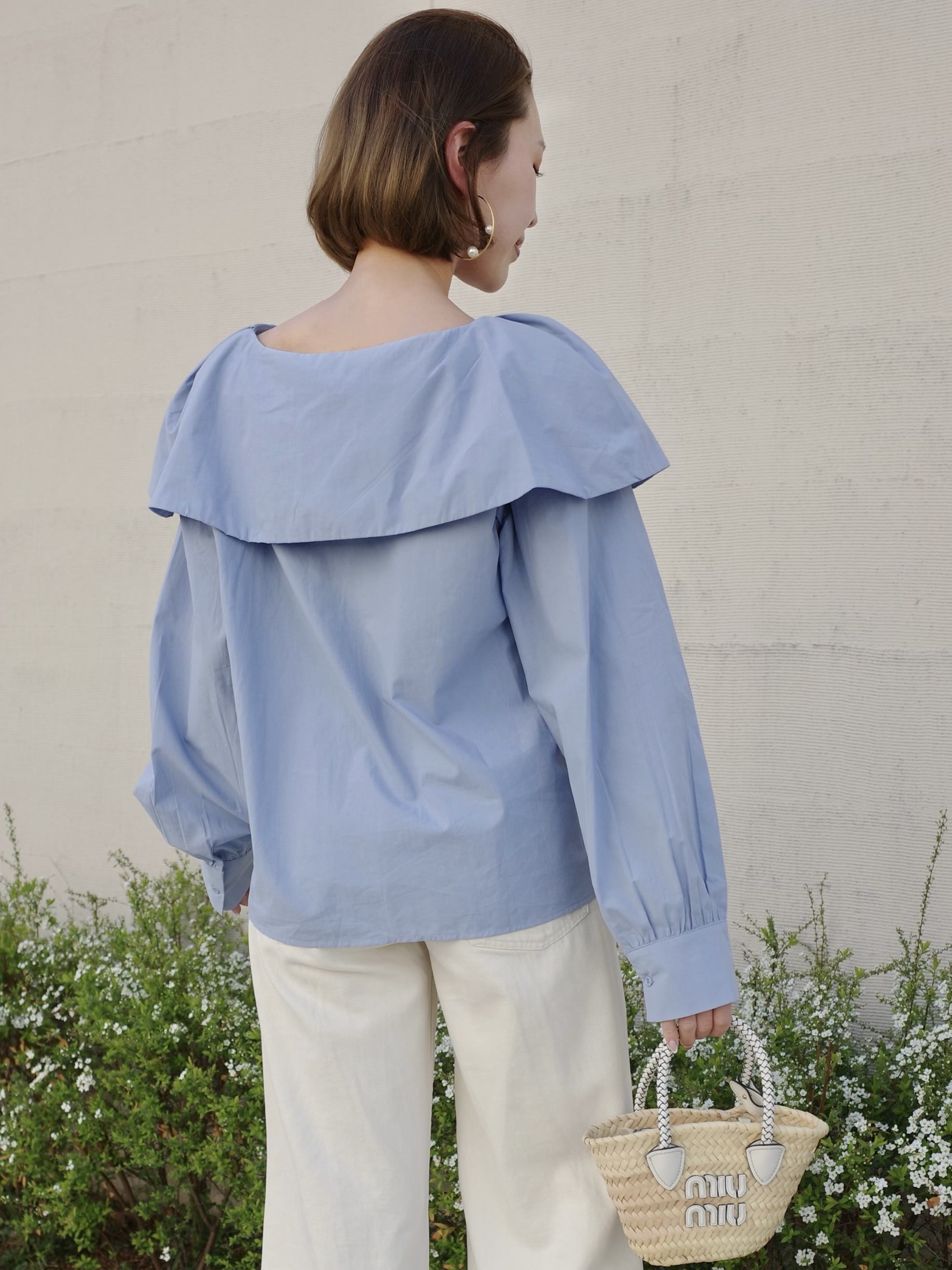 シンプルながらも1枚で着映えするブラウス。動く度軽やかに揺れる襟がポイント。スラックスやデニムなどボトムスを選ばないデザイン。程よい襟ぐりの開きでデコルテを美しく見せます。ふわっとした袖のデザインで気になる二の腕もさり気なくカバー。ホワイトと落ち着いた色味のサックスブルーの2カラー展開です。※こちらの商品を単体で1点のみご注文頂いた場合、ネコポス配送(385円)にて発送が可能です。ご希望の方はご注文時にメッセージ欄にネコポス希望とご記入をお願いします。STAFF:158cm【サイズ】(平置き採寸)着丈54cm(後ろ56cm) 身幅54cm 袖丈58cm【素材】コットン60%,レーヨン40%■クロネコ代金後払いをご利用のお客様■商品到着後に請求書(払込用紙)が到着します。14日以内にお支払いをお願いします。全国の主要なコンビニで、請求書をレジに持っていくだけでお支払いが可能です。全国の郵便局でも同じ請求書でお支払いできます。※ご請求書が圧着ハガキタイプの場合、郵便局でのお支払いはできません。※弊社の銀行口座宛にお振込頂くものでは御座いません。ご注意下さい。