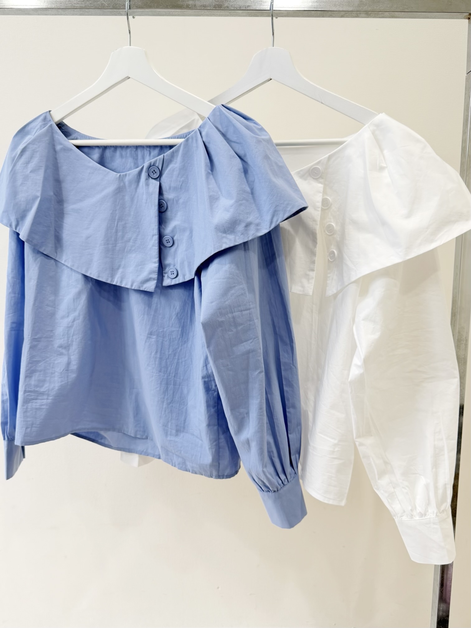 ホワイトと落ち着いた色味のサックスブルーの2カラー展開です。