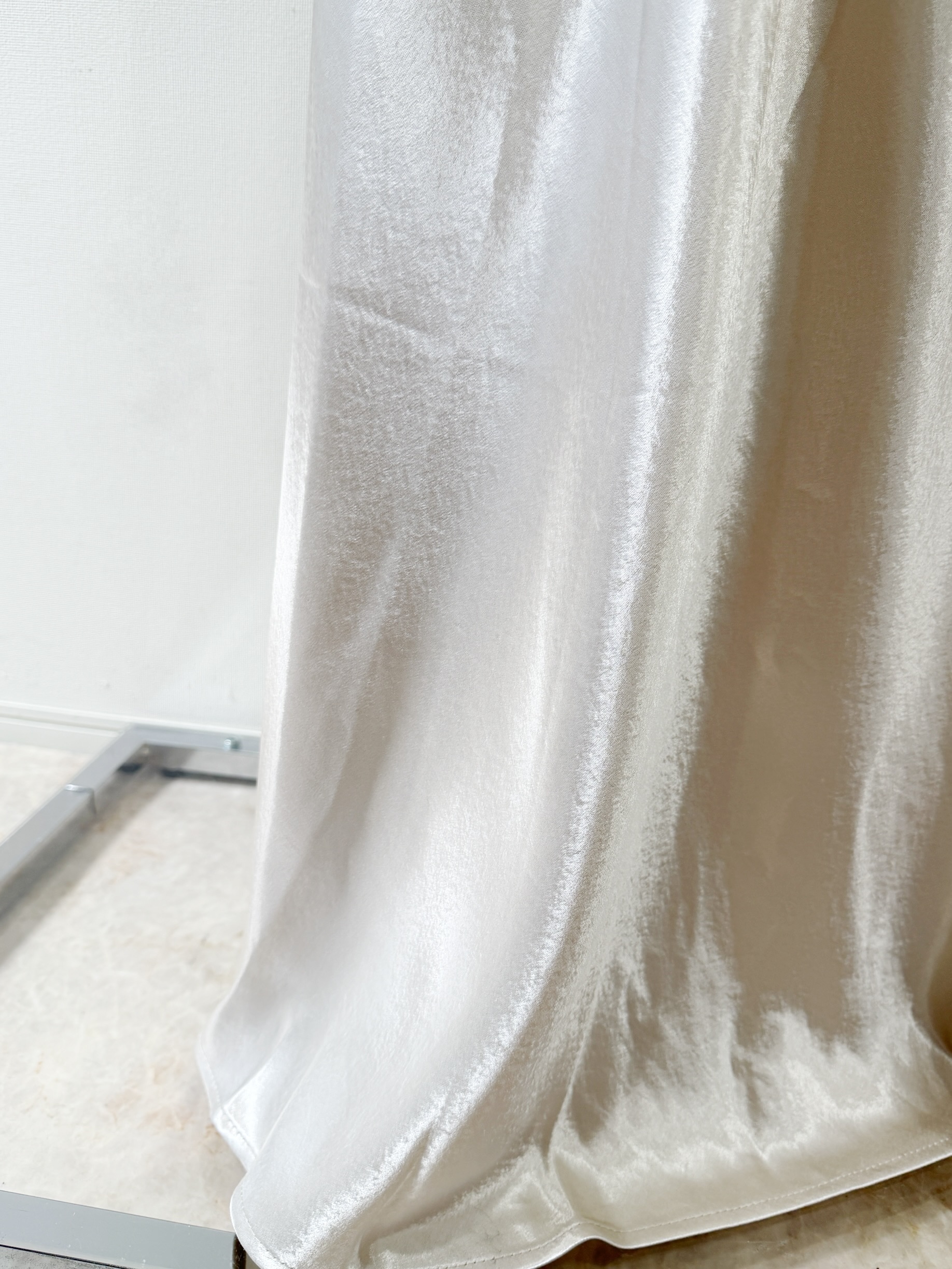 動くたび揺れる光沢のあるドレープが春夏の太陽の下で映えます♡