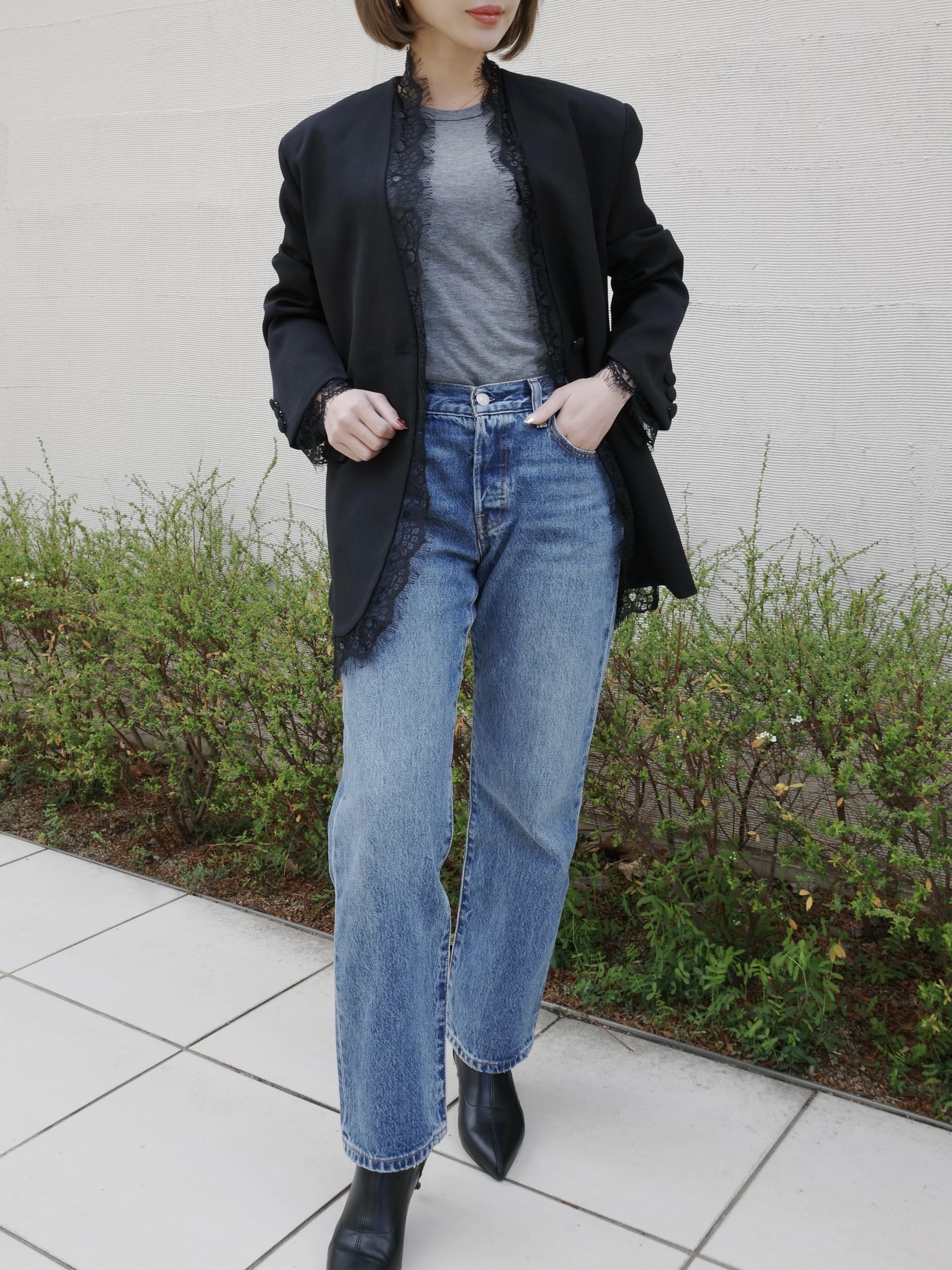 【ご好評につき再入荷♡】レース使いがフェミニンな雰囲気を演出するきれい目ジャケット。