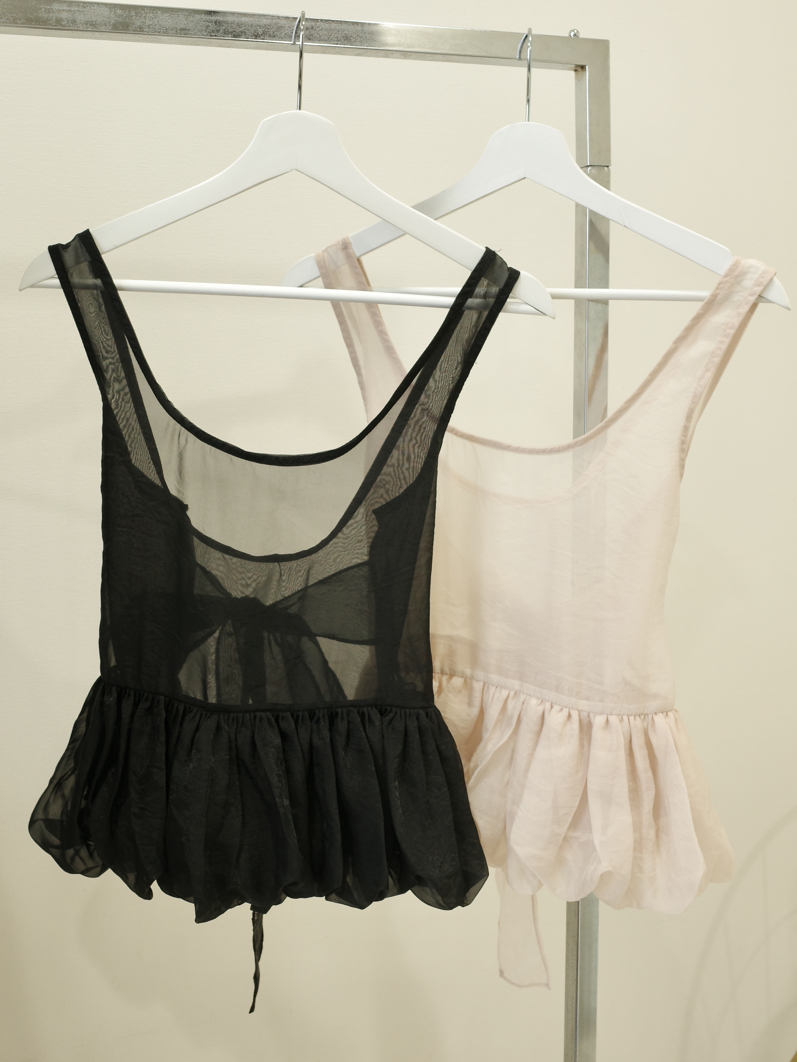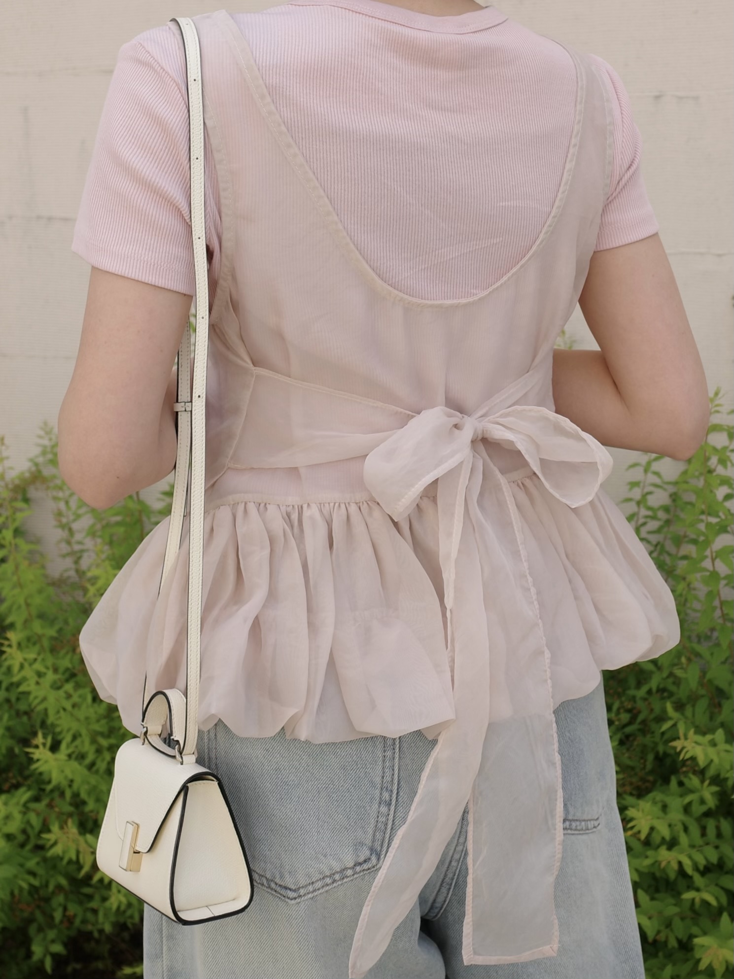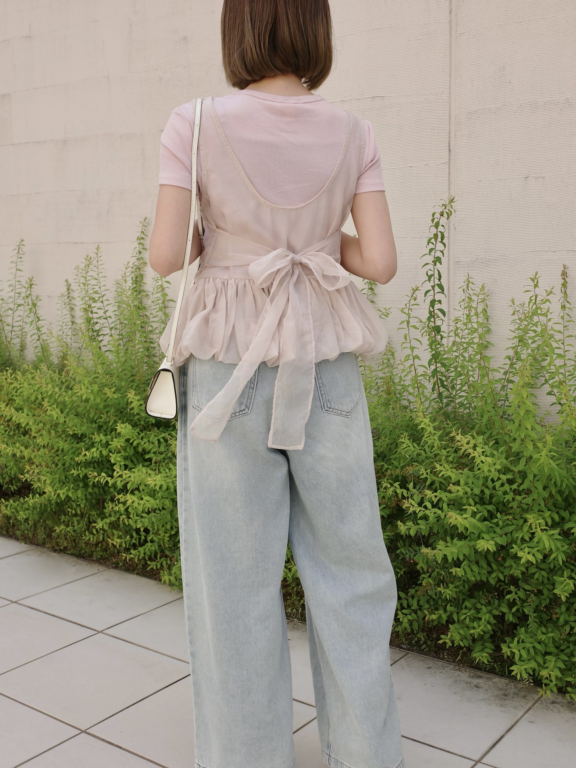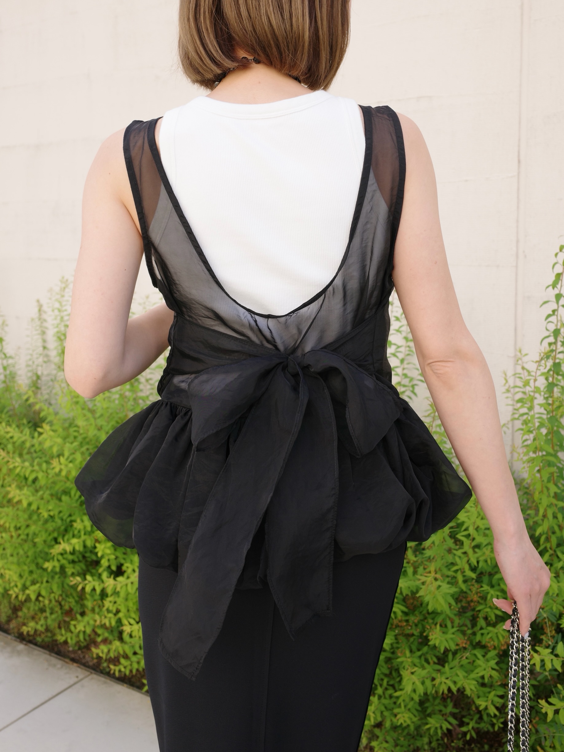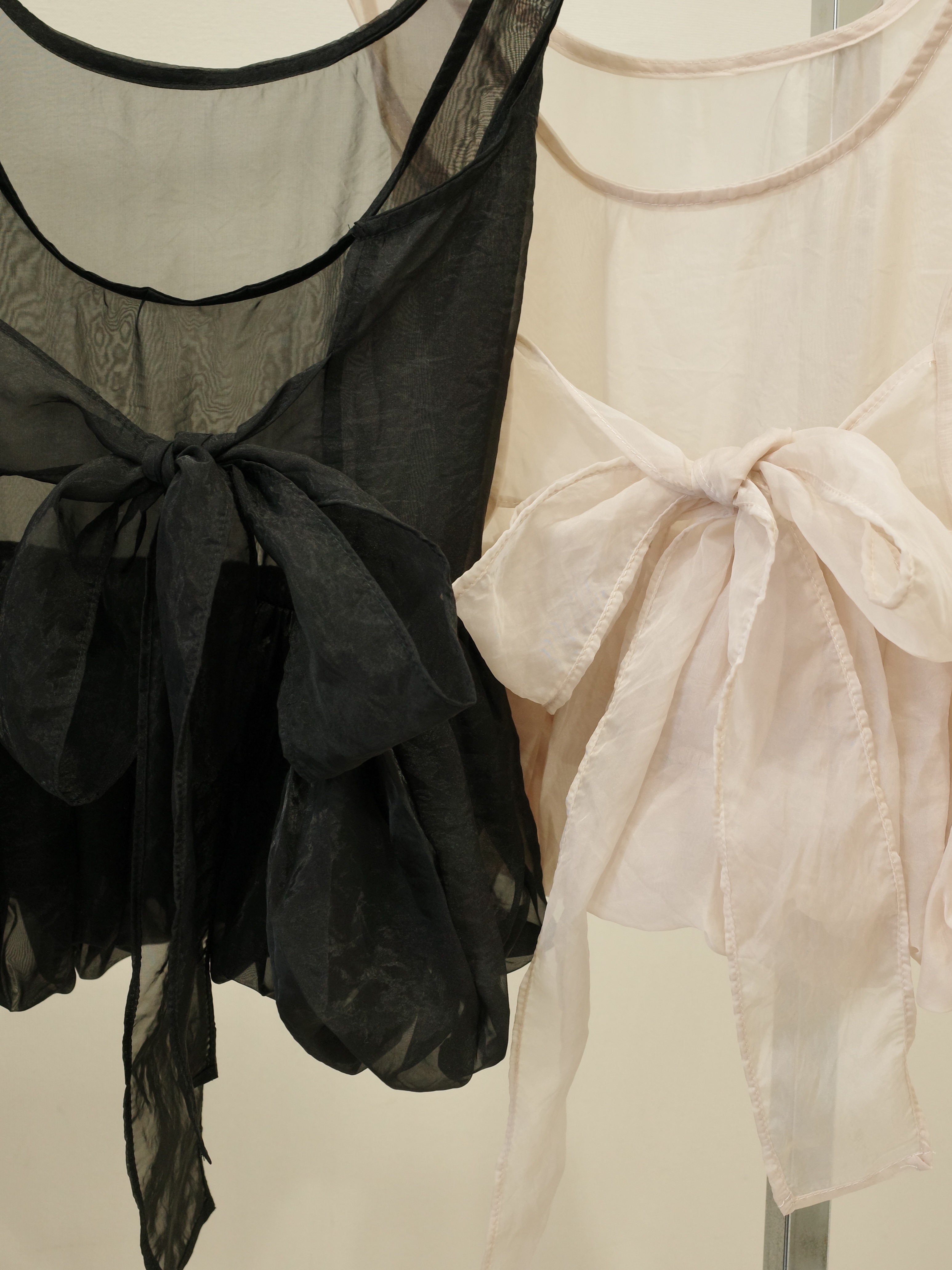 着映え間違いなしのシアー素材が涼しげなバックリボントップス。