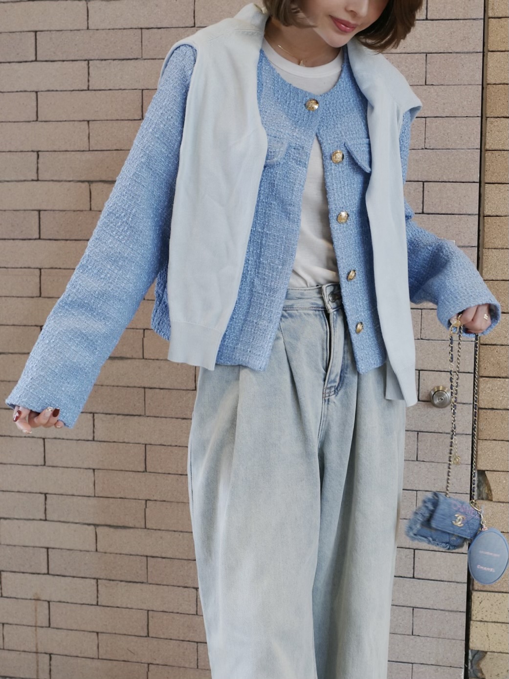 Color tweed jacket(BLU/GRN)